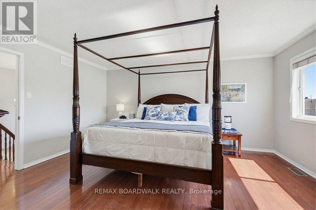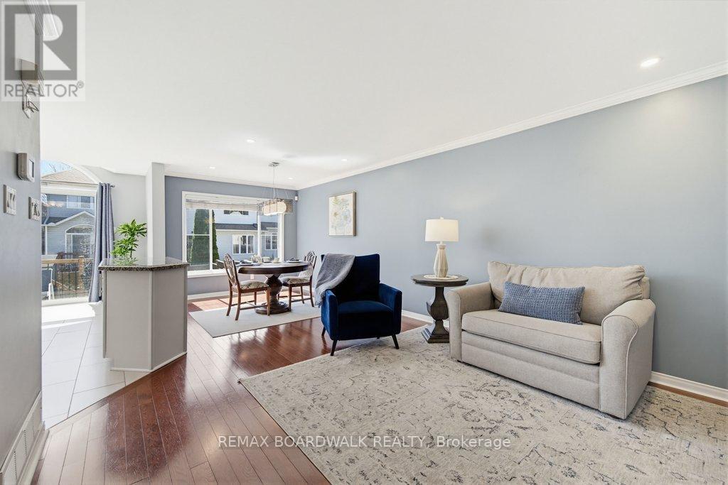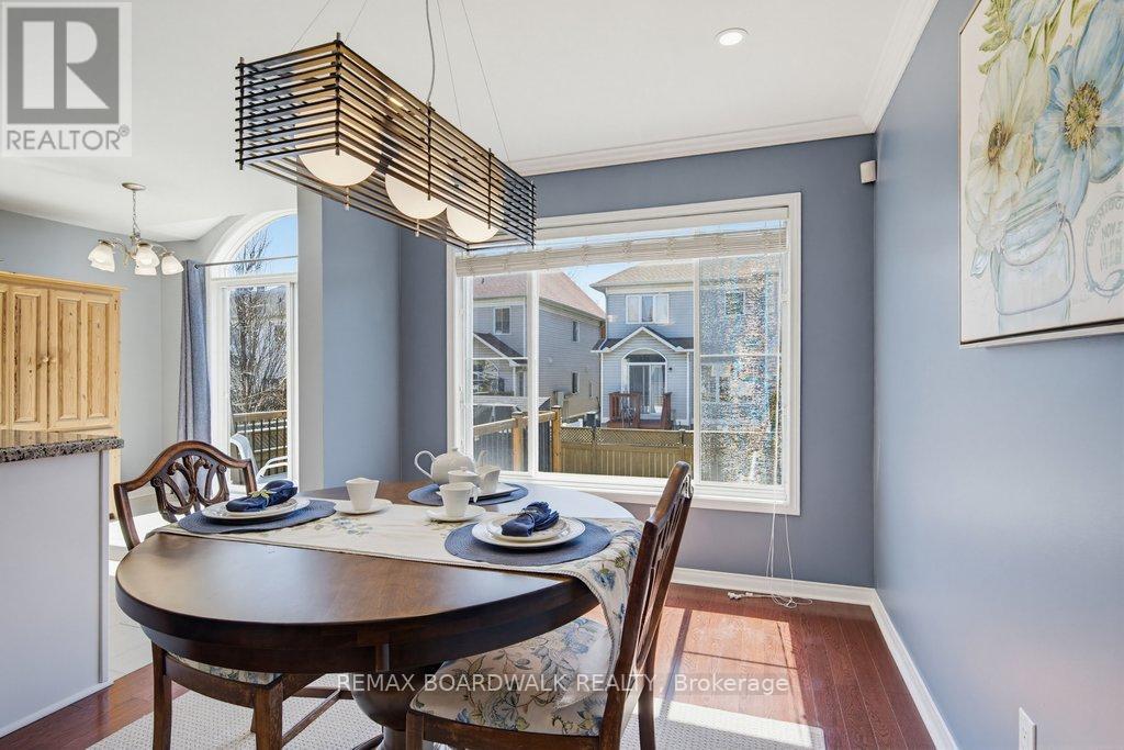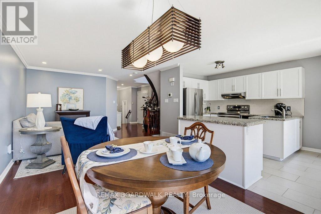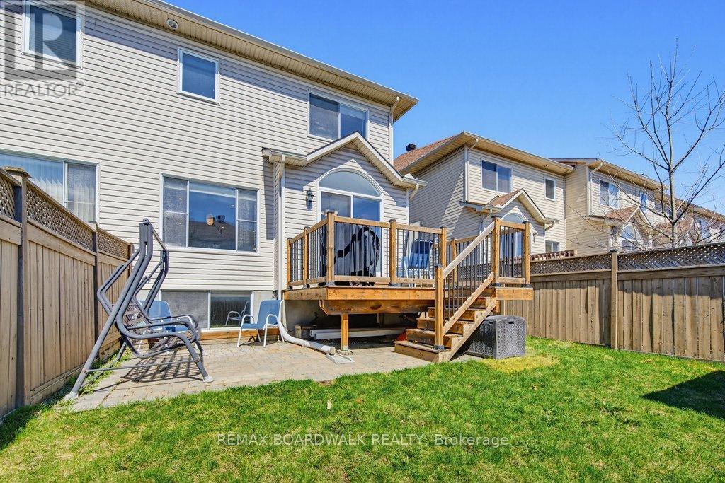 Welcome to 10 Valemont Street - Situated on a quiet street, this coveted end unit townhome in the heart of Barrhaven East, one of Ottawa's most connected and family-friendly communities is a top choice. Built by Minto in 2002, this thoughtfully upgraded home offers the space, style, and lifestyle you've been looking for in Barrhaven. Step inside to a bright, open-concept main floor designed for real life. The Hardwood floors, extensive crown mouldings & pot lights add warmth and polish throughout and the curved staircase with extra windows becomes a main floor focal point. The white kitchen shines with a clean look, granite counters, stainless steel appliances (2020), and the standalone kitchen island, perfect for preparing meals and serving guests. It flows effortlessly to the dining room, living room &eat-in area - perfect for weeknight dinners or weekend entertaining. Easy and flexible open concept living. Upstairs, the spacious primary bedroom easily accommodates a king-sized set, and is complete with a walk-in closet & a luxurious ensuite. Two secondary bedrooms each feature double closets - ideal for kids, a home office, or guests. The fully finished basement delivers a generous rec room with gas fireplace - your go-to space for movie nights & family time - plus is a dedicated finished laundry room with newer washer & dryer. Thats just over 1,800 sq ft of finished living space. The back yard enjoys a southeast-facing fenced backyard - the ideal spot for morning coffee in the sun whether on the deck, or large interlock patio. Steps to top-rated schools (Earl of March catchment area), quick drive to Barrhaven Marketplace, Costco and all the Strandherd Drive amenities, Walter Baker Sports Centre & Barrhaven Town Centre. OC Transpo routes & the Barrhaven Bus Rapid Transit corridor are minutes away, with Highway 416 providing easy access city-wide. The BEST part? Just a few steps away from the Chapman Mills Conservation Area and all the paths and trails. (id:44758)