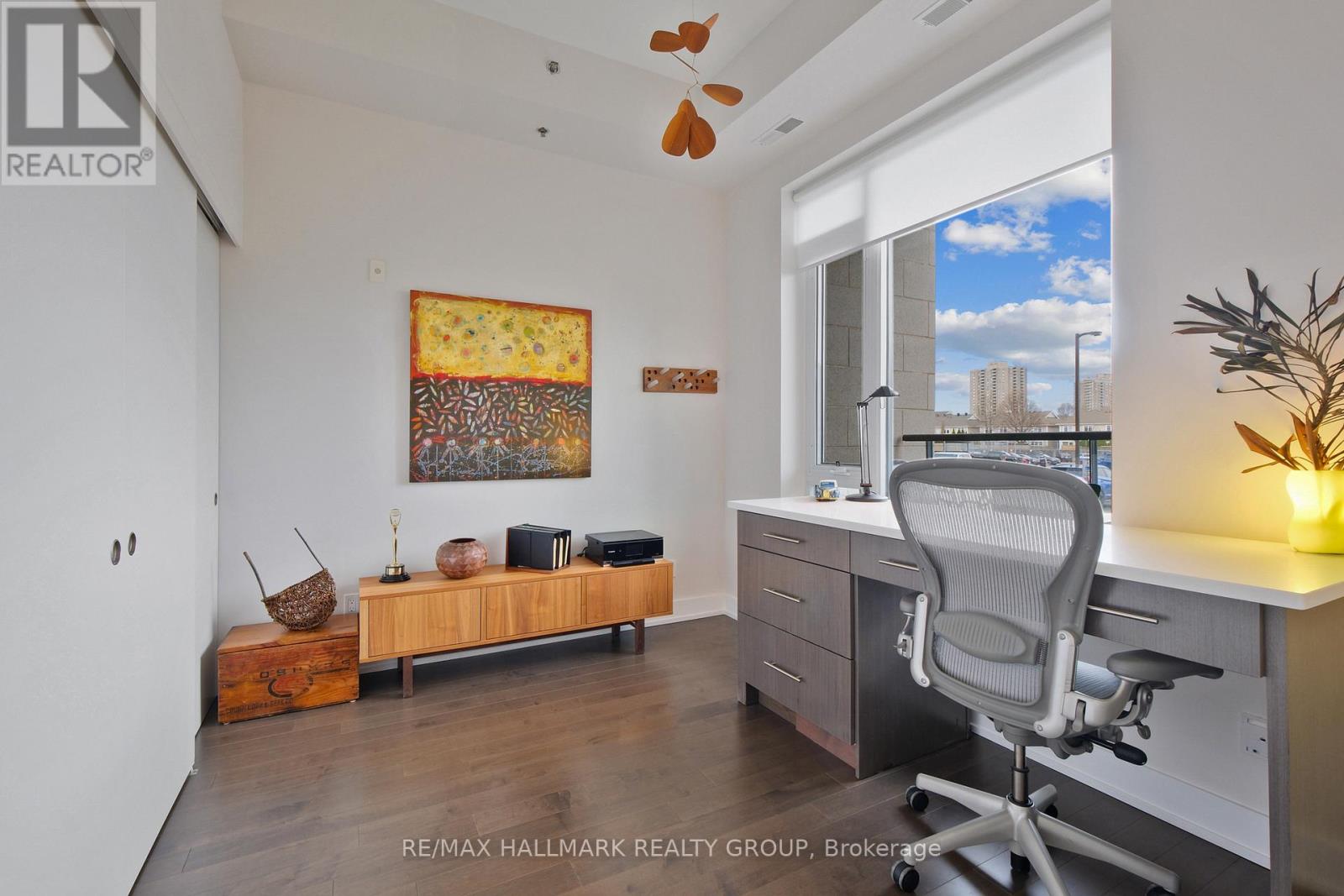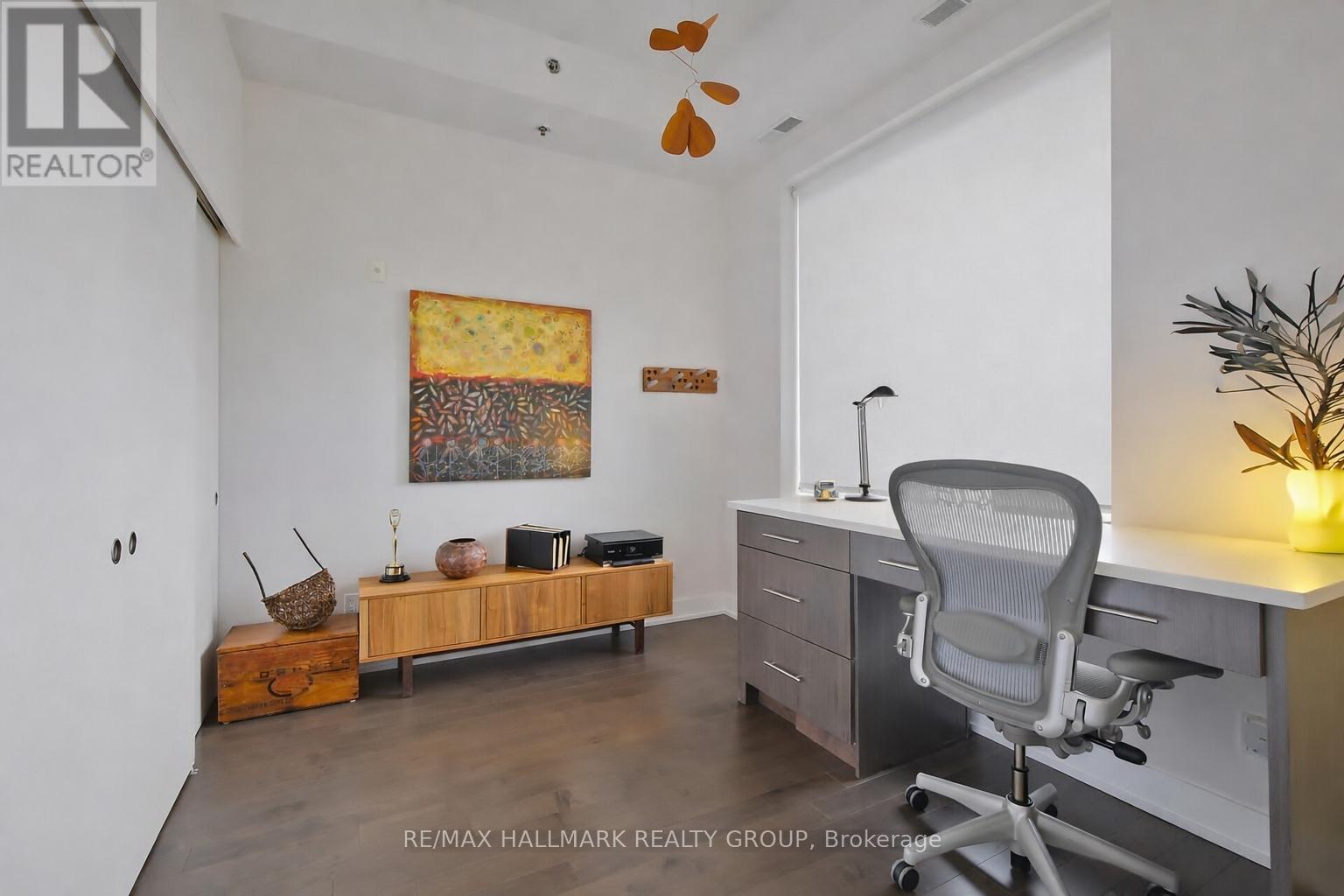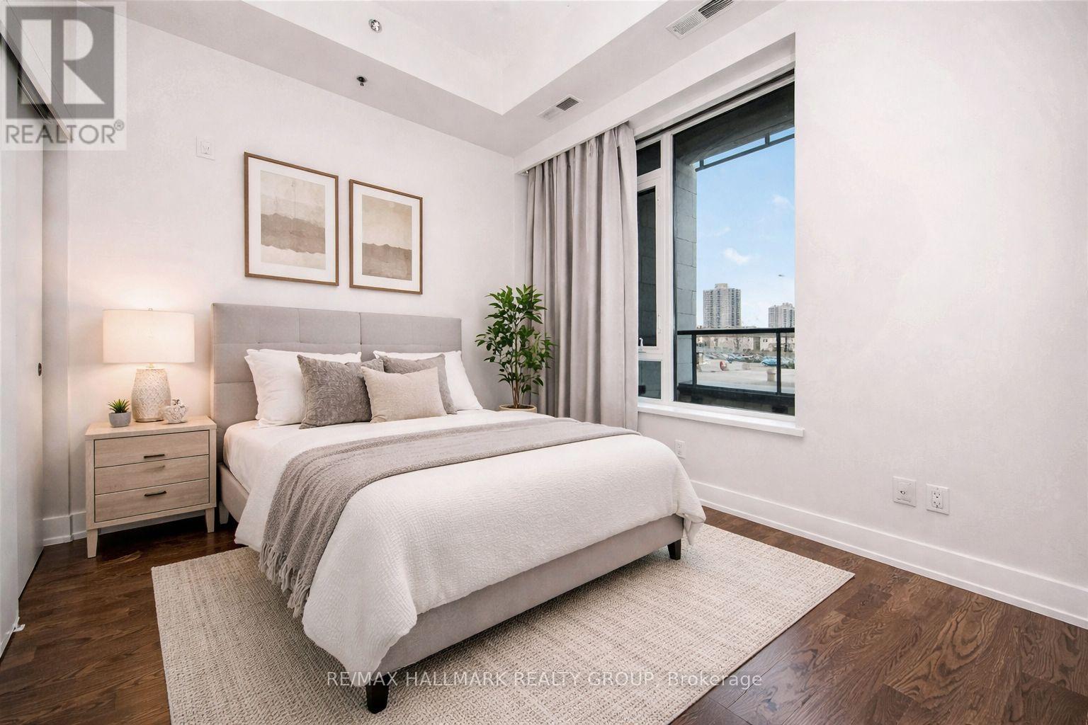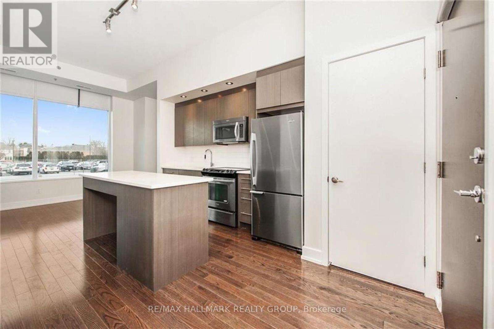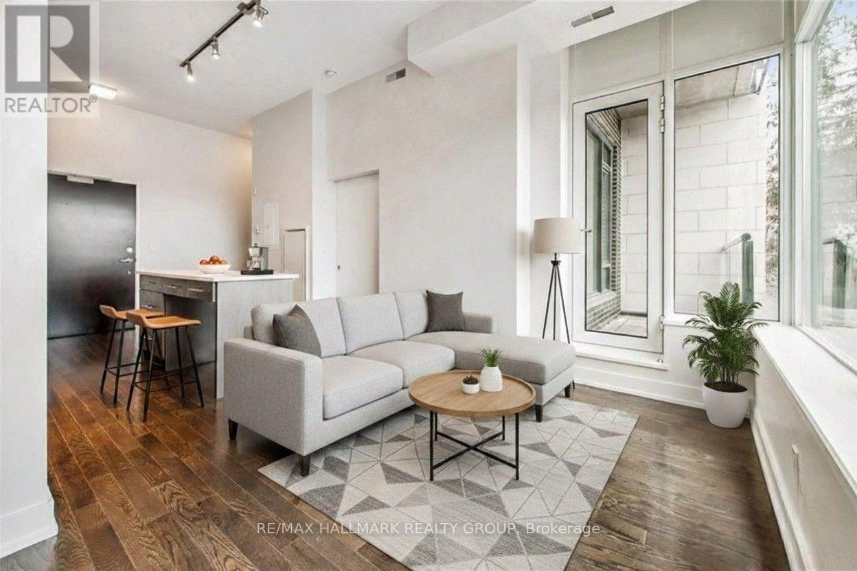 Welcome to Ottawa's prime Westboro location, where modern elegance meets effortless urban living. This next-to-new 1-bedroom suite is presented in true move-in condition and showcases brand-new contemporary flooring throughout, creating a seamless and sophisticated aesthetic. Designed with today's professional lifestyle in mind, the thoughtfully planned layout features a generously sized bedroom and a dedicated alcove within the living area-ideal for a refined home office. The open-concept design highlights a stylish kitchen complete with stainless steel appliances, quartz countertops, and dramatic 11-foot ceilings that enhance the sense of space. Oversized windows flood the interior with natural light, while in-suite laundry adds everyday practicality. Positioned on the main floor yet elevated above street level for privacy and security, this residence offers convenient access without reliance on an elevator. Residents enjoy an exceptional collection of resort-inspired amenities, including a rooftop terrace with sweeping views of the Gatineau Hills, outdoor dining and lounge spaces, a private courtyard, home theatre, and an elegant party room. Wellness offerings include a fully equipped fitness center, yoga studio, sauna, and steam room, along with thoughtful additions such as a pet grooming station and ski tuning area. Perfectly situated in the heart of Westboro, you can cycle to Westboro Beach, explore scenic pathways along the Ottawa River, or enjoy dinner at The Grand Pizzeria and Bar overlooking the water. Complete with underground parking, a storage locker, and the rare advantage of no rear neighbours, this move-in-ready condo represents one of the best values for newer construction in the city. With very few new condominium projects currently underway, this is not only an exceptional place to live but also a compelling long-term investment opportunity (id:44758)