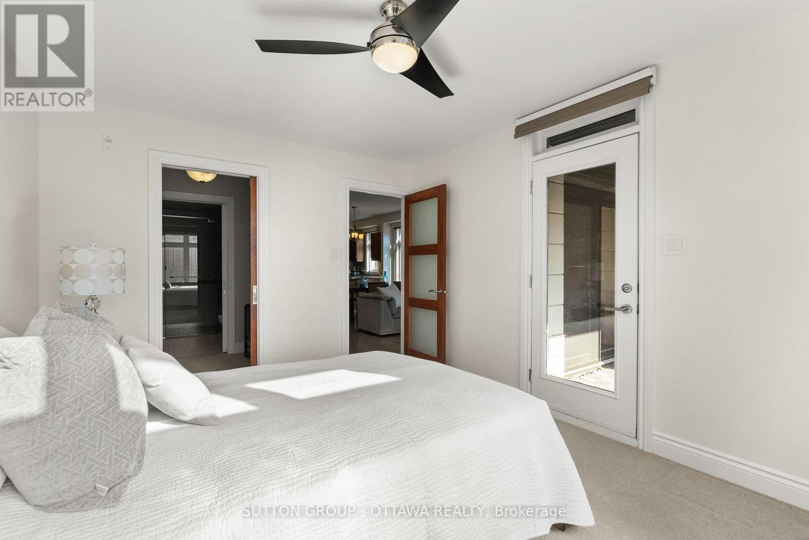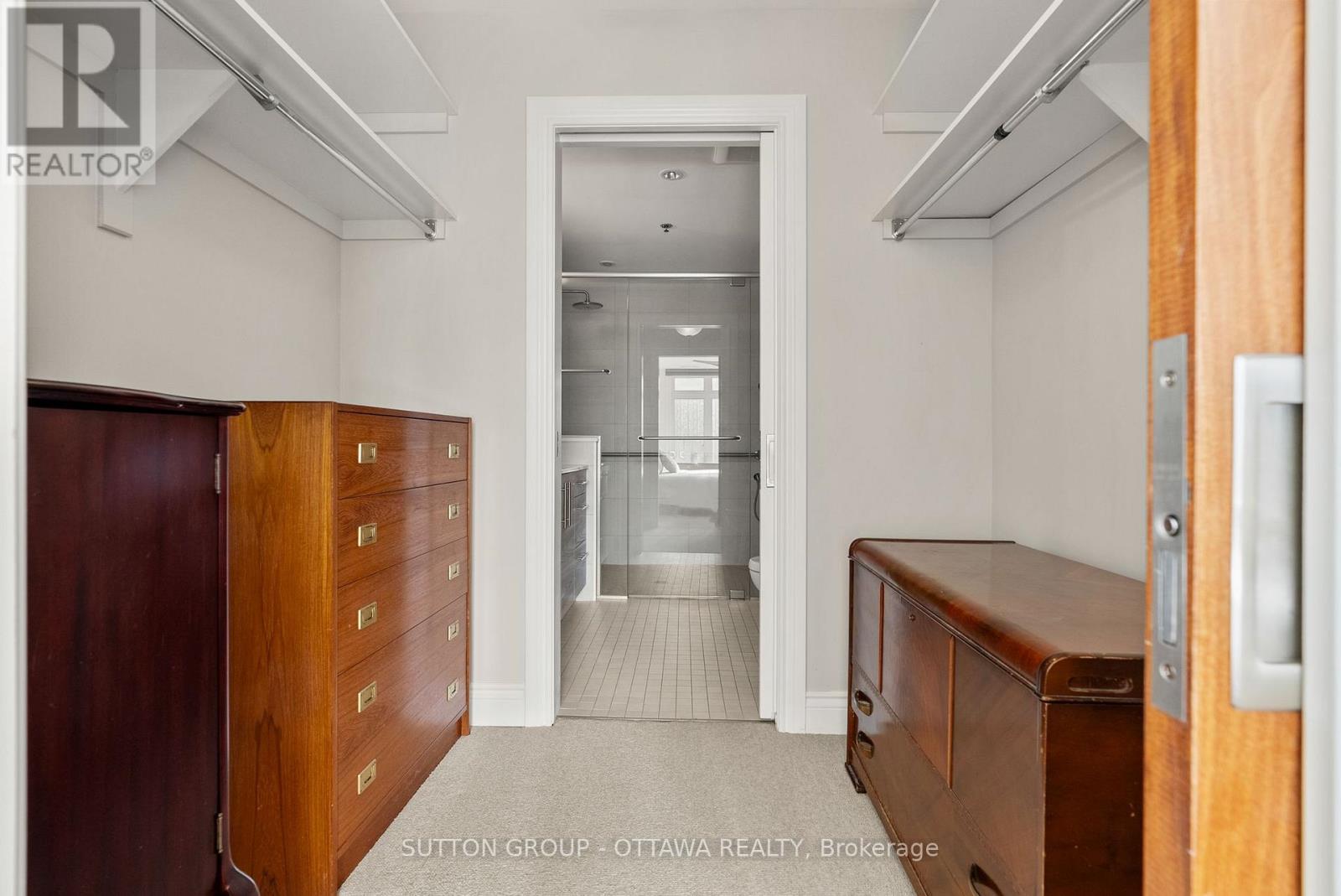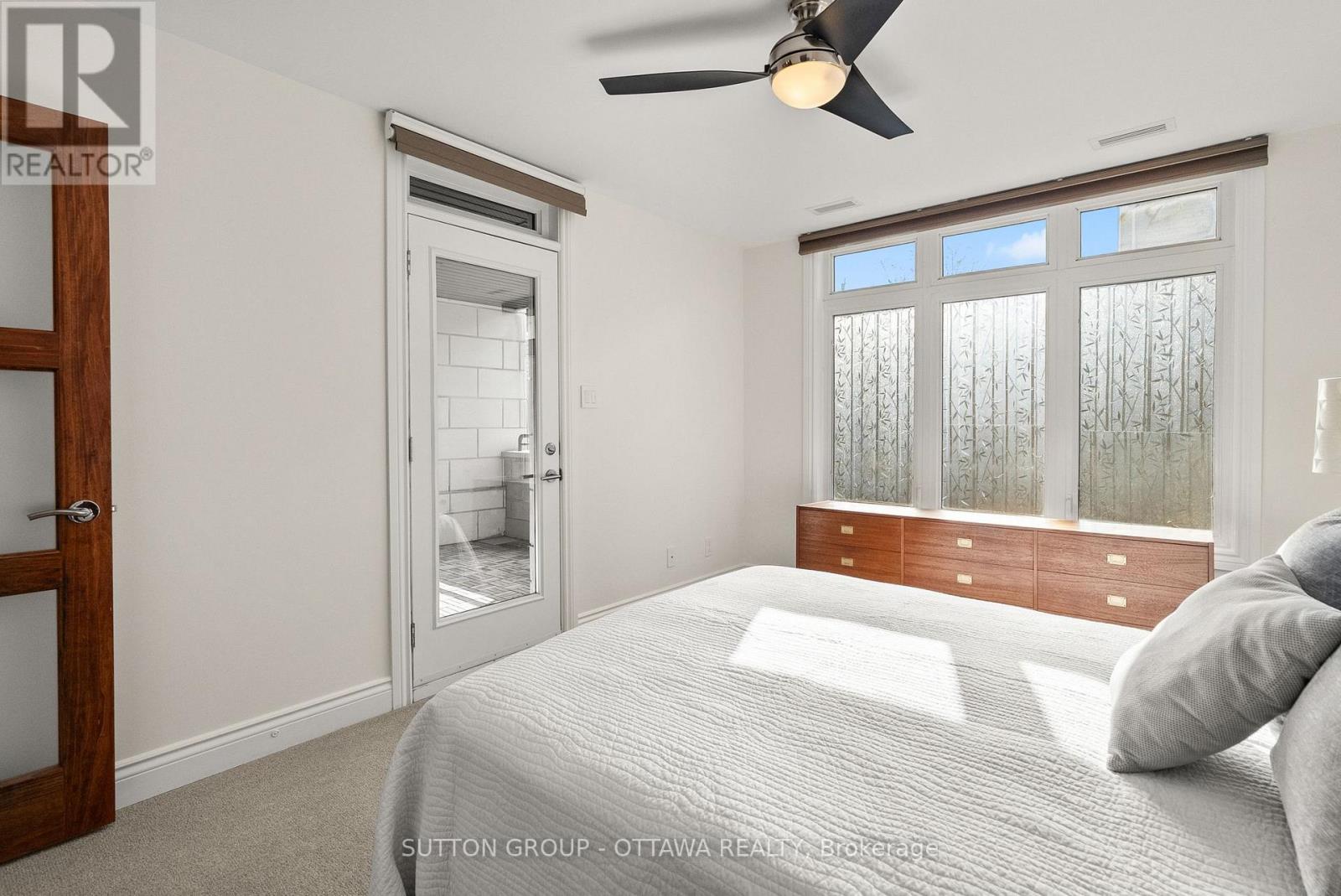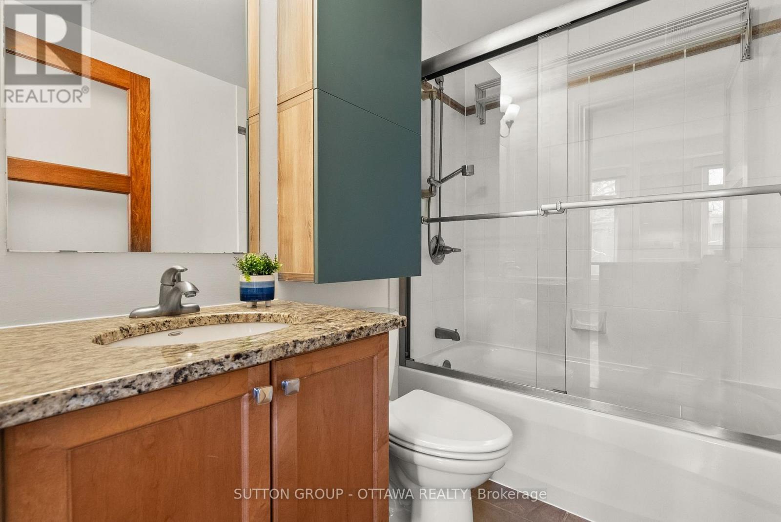 TASTEFULLY UPDATED CONDO IN THE HEART OF WESTBORO! This 2 bedroom+Den, 2 full bathroom main level unit is at the end of the first floor making it incredibly quiet and private, yet accessible for those with mobility needs! This unit is fitted with custom Lutron automated (programmable/remote controlled) blinds and lighting (2020) which is an added bonus for accessibility and overall convenience. The kitchen overlooking the living/dining area features granite countertops, stainless steel appliances, and a large peninsula offering additional seating. The spacious, open concept living/dining area features plenty of room for full size furniture making dinner parties a delight! The primary bedroom with a huge, sunny window, has a walk-in closet which leads the way to the fully renovated ensuite bathroom (2019). This ensuite was custom designed with accessibility in mind while maintaining a luxe feel (glass enclosed shower with no curb, comfort height toilet, etc.). The second bedroom is a great size and has access to the second full bath (with shower/tub combo) off the main space. Enjoy your morning coffee on the private, elevated balcony with entry from either the primary bedroom or living space. The bonus den is perfect as a reading nook or home office. To top it off, this unit features convenient in-suite laundry, plenty of closet space, as well as a designated storage locker and underground parking spot. Nothing is missing!! UPGRADES: Air Handler & On Demand Water Heater 2022, AC 2025, Professionally Painted 2026, Miele Dishwasher + Miele Stacking Washer & Dryer replaced within the last few years. Work out in the building's gym or host large gatherings in the fully equipped party room. In less than 10 minutes, walk to restaurants, coffee shops, grocery stores (Farm Boy!), recreation, future Westboro station & more! Book your showing today! (id:44758)