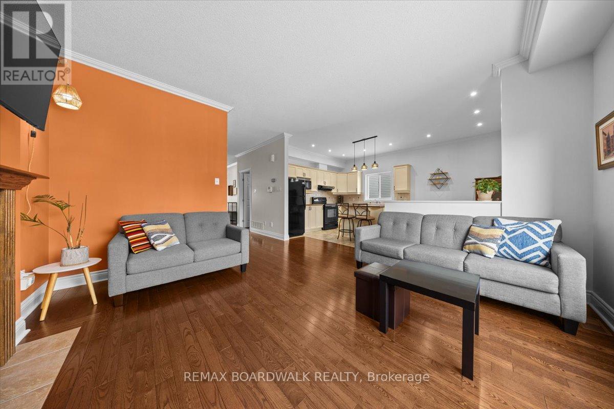 Set on a peaceful cul-de-sac in the heart of Morris Village, this beautifully composed four-bedroom residence blends timeless architectural detail w/warm, functional living across three thoughtfully finished levels. A stone-accented façade, covered veranda, & double-wide driveway create a welcoming streetscape, while twin garage doors w/window detail & a transom-topped entry introduce the refined character carried throughout the home. Inside, a ceramic tiled foyer opens to elegant principal rooms defined by nine-foot ceilings, crown moulding, hardwood flooring, & oversized transom windows that invite natural light to move gracefully through the space. The living room centres on a gas fireplace w/architectural mantle & flows seamlessly into a well-appointed eat-in kitchen designed for both gathering & everyday ease. A central island, decorative mouldings, tile backsplash, pot lighting, & patio door connection to a vaulted sunroom w/electric fireplace create a natural extension of indoor living toward the private rear garden. A rear hallway offers pantry storage, powder room, & inside access to the double garage. An open staircase w/oak railings leads to a light-filled second level featuring a serene primary retreat w/walk in closet & a refined four-piece ensuite. Three additional bedrooms, including one suited to a nursery or home office, share a well-finished main bath, while a dedicated laundry area adds convenience. The finished lower level provides a versatile recreation space w/wide plank flooring, generous windows, & integrated lighting, ideal for media, fitness, or play, along w/seasonal storage & a separate utility room w/soaker sink. Outdoors, a fenced east-facing yard & elevated barbecue deck create a quiet setting for morning light & relaxed evening gatherings. This home offers refined suburban living within a calm, family-oriented community. 24-hour irrevocable on all offers. (id:44758)