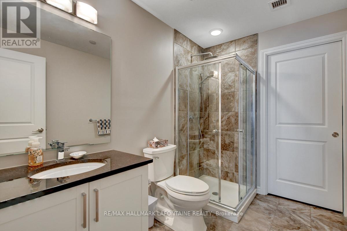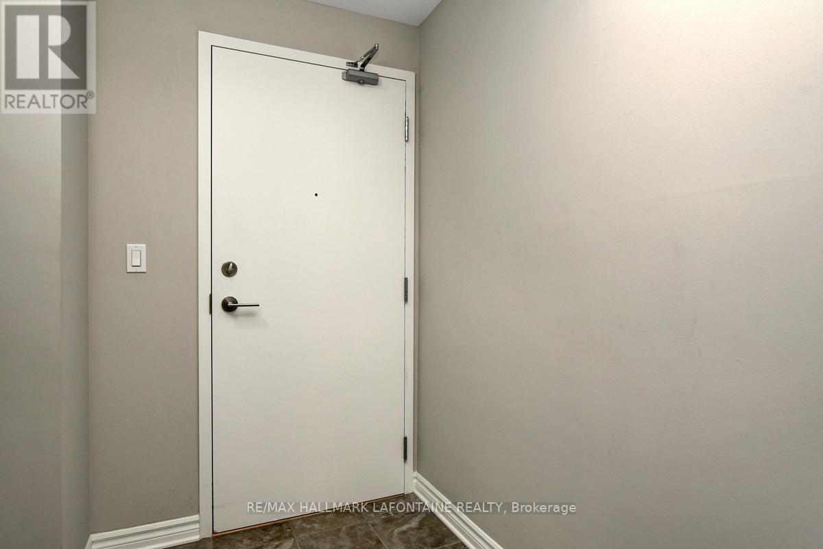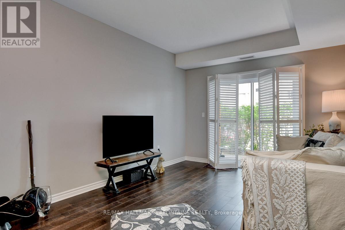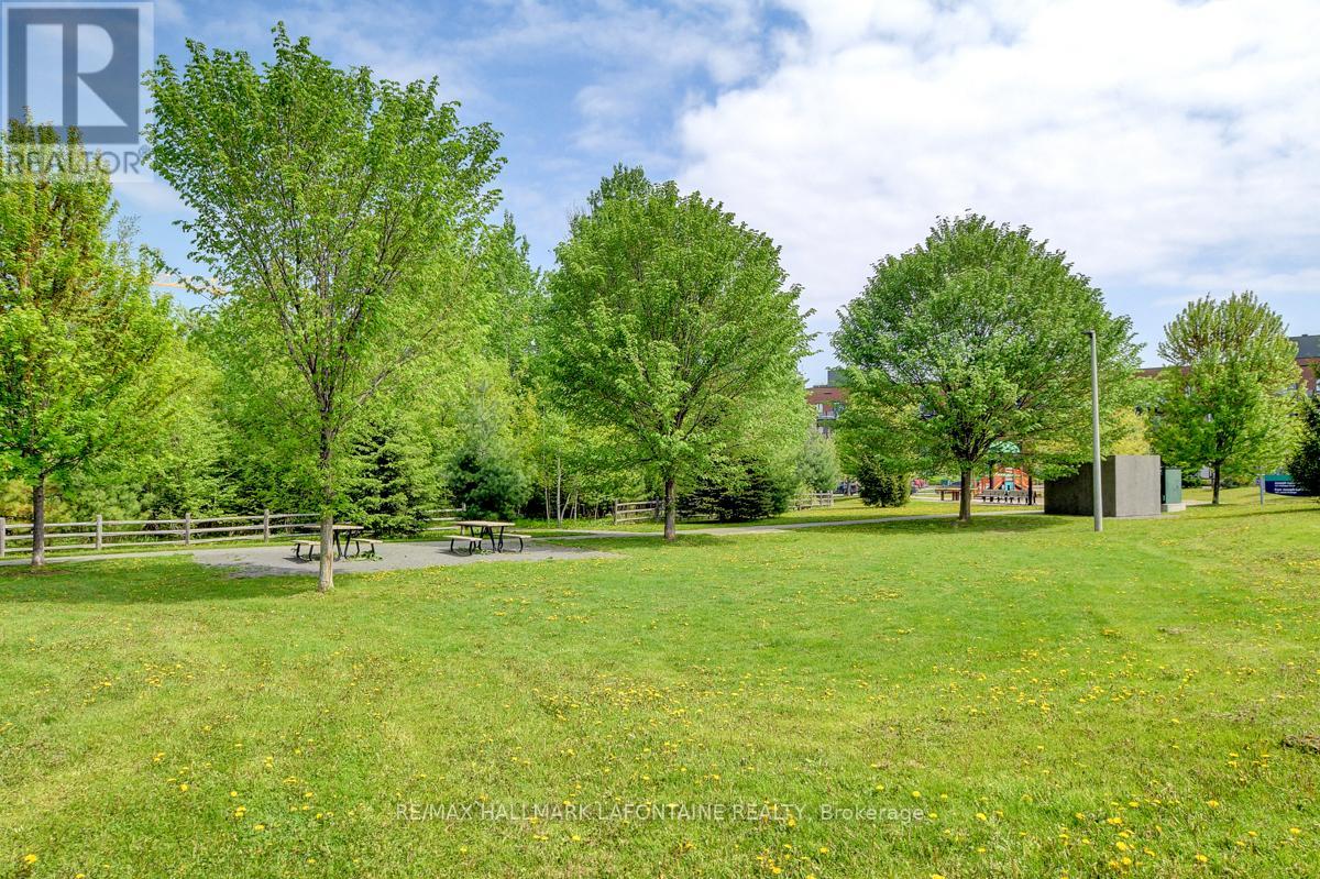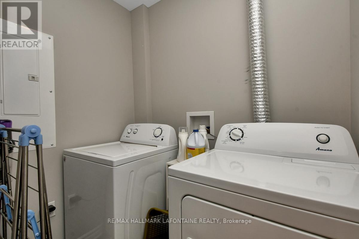 Welcome to Petrie's Landing! This spacious and thoughtfully designed 2-bedroom condo combines modern comfort with a fantastic location. Enjoy effortless access to transportation and the beautiful Ottawa River trails just steps from your door.The bright, open-concept living and dining area features engineered hardwood flooring, California shutters, and sliding doors that lead to your private terrace - perfect for morning coffee or evening relaxation. The kitchen boasts granite countertops, a breakfast bar, stainless steel appliances, and a stylish backsplash.The generous primary bedroom includes a luxurious ensuite with a soaker tub, separate shower, granite counters, and ceramic tile flooring. A second full bathroom with matching finishes conveniently connects to the in-unit laundry room.Nestled on the quiet side of the building, this condo is surrounded by greenery and even has a small park right out front. A wonderful blend of nature, style, and convenience - come see it for yourself! (id:44758)