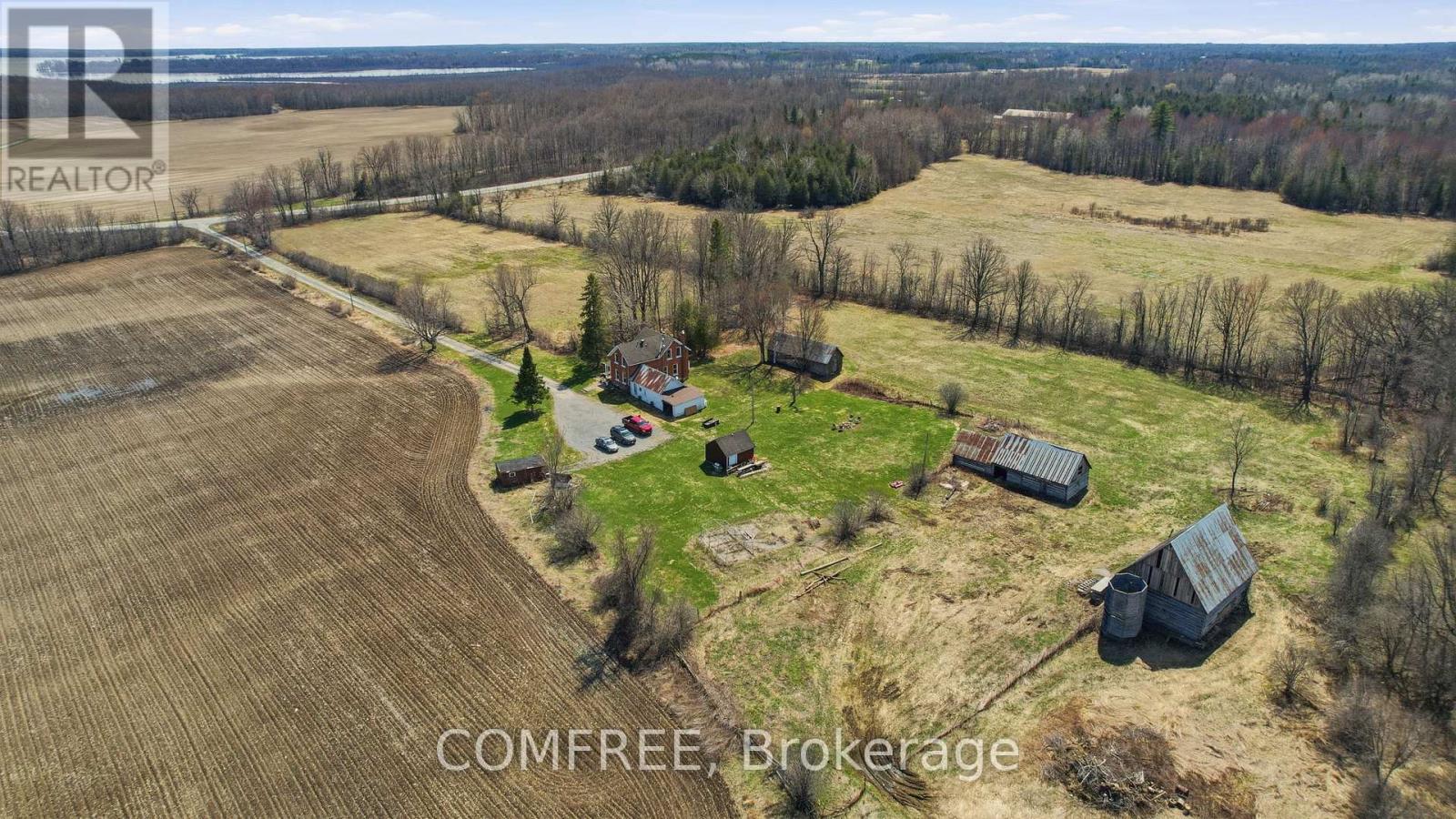 Spacious Brick farmhouse set on 95 acres, with primary entrance on Hwy 7 and secondary access off Concession 5A, is located less than 5 mins from Carleton Place. This house features large windows throughout. Front verandah overlooking patio, and walk-out unfinished stone basement/utility room with forced propane furnace (2017), owned water heater (2020)and sump pump (2017). Large country kitchen includes an island with seating, cupboards, and new stove top (2025), lots of cabinets with a wall oven (2025) and pantry cabinets. Attached to the kitchen is the former summer kitchen, although rustic, has hydro and acts as a mudroom during Summer and a great place to store wood during Winter. Main floor has 10 ft high ceilings, living room with woodstove(2022 WETT Certified) and an adjacent formal dining room. On the upper level 3 Bedrooms with walk-in closets, a nook at the top of the stairs currently used for office space, 4 piece bathroom, and a 4th room (no closet) could be used as a den, extra storage, office, playroom, or nursery. Property has a mix of soft/hard wood, forest, meadows, some wetlands, including 5 Hay and 3 tillable pastures farmed by a local farmer not the current owners. 3 large outbuildings for ATV or equipment storage, separate workshop with hydro, carport with hydro, 3 acres inground dog fence, and 3 separate wells on property if needed. Additional updates include septic tank (2019). 200 amp service. Zoned both residential and farmland, lowering property taxes but all municipal services included(garbage/recycling/mail/door-to-door school transportation to all local schools). High speed satellite avail. 25 mins to Ottawa, 20 mins to Perth, 4hrs to Toronto and 2.5hrs to Montreal. (id:44758)