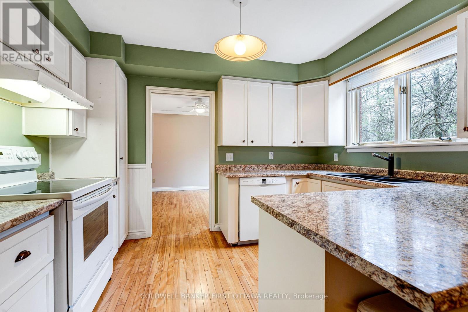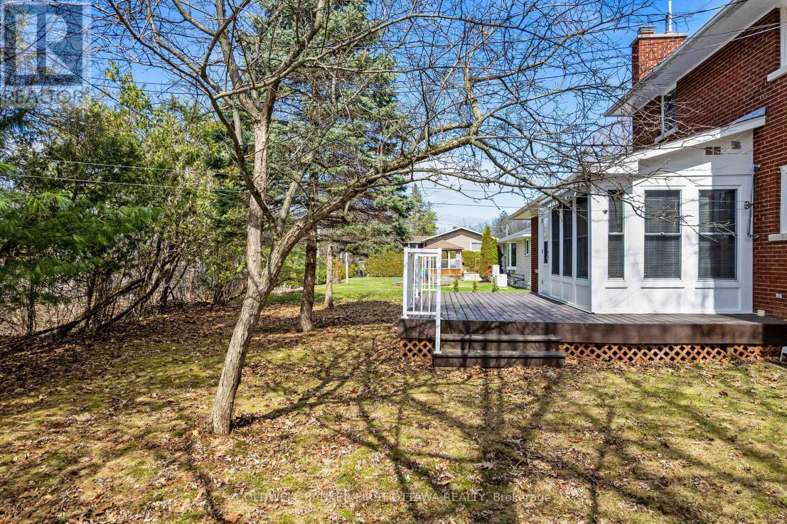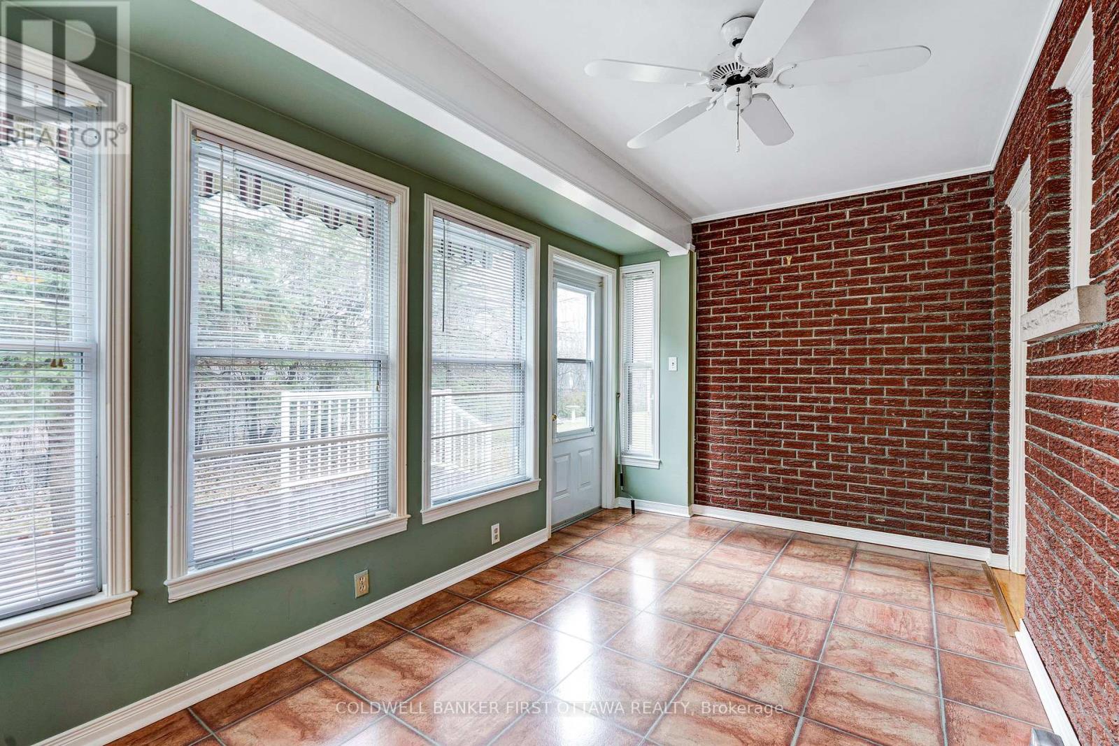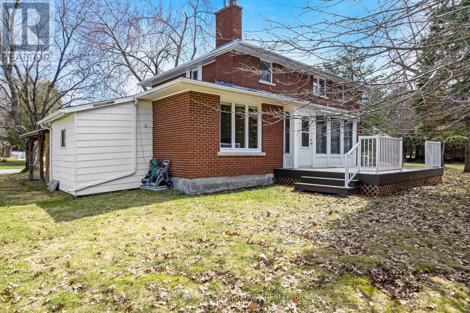 On treed crescent in quiet family neighbourhood of Perth, attractive all-brick home built mid-century when big spaces were top priority for accommodating large families. Above graded is 2,527sf of light-filled living space and the finished lower level has 975sf. Throughout this home are generous sized rooms with lots of space for everyone; upstairs on second floor are four bedrooms plus, lower level has two more bedrooms and bathroom. Welcoming you home is lovely classic enclosed porch, perfect for hanging plants and lounging away afternoons. The expansive living and dining rooms provide great spaces for gatherings and entertaining. Family room has large window overlooking the backyard and a fireplace with gas insert bordered by built-in shelves. Bright white kitchen offers ample prep areas, storage cupboards and peninsula-breakfast bar. Adjoining the kitchen is dinette area. Patio doors open to the cheerful sunroom with walls of windows and door to deck that overlooks lovely landscaped yard with mature trees. The main floor also has powder room. Upstairs, primary suite with walk-in closet and three-piece ensuite. Three more comfortable bedrooms, with large closets. The five-piece bathroom includes convenient two-sink vanity. Lower level rec room, two more bedrooms and three-piece bathroom. Lower level has workshop for family projects and also has well-equipped laundry room with sink, folding counter and shelving. Attached single garage features inside entry, yard door and attached car port. Home has efficient hot water on demand as part of the gas-fired boiler system that heats water for the home's wall radiant heaters. Included is auto generator that can power all the home. On the electrical panel is surge protector for the whole home. Great location, near all amenities with school bus going right by the home. Or, 5 min walk to public school and 7 min walk to high school. (id:44758)