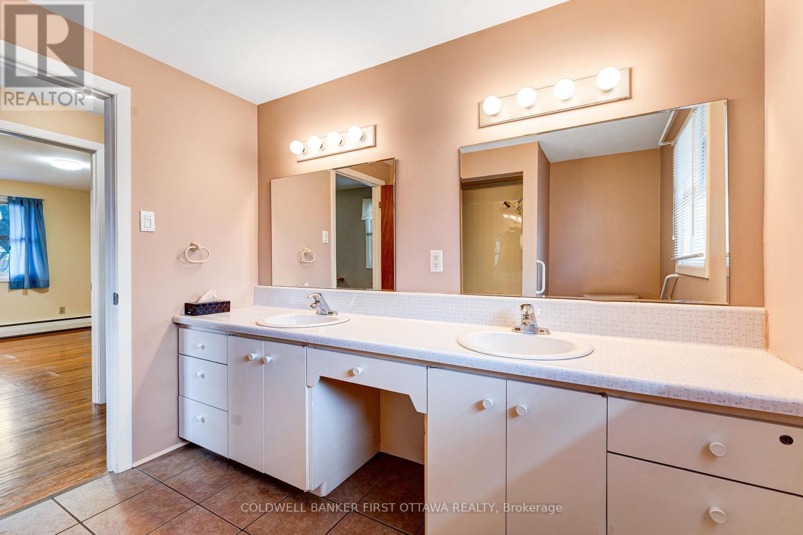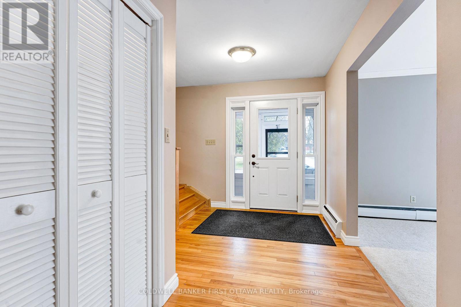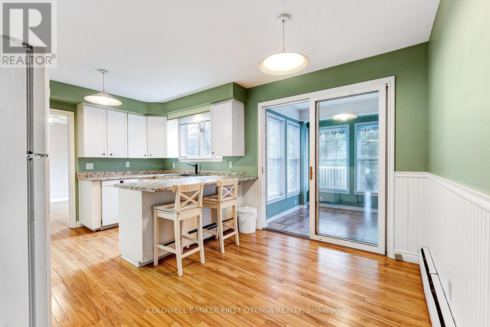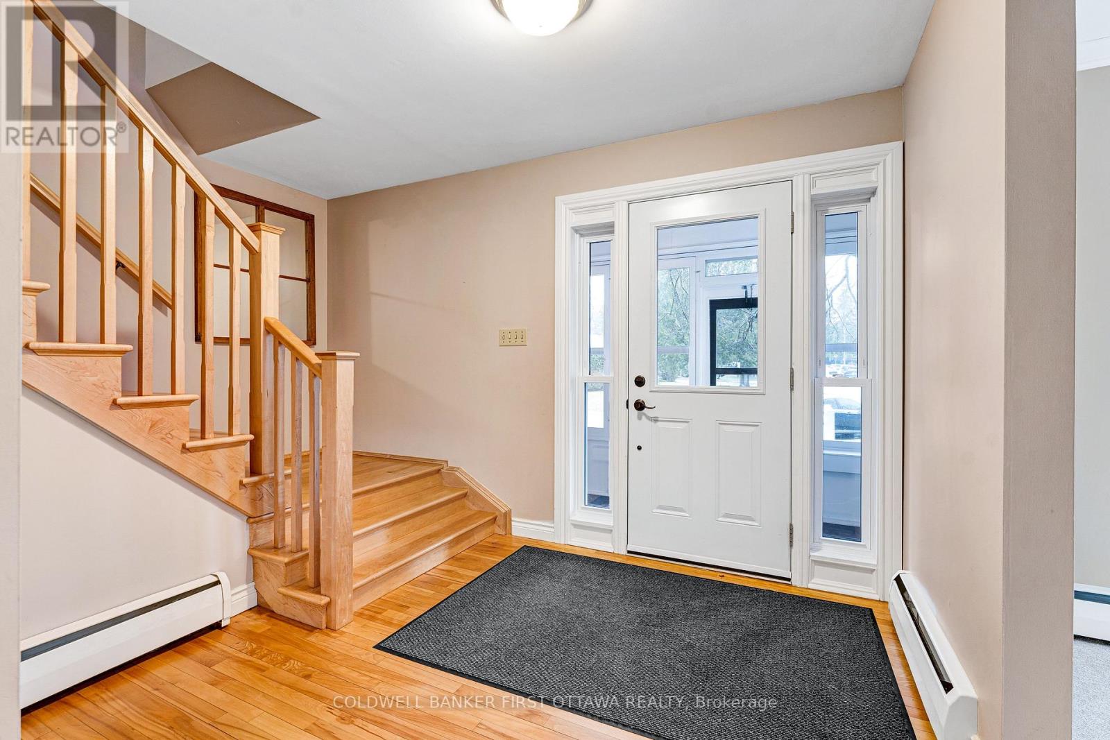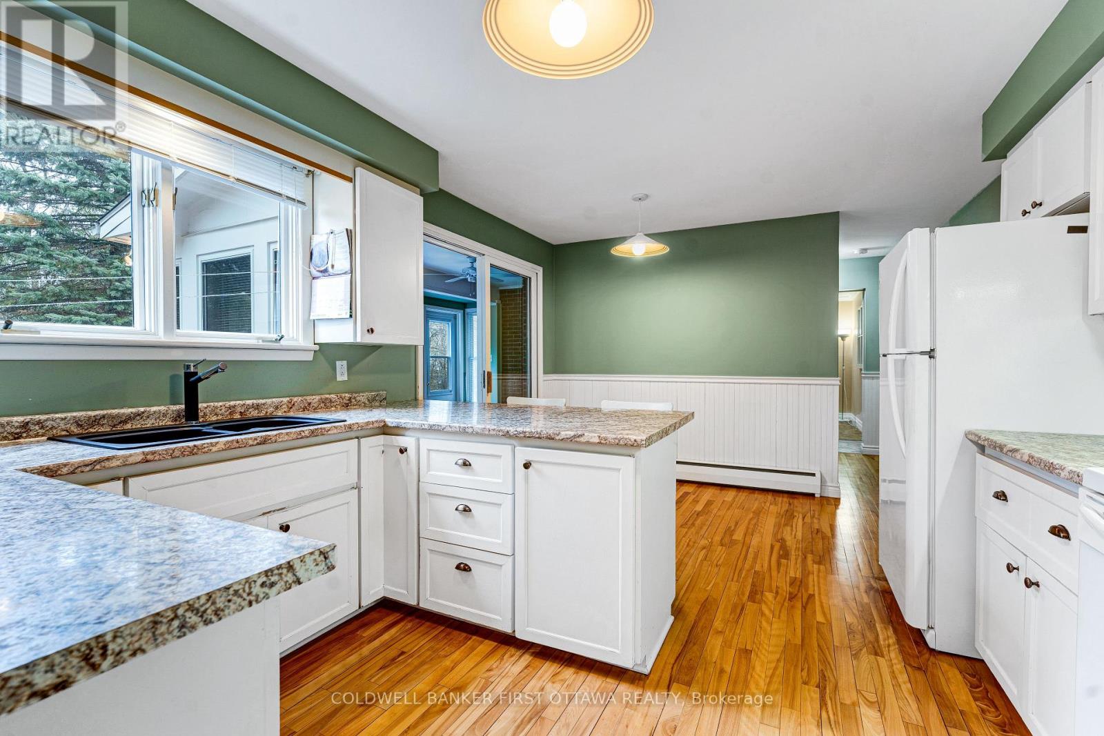 On treed crescent in quiet family neighbourhood of Perth, attractive all-brick home built mid-century when big spaces were top priority for accommodating large families. Above graded is 2,527sf of light-filled living space and the finished lower level has 975sf. Throughout this home are generous sized rooms with lots of space for everyone; upstairs on second floor are four bedrooms plus, lower level has two more bedrooms and bathroom. Welcoming you home is lovely classic enclosed porch, perfect for hanging plants and lounging away afternoons. The expansive living and dining rooms provide great spaces for gatherings and entertaining. Family room has large window overlooking the backyard and a fireplace with gas insert bordered by built-in shelves. Bright white kitchen offers ample prep areas, storage cupboards and peninsula-breakfast bar. Adjoining the kitchen is dinette area. Patio doors open to the cheerful sunroom with walls of windows and door to deck that overlooks lovely landscaped yard with mature trees. The main floor also has powder room. Upstairs, primary suite with walk-in closet and three-piece ensuite. Three more comfortable bedrooms, with large closets. The five-piece bathroom includes convenient two-sink vanity. Lower level rec room, two more bedrooms and three-piece bathroom. Lower level has workshop for family projects and also has well-equipped laundry room with sink, folding counter and shelving. Attached single garage features inside entry, yard door and attached car port. Home has efficient hot water on demand as part of the gas-fired boiler system that heats water for the home's wall radiant heaters. Included is auto generator that can power all the home. On the electrical panel is surge protector for the whole home. Great location, near all amenities with school bus going right by the home. Or, 5 min walk to public school and 7 min walk to high school. (id:44758)