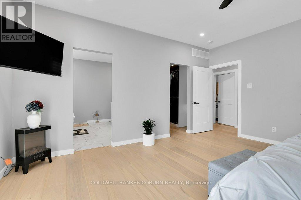 LARGE MODERN BUNGALOW at 12340 Forest Road situated on a 1.34 acre lot on a quiet Township Road just 600 feet from Bank Street/County Road 31, offering convenient commuting distance to Ottawa, Cornwall, Morrisburg & Brockville. The exterior features a maintenance free design with stone & modern board & batten on all sides, a covered front porch, & an inviting upgraded entry door. An oversized double garage provides large windows for natural light & automatic garage door openers. Inside, a vaulted ceiling & open concept layout create a bright, spacious environment ideal for both daily living & entertaining. Kitchen boasts hidden main level office space adjacent to the kitchen & a robust corner pantry as well as stunning quartz island and countertops with custom solid wood cabinetry. The main floor includes a well-planned mudroom with laundry conveniently located just off the garage entrance. The primary bedroom is generously sized & includes a walk-in closet with excellent storage & a well-appointed ensuite bathroom. The basement is partially finished to a high standard consistent with the main level & is accessed by a striking solid maple open wooden staircase with upgraded banisters and spindles. Quality features include: In-wall automatic hose retraction Central Vacuum unit on both levels of the home, quality appliances, a 2 ton cold climate heat pump with 7 kW backup heat, a Rheem high efficiency 3800 watt hot water heater & a Cummins 200 amp automatic transfer switch is installed in the garage ready for generator connection. Set in the peaceful countryside of Williamsburg in South Dundas, this property blends rural tranquility with modern convenience. Surrounded by farmland, trees, and open skies, it's near the St. Lawrence River for boating and recreation. With parks, trails, schools, amenities, and easy access to Highway 401, it offers space, privacy, and an ideal family lifestyle. Check out the virtual tour & additional photos. (id:44758)