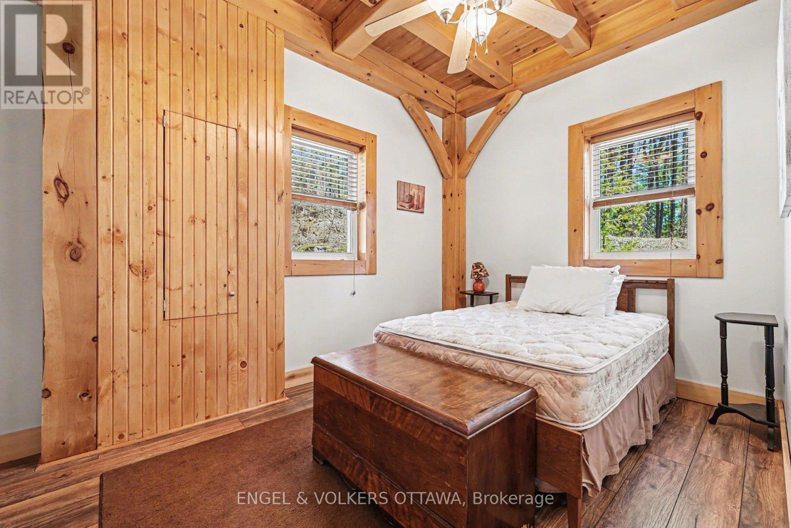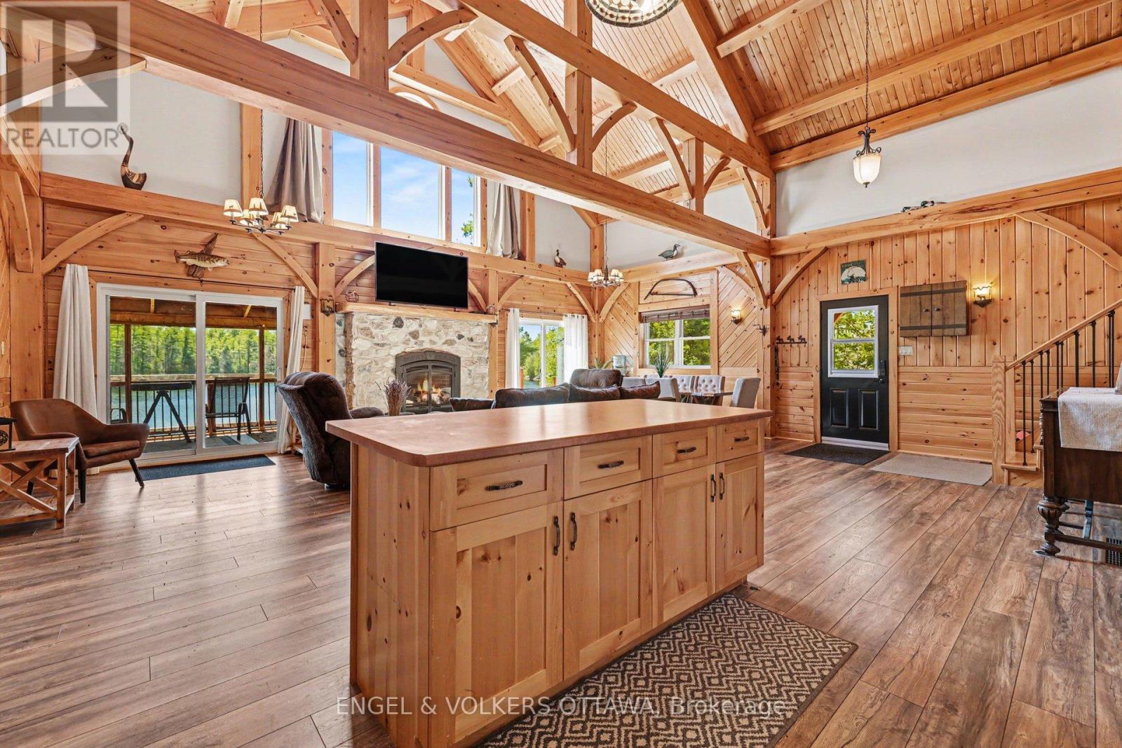 Set along the quiet shores of Shawenegog Lake, 1244 Marshall Lane offers a rare sense of scale and seclusion. Spanning 170 acres and bordered by over 200 acres of Crown land, this property is defined by privacy, uninterrupted views, and a deep connection to the surrounding landscape. The timber-frame home was built using wood milled directly from the property, giving it a character that feels rooted in its setting. Inside, vaulted ceilings, exposed beams, and a stone fireplace create a warm, open living space, while large lakeside windows draw in natural light and frame the water beyond. The main floor features two bedrooms and a full bath, with a lofted primary suite above offering a more private retreat. Screened porches on both sides of the home and a lakeside deck provide comfortable outdoor spaces throughout the seasons. With approximately 550 feet of shoreline and additional protected Crown land across the lake, the views remain untouched. This stretch of shoreline is home to only a small number of properties, further enhancing the sense of quiet and space. Modern upgrades-including propane heating, central air, updated windows and doors, Starlink internet, and a backup generator-support year-round living without compromising the home's original craftsmanship. Surrounded by trails, forest, and water, this property offers a setting that is both private and enduring. It is suited for those seeking space, simplicity, and a place to fully step away. (id:44758)