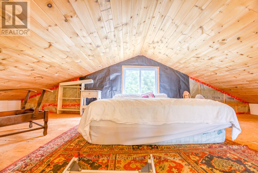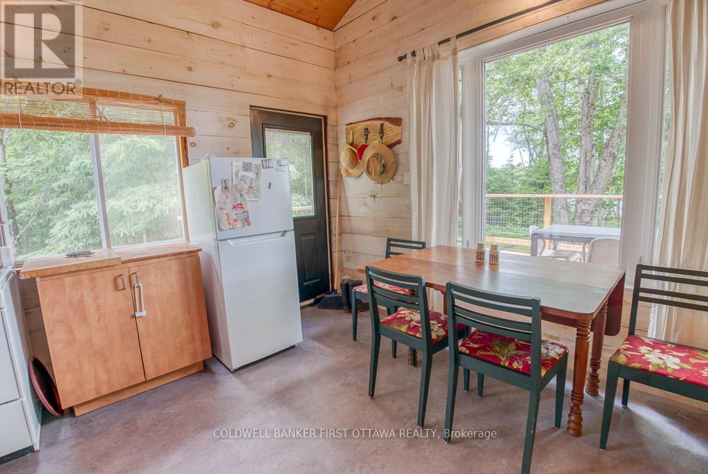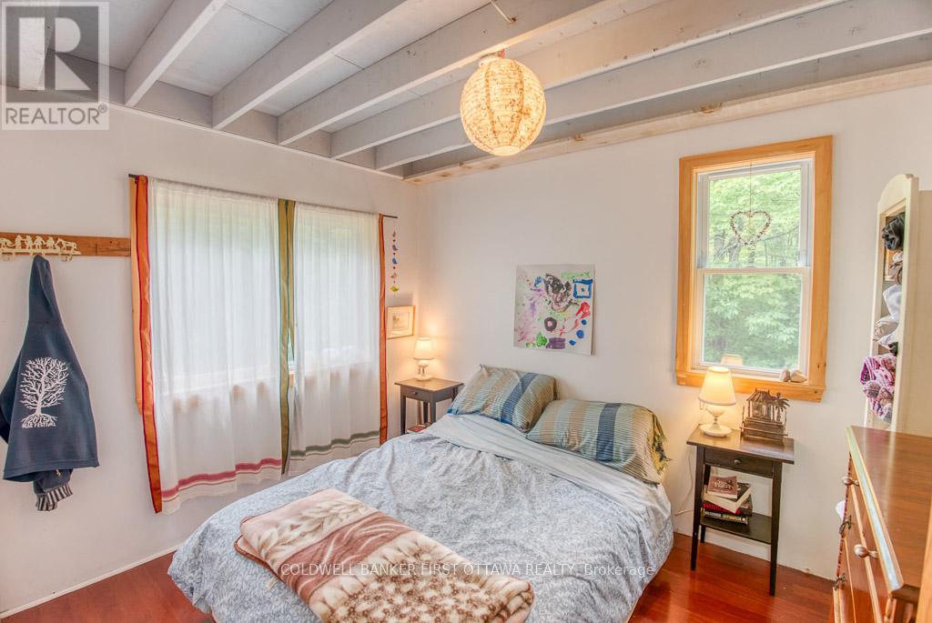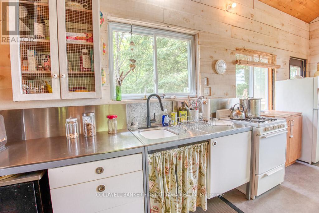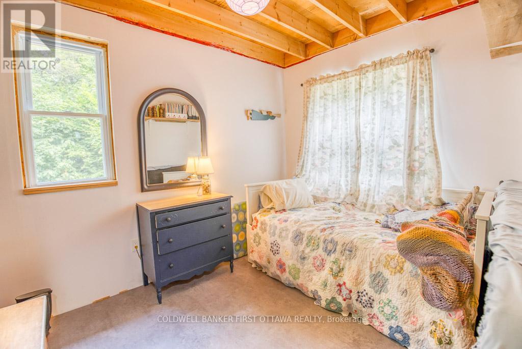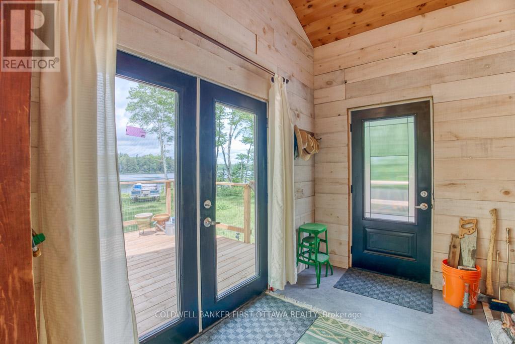 Welcome to 1305 Thunder Lane! Come discover this charming Off Grid, 2-Bedroom w/loft, 1 Bath cottage on Thompson Lake. Located approximately 1km off the main road, the lot offers 1.58 acres with dense trees on either side providing you with excellent privacy. The building constructed in 2004 has an open concept with a spacious kitchen, dining and living room for fun, family gatherings and plenty of sleeping space to accommodate your guest. The vaulted ceilings and insulated walls keep the cottage cool in the summer while offering a grand feeling inside. The cottage is powered with a 650-watt solar system with room to expand, lake intake and a septic system installed in 2019. The lot offers plenty of level space from the cottage to the waterfront which makes it ideal for family members of all ages and room for all your favourite outdoor activities. Sit out and enjoy the sun on the wrap around deck, enjoy a late-night bonfire or take advantage of being in a Dark Sky area to look up at the stars. The cottage comes with most furnishings....ready to enjoy the summer! Thompson Lake is excellent to enjoy fishing, leisure boat rides (electric motors recommended on the lake) or just a nice peaceful paddle in your canoe. The lake is home to only a handful of residence making it a real paradise to be able to sit back, listen to the Loons and take in the sounds and beauty that surrounds you. The town of Arden or Sharbot Lake are only a short drive away for all your essential amenities. (id:44758)