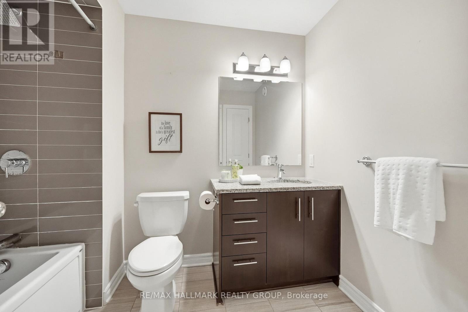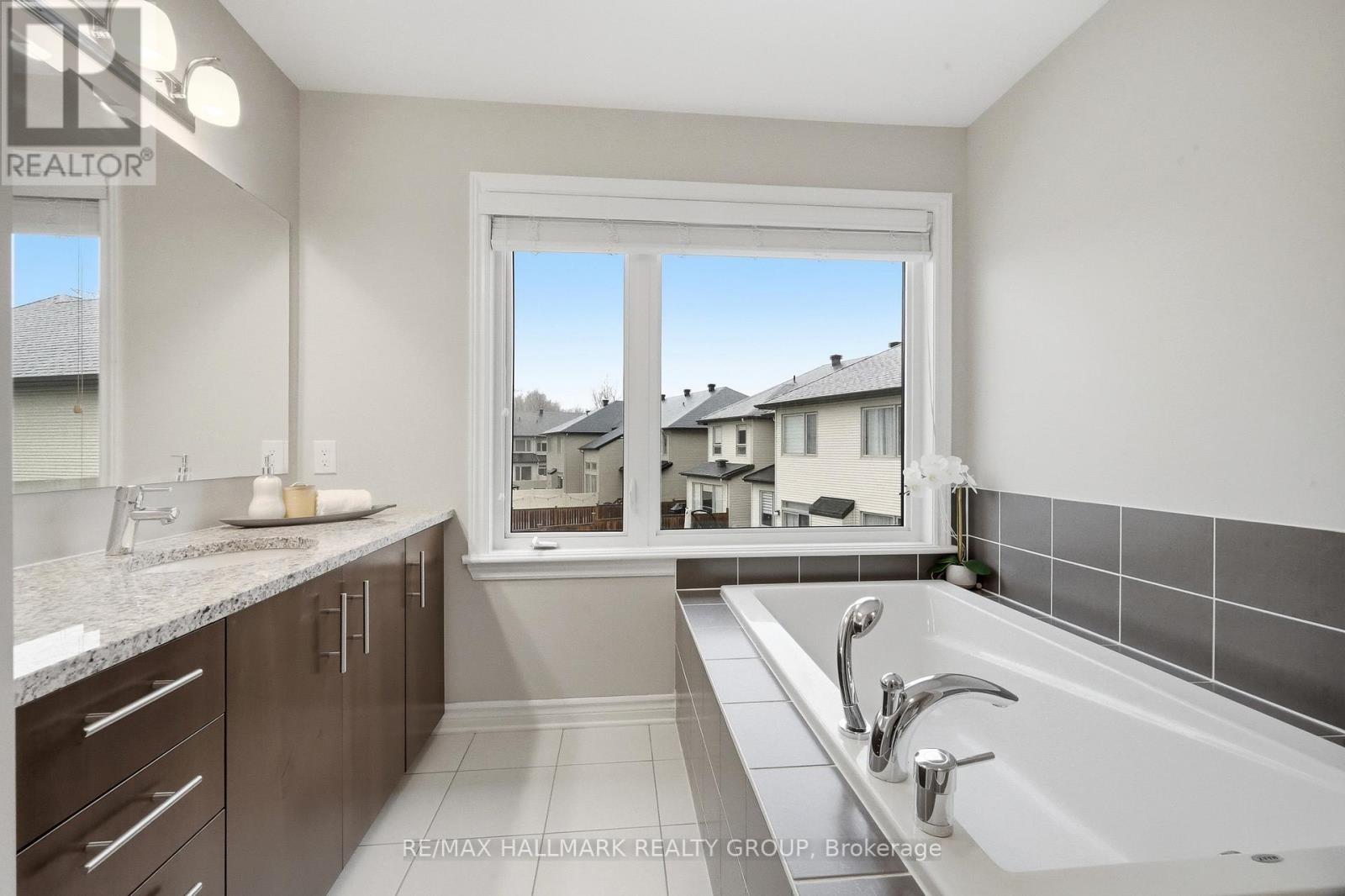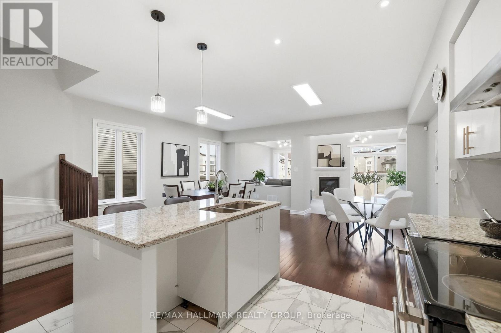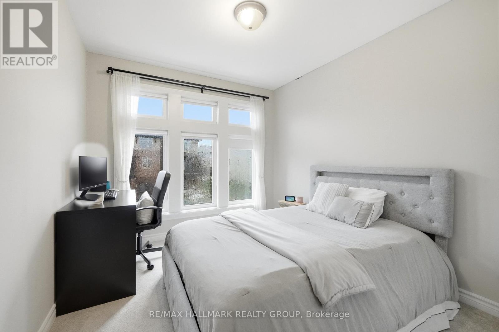 Welcome to 137 Wild Calla Way, a beautifully upgraded Richcraft Fairhaven End Unit townhome located in the desirable Bradley Estates community in Orleans. Offering a rare 4 bedroom layout with the builder loft professionally converted to a fourth bedroom and 3 bathrooms, this home provides both space and functionality for modern living. The main level features a bright open concept design with hardwood flooring throughout the main hallway and dining areas. The inviting living room is finished with cozy carpeting, a gas fireplace, and access to the backyard. The modern white kitchen overlooks the living space and includes stainless steel appliances, double oven, ice-maker fridge, centre island with double sink and breakfast bar, and plenty of cabinetry for storage. Upstairs you will find four spacious carpeted bedrooms including the primary suite, along with the convenience of second-floor laundry. All three bathrooms feature granite countertops, with upgraded power showers in the primary ensuite and second bathroom, and the main bath includes tile extended to the ceiling. Additional upgrades include oak stairs, modern light fixtures in the living room, kitchen island, dining room and primary bedroom, flow-through humidifier, central air conditioning, updated kitchen faucet, and plumbing improvements including new sink stoppers in all bathrooms and the powder room. The home has also been freshly painted throughout with updated baseboards. The finished lower level recreation room provides additional living space, while a large unfinished storage/utility area offers excellent storage potential. Outside, enjoy extended driveway parking with interlock for two vehicles, a single garage with inside entry featuring built-in tire rack and custom storage, plus a convenient side storage shed. Located close to parks, schools, transit, and everyday amenities, this move-in ready end unit offers comfort, upgrades, and an excellent family-friendly location! (id:44758)