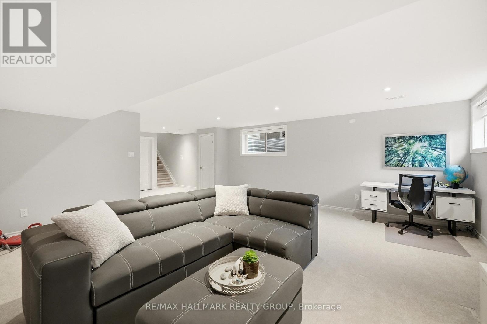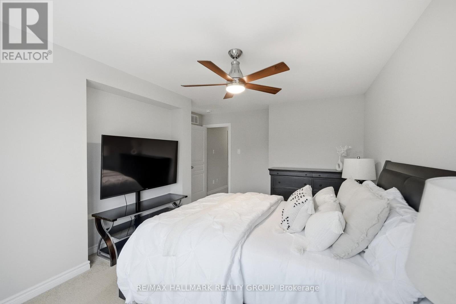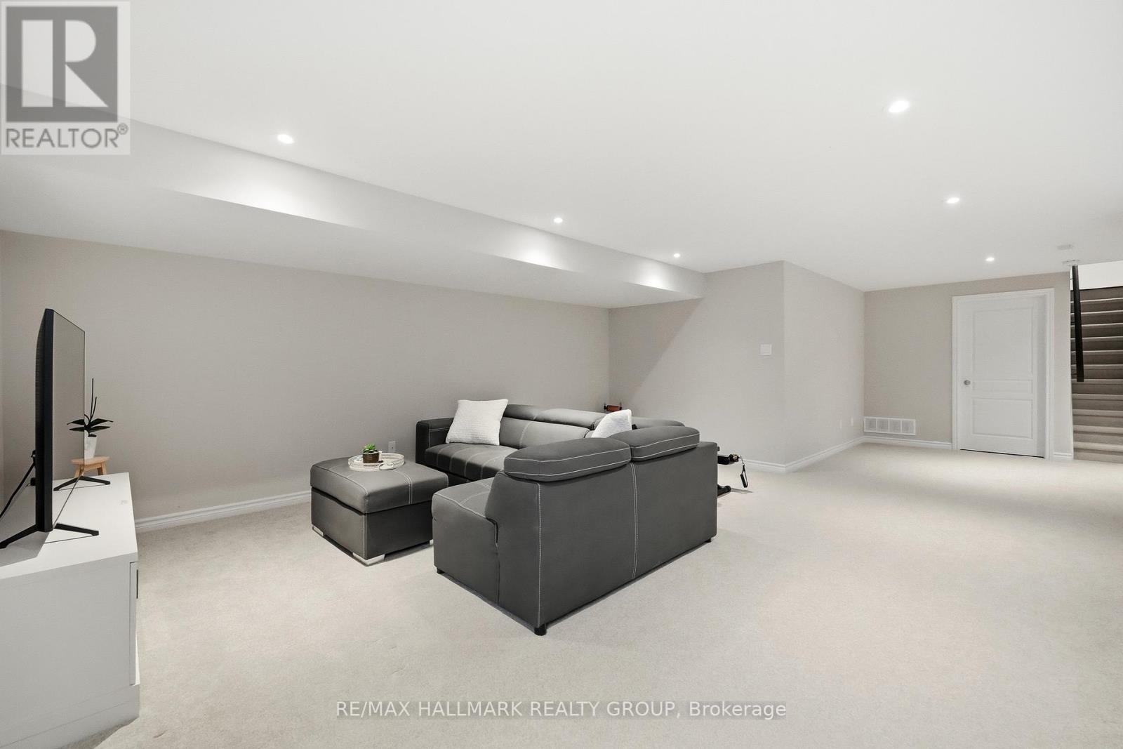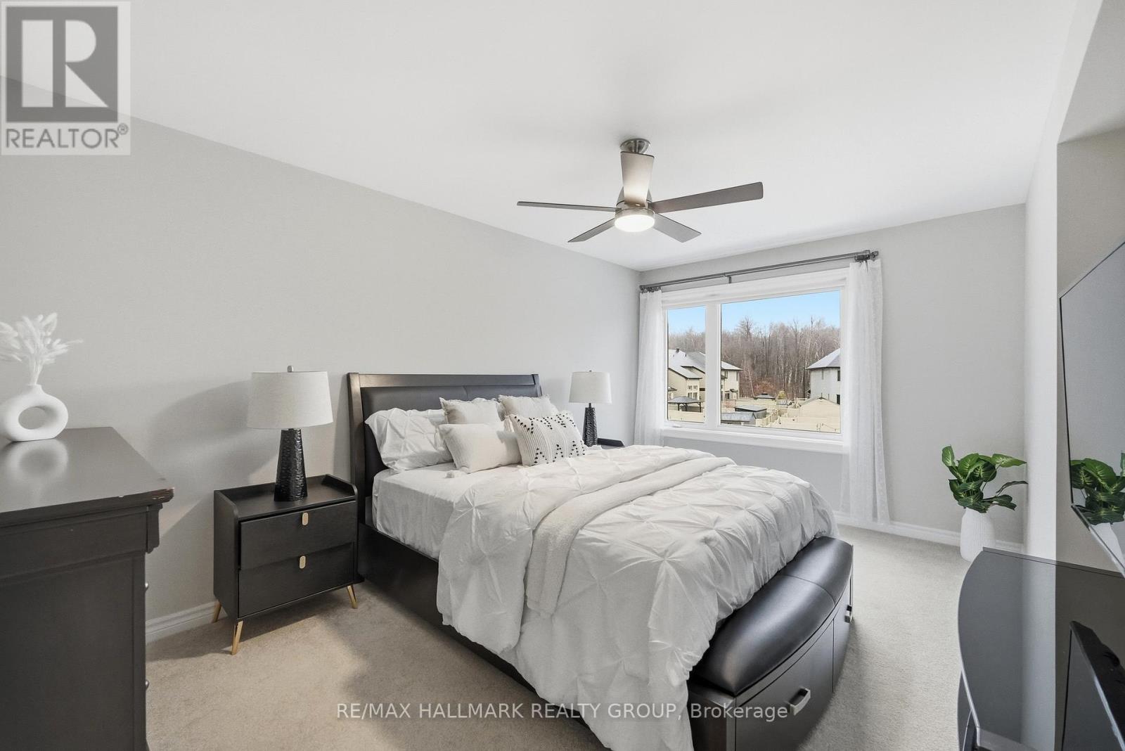 Welcome to 137 Wild Calla Way, a beautifully upgraded Richcraft Fairhaven End Unit townhome located in the desirable Bradley Estates community in Orleans. Offering a rare 4 bedroom layout with the builder loft professionally converted to a fourth bedroom and 3 bathrooms, this home provides both space and functionality for modern living. The main level features a bright open concept design with hardwood flooring throughout the main hallway and dining areas. The inviting living room is finished with cozy carpeting, a gas fireplace, and access to the backyard. The modern white kitchen overlooks the living space and includes stainless steel appliances, double oven, ice-maker fridge, centre island with double sink and breakfast bar, and plenty of cabinetry for storage. Upstairs you will find four spacious carpeted bedrooms including the primary suite, along with the convenience of second-floor laundry. All three bathrooms feature granite countertops, with upgraded power showers in the primary ensuite and second bathroom, and the main bath includes tile extended to the ceiling. Additional upgrades include oak stairs, modern light fixtures in the living room, kitchen island, dining room and primary bedroom, flow-through humidifier, central air conditioning, updated kitchen faucet, and plumbing improvements including new sink stoppers in all bathrooms and the powder room. The home has also been freshly painted throughout with updated baseboards. The finished lower level recreation room provides additional living space, while a large unfinished storage/utility area offers excellent storage potential. Outside, enjoy extended driveway parking with interlock for two vehicles, a single garage with inside entry featuring built-in tire rack and custom storage, plus a convenient side storage shed. Located close to parks, schools, transit, and everyday amenities, this move-in ready end unit offers comfort, upgrades, and an excellent family-friendly location! (id:44758)