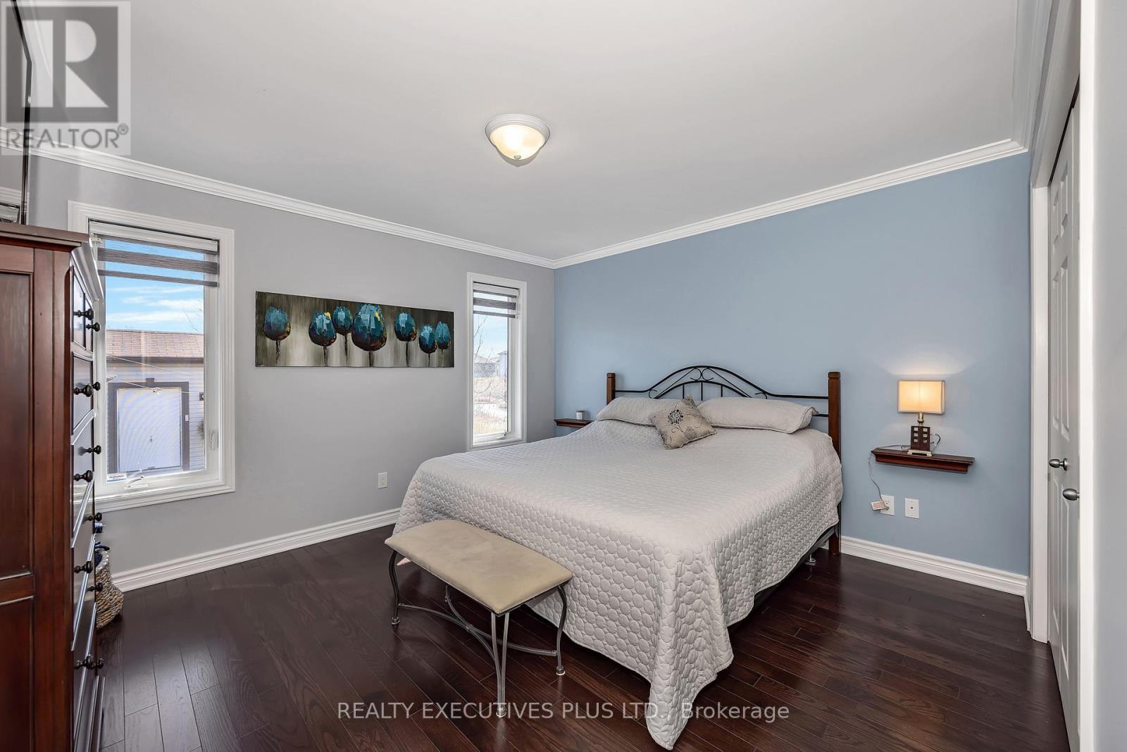 Stunning semi-detached home with no rear neighbours and beautiful pond views on the south side. This extremely well-maintained 2+1 bedroom home offers a functional layout, a bright kitchen with quartz countertops, ample cabinetry, and gleaming solid hardwood floors on the main level. The main floor also features a 4-piece bathroom and a warm, inviting living space.The fully finished basement provides excellent additional living space with a family room, third bedroom, 3-piece bathroom, and a spacious storage area. The garage is fully finished with PVC walls and epoxy flooring, offering a clean and practical space.Outside, enjoy a fully landscaped property with a double-wide driveway, manicured lawn, composite deck, natural gas BBQ hookup, interlock patio with pergola, large storage shed, mature shrubs for added privacy, and peaceful views of the pond.Additional features include all appliances, window blinds, garage door opener, storage shed, piano in the basement, GenerLink installed and ready for your generator, Hydro approx. $1,016 for 2025 and Natural Gas approx. $773 for 2025.Homes like this do not come on the market often. Do not miss your chance to make this your little piece of paradise. (id:44758)