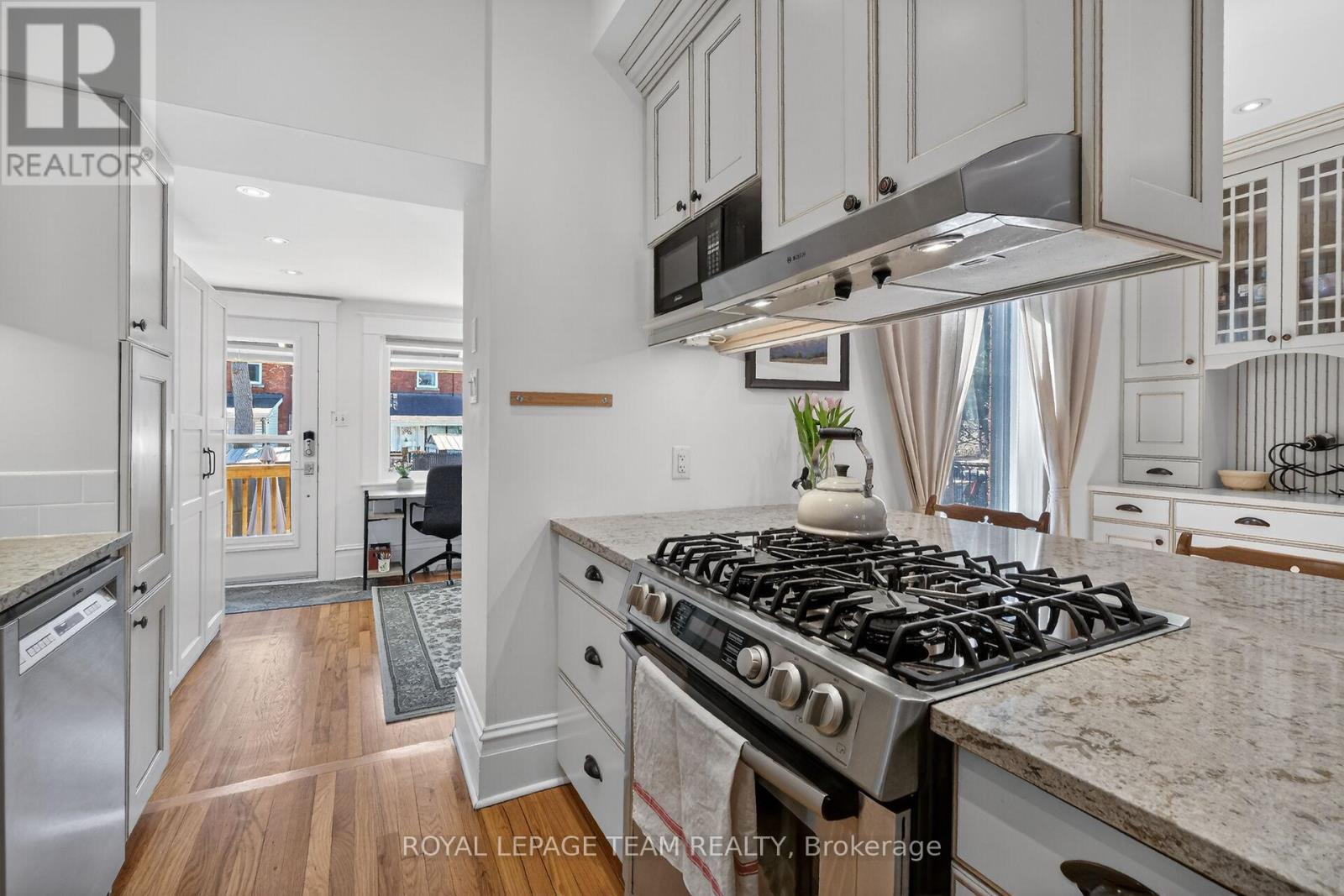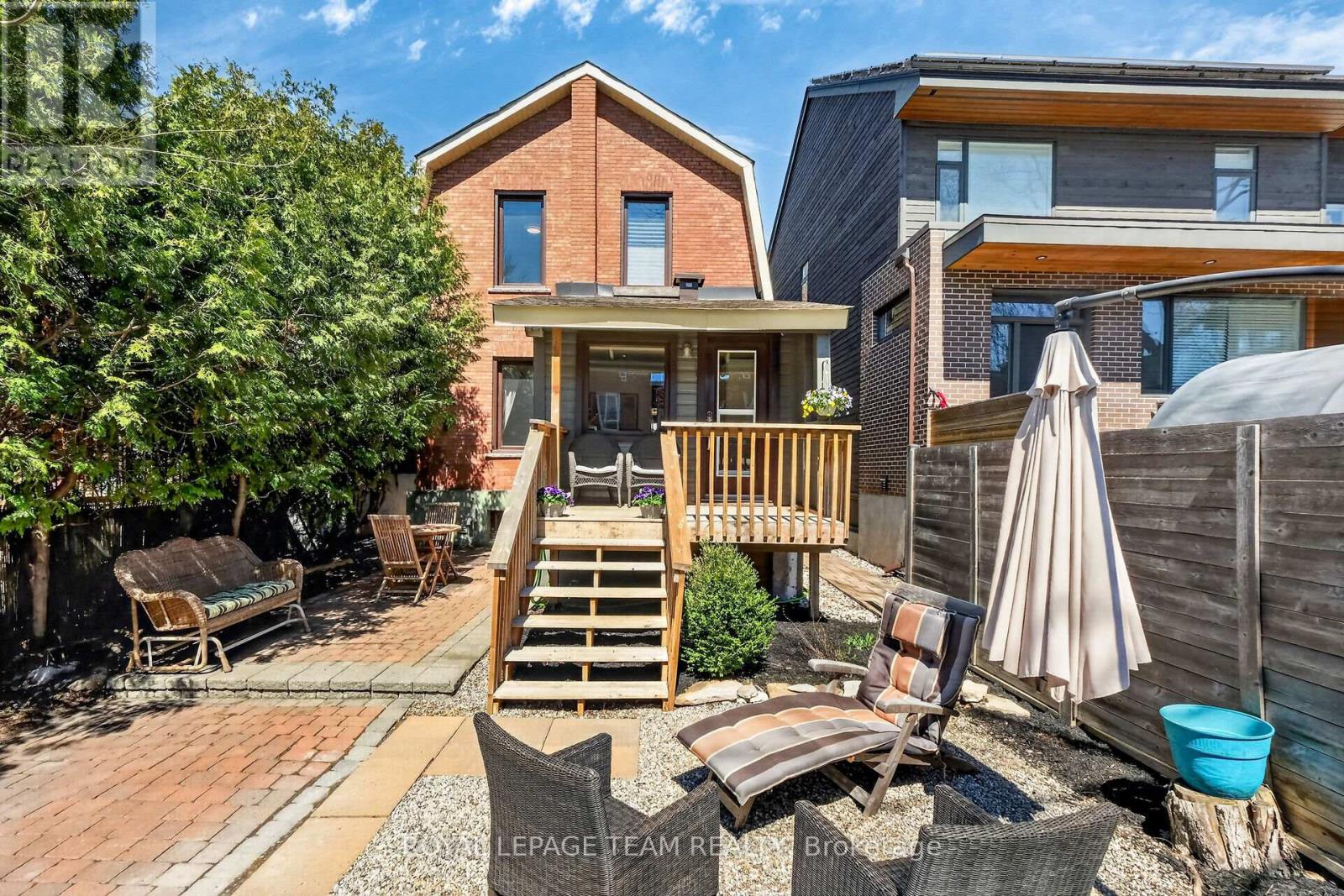 Nestled in the heart of Old Ottawa South, this charming century red brick home blends timeless character with modern updates in a warm, family-oriented neighbourhood. A welcoming old-world front porch sets the tone-perfect for morning coffee or unwinding in the evening while enjoying the tree-lined streetscape. Just steps to the Rideau Canal and within walking distance to parks, schools, and vibrant local amenities, the location is second to none. Inside, the main floor offers a bright, open-concept layout designed for both comfortable living and effortless entertaining. A versatile mudroom/den addition with custom cabinetry provides exceptional storage and function, complete with direct access to the covered back deck and rare rear parking. The updated gourmet kitchen features quartz countertops, a gas stove, and a breakfast bar for casual dining. Upstairs, you'll find three generously sized bedrooms, including a spacious primary retreat that easily accommodates a king-sized suite. The main bathroom was beautifully renovated in 2020 with a double sink vanity, and conveniently includes the relocated washer and dryer. Key updates include roof shingles (2021), spray foam insulation beneath the mudroom, and newer windows for added efficiency and peace of mind. Enjoy an active, connected lifestyle just a short stroll to the Tennis & Lawn Bowling Club, Brewer Park, and Lansdowne. A rare opportunity to own a character-filled home in one of Ottawa's most desirable communities-bring the family and begin your next chapter here. 24 Hr Irrevocable. No Conveyance of Offers until 6:00pm on Monday May 4th, 2026 Open House May 3, 2 - 4 pm (id:44758)
