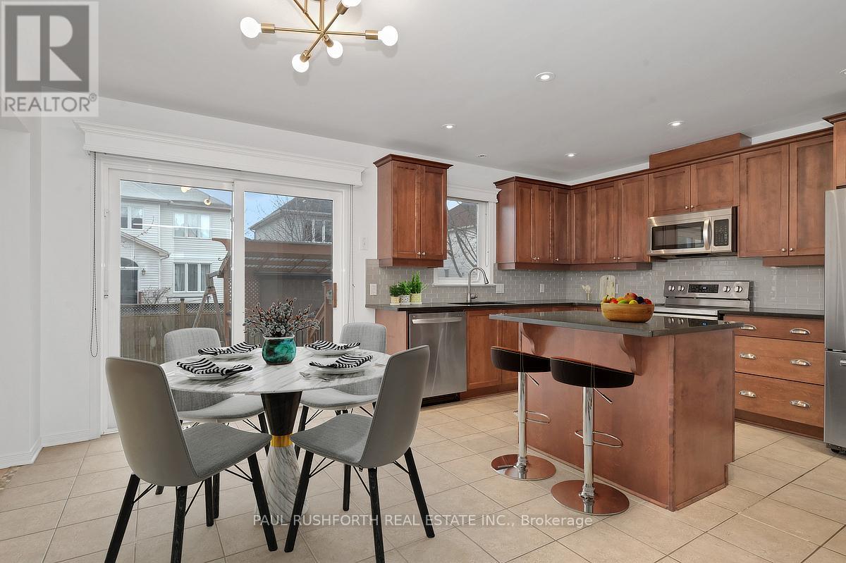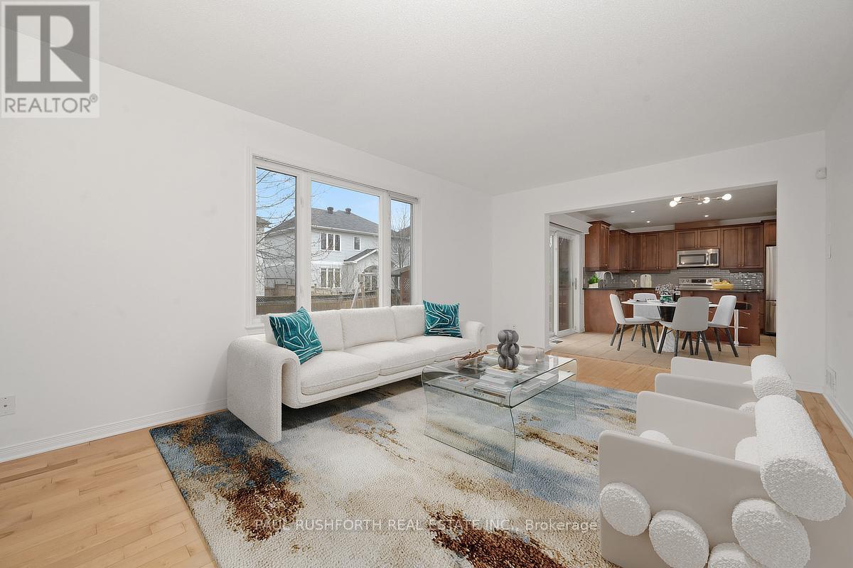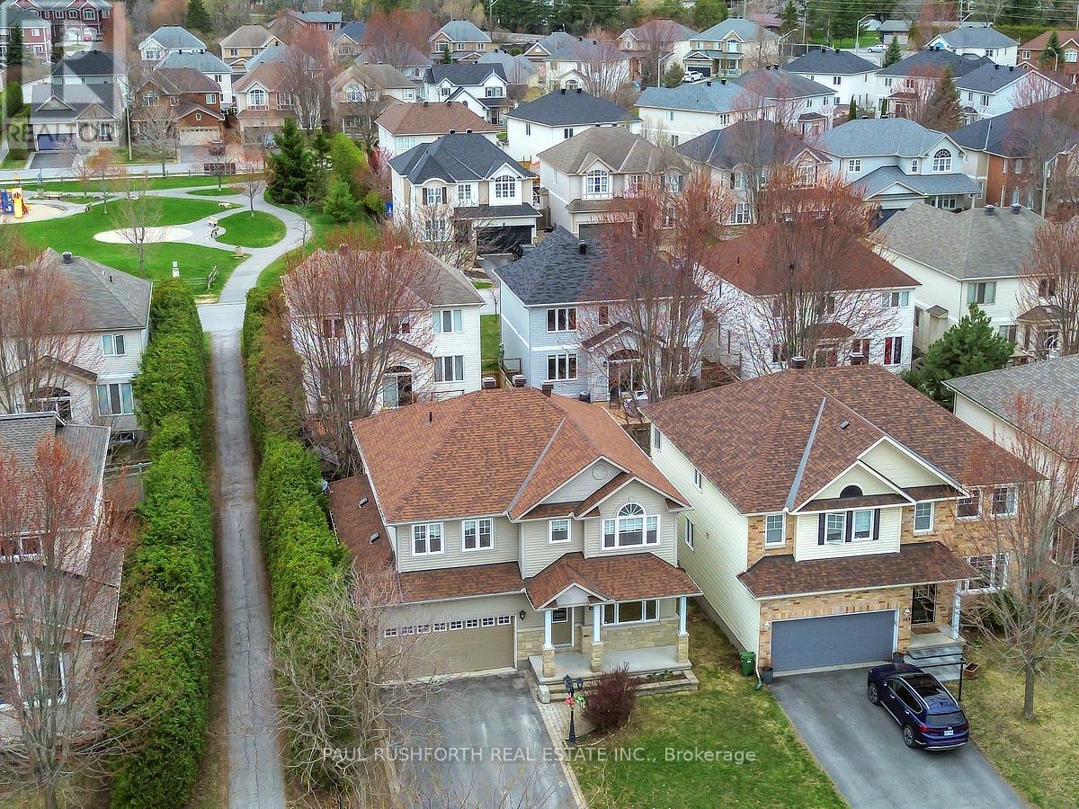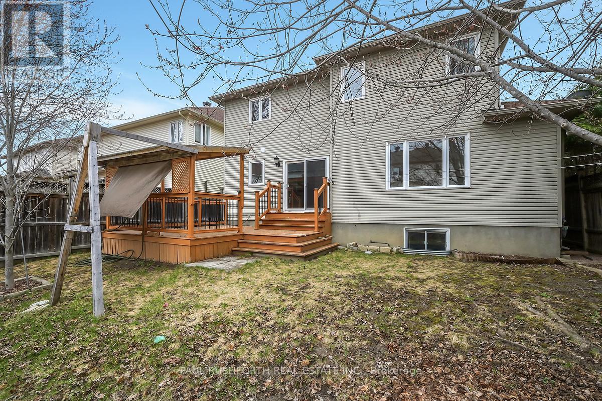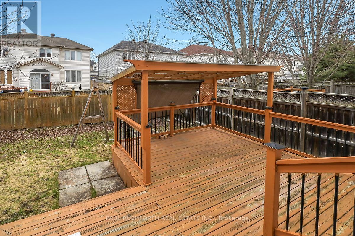 Discover this stunning 4 BEDROOM, 4 BATHROOM home in a highly sought-after Stittsville community, ideally located near parks, schools, shopping, and scenic trails. Step inside to an impressive OPEN TO ABOVE living room filled with natural light, soaring ceilings, and elegant hardwood flooring throughout. A stylish butler's station connects seamlessly to the gourmet kitchen, complete with granite countertops, stainless steel appliances, ample cabinetry, double sinks, and a large island with breakfast seating. Patio doors lead to a beautifully landscaped backyard featuring a spacious multi-level deck-perfect for entertaining. The inviting family room offers a cozy gas fireplace, creating the ideal space to relax. A convenient powder room and well-designed laundry area with custom storage complete the main level. Upstairs, a versatile loft provides the perfect home office or lounge space. The primary suite features a walk-in closet and a spa-like ensuite, complemented by two additional bedrooms and a full bathroom. The FULLY FINISHED BASEMENT is an entertainer's dream with a large recreation area, stone-accented fireplace, wet bar with wine fridge, and plush carpeting. A fourth bedroom with walk-in closet and adjacent full bathroom adds excellent flexibility for guests or extended family. Outside, enjoy a private, fully fenced yard with a landscaped setting and multi-level deck designed for outdoor living. A perfect blend of elegance, comfort, and functionality-this home is truly move-in ready. Some photos have been virtually staged. (id:44758)