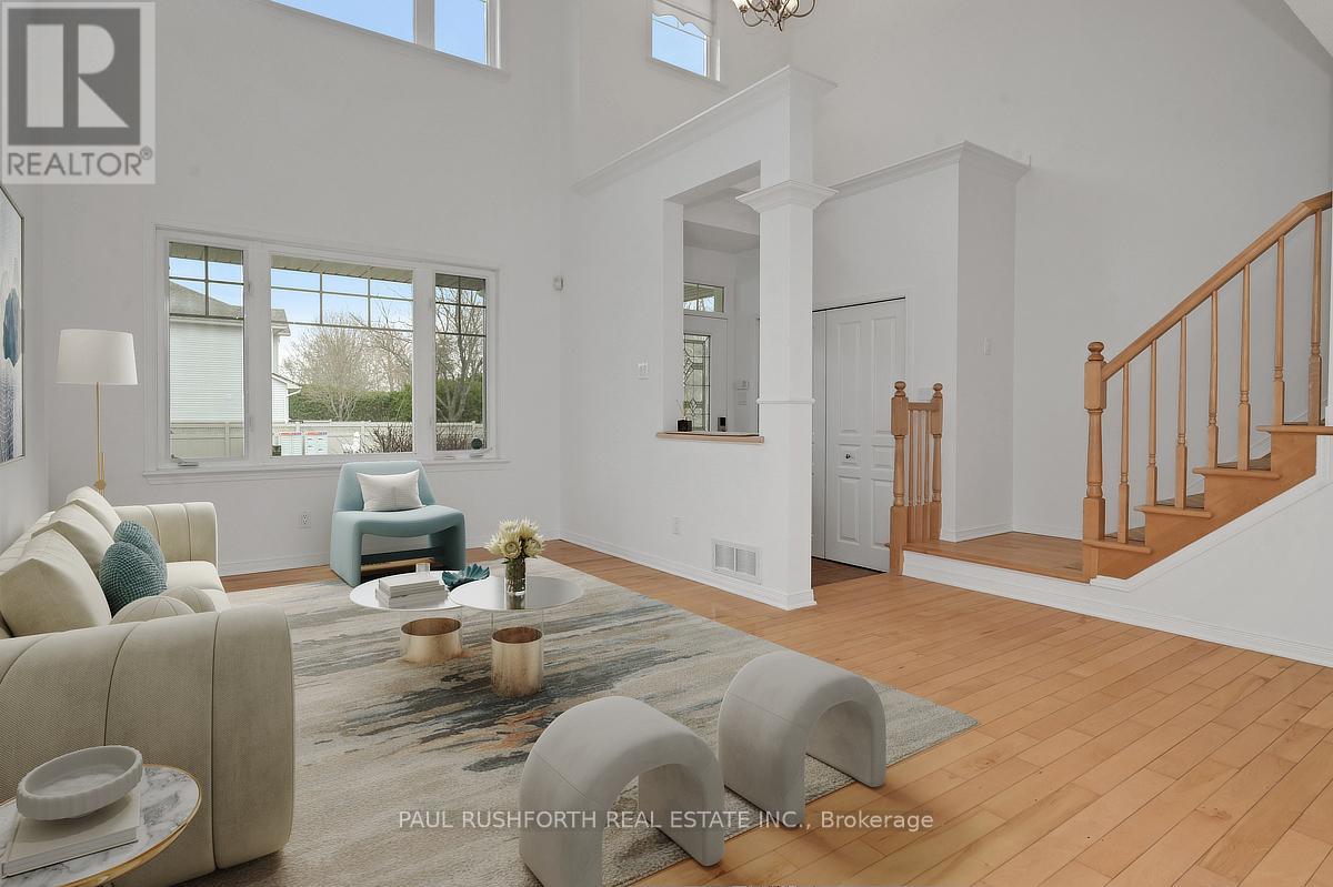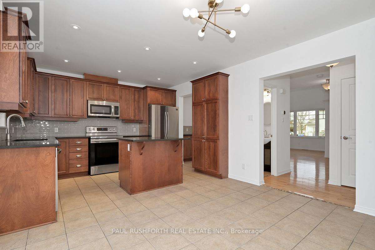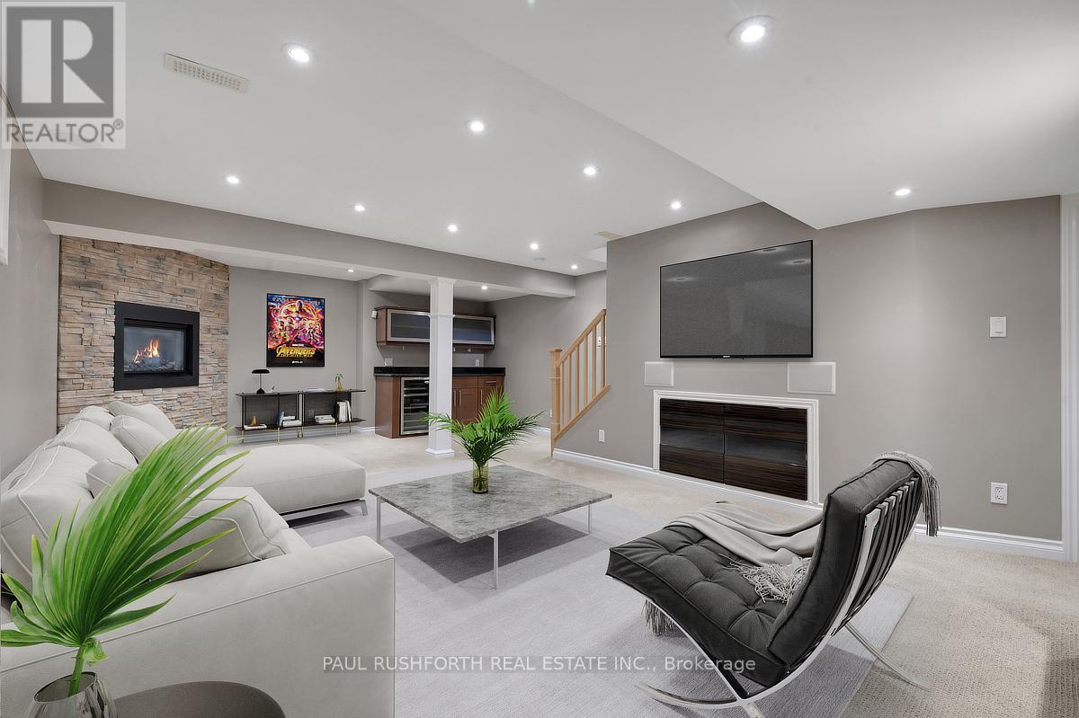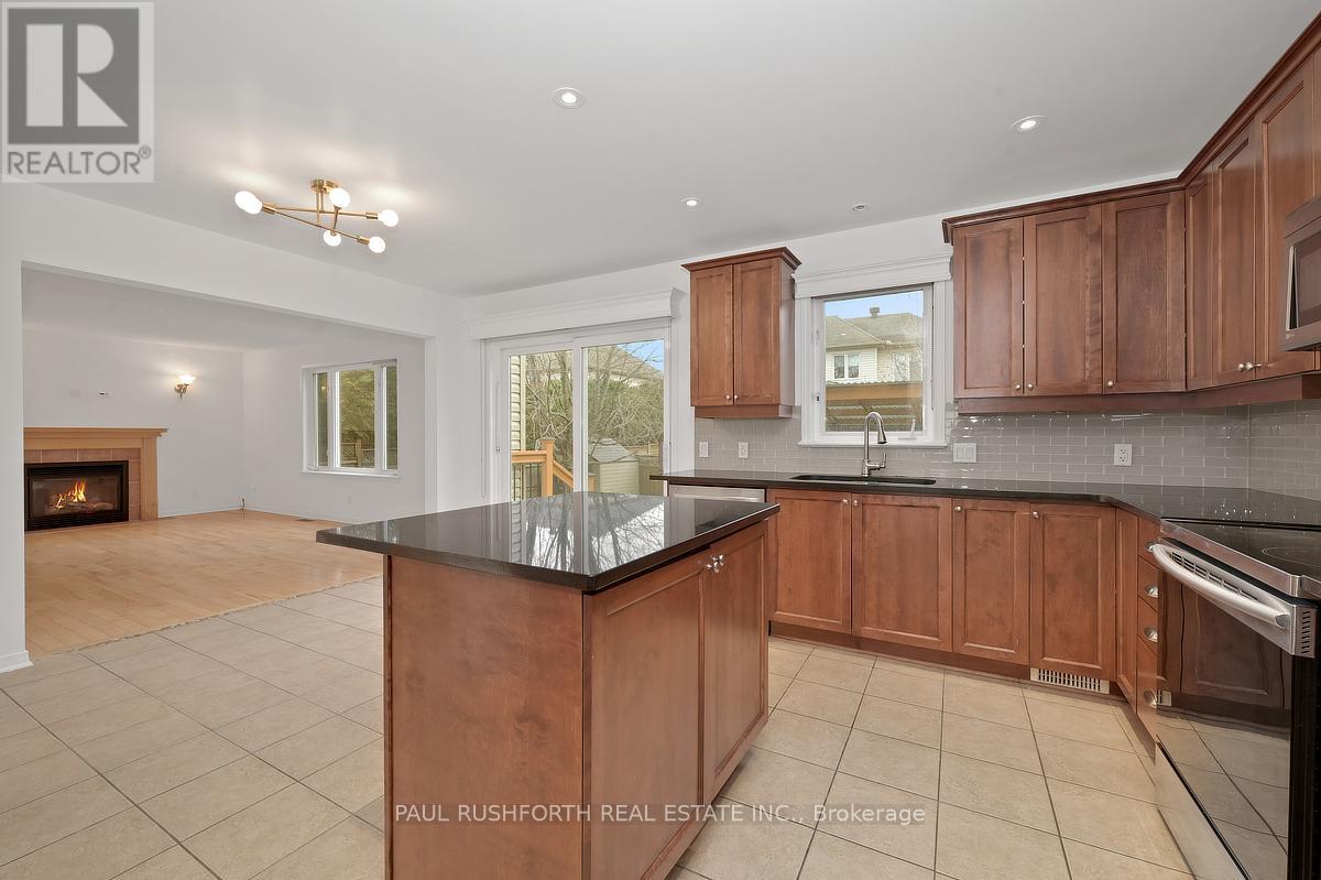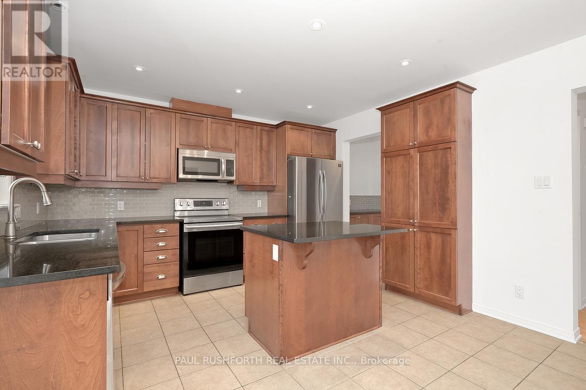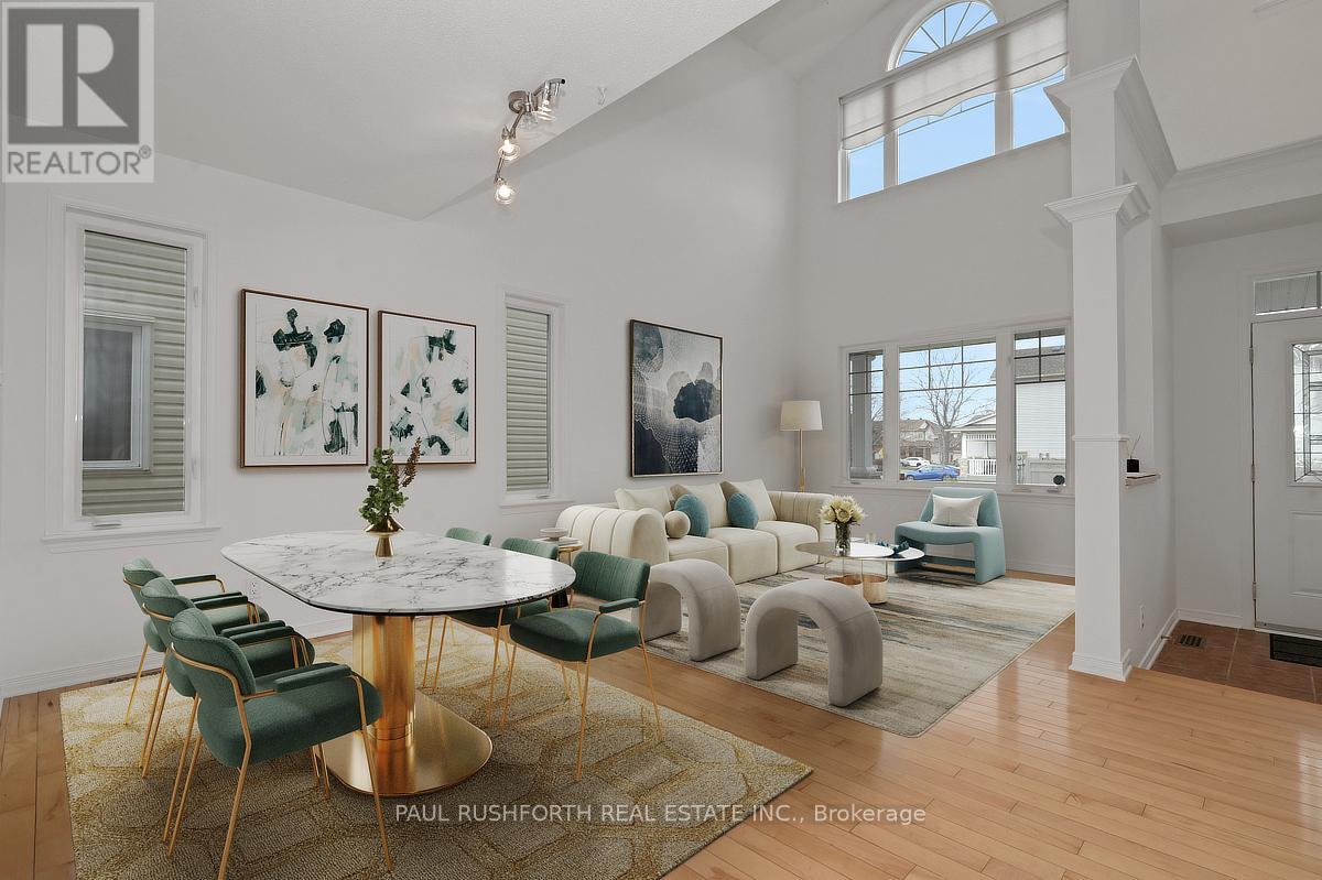 Discover this stunning 4 BEDROOM, 4 BATHROOM home in a highly sought-after Stittsville community, ideally located near parks, schools, shopping, and scenic trails. Step inside to an impressive OPEN TO ABOVE living room filled with natural light, soaring ceilings, and elegant hardwood flooring throughout. A stylish butler's station connects seamlessly to the gourmet kitchen, complete with granite countertops, stainless steel appliances, ample cabinetry, double sinks, and a large island with breakfast seating. Patio doors lead to a beautifully landscaped backyard featuring a spacious multi-level deck-perfect for entertaining. The inviting family room offers a cozy gas fireplace, creating the ideal space to relax. A convenient powder room and well-designed laundry area with custom storage complete the main level. Upstairs, a versatile loft provides the perfect home office or lounge space. The primary suite features a walk-in closet and a spa-like ensuite, complemented by two additional bedrooms and a full bathroom. The FULLY FINISHED BASEMENT is an entertainer's dream with a large recreation area, stone-accented fireplace, wet bar with wine fridge, and plush carpeting. A fourth bedroom with walk-in closet and adjacent full bathroom adds excellent flexibility for guests or extended family. Outside, enjoy a private, fully fenced yard with a landscaped setting and multi-level deck designed for outdoor living. A perfect blend of elegance, comfort, and functionality-this home is truly move-in ready. Some photos have been virtually staged. (id:44758)