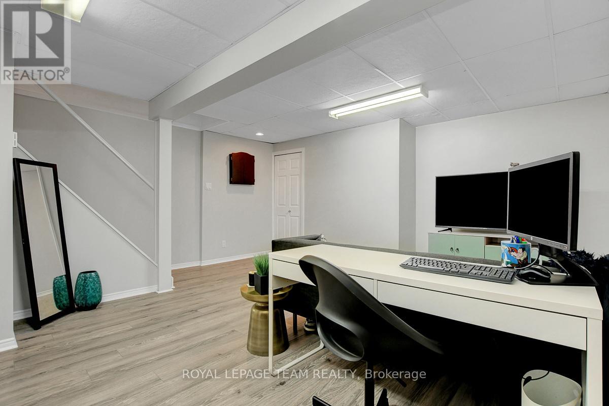 Tucked away at the end of a quiet cul-de-sac, this beautifully updated townhome offers comfort, style, and exceptional value for first-time buyers and investors alike. Thoughtfully refreshed throughout, the home features three spacious bedrooms and two bathrooms, including a bright and modern 4-piece bathroom (2022) and a beautifully updated kitchen (2026) designed to be the heart of the home.The kitchen opens effortlessly to the dining and living areas through a convenient pass-through, creating a warm and connected space for everyday living and entertaining. From the living room, step outside to your private, fully landscaped backyard, complete with an extended fence (2023) and direct access to a peaceful communal green space and walking path-perfect for morning coffee, evening strolls, or letting kids play nearby.Upstairs, generous bedrooms provide comfortable retreats, while new flooring on the upper and lower levels adds a fresh, modern feel throughout the home. The finished basement (2021) offers flexible bonus space currently set up as a home gym, but easily adaptable for a family room, office, or play area. Located just 10 minutes from Blair LRT Station, this home also offers the everyday convenience of your own parking space directly in front of the unit, maintained year-round by the condo corporation. A wonderful opportunity to enjoy a move-in-ready home in a peaceful, connected community. (id:44758)