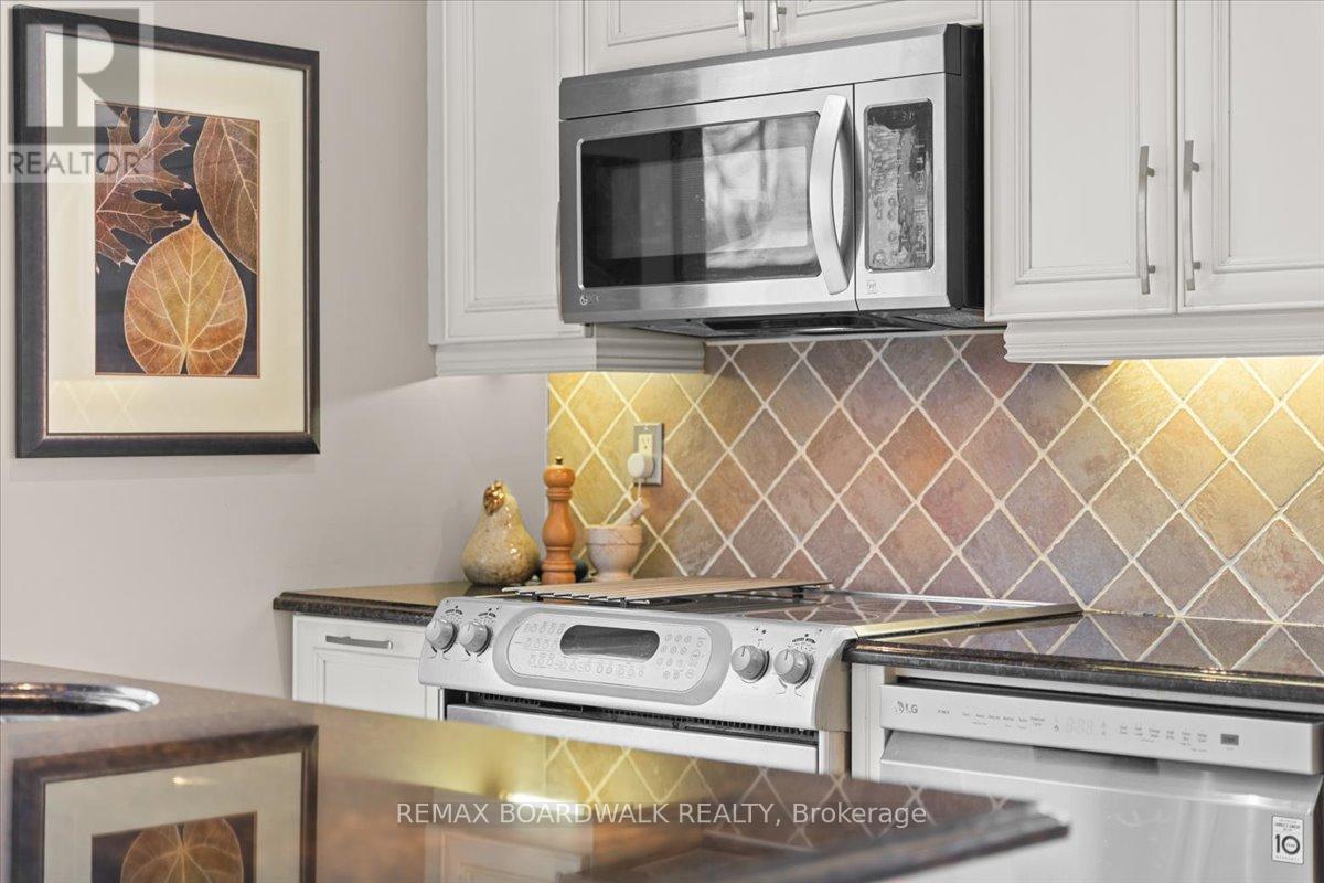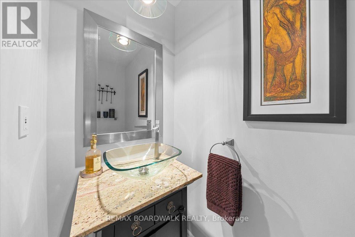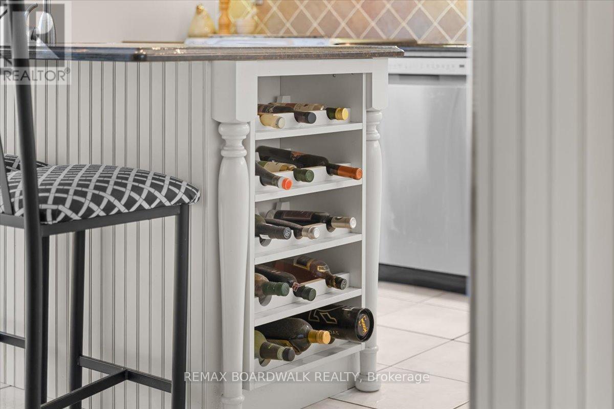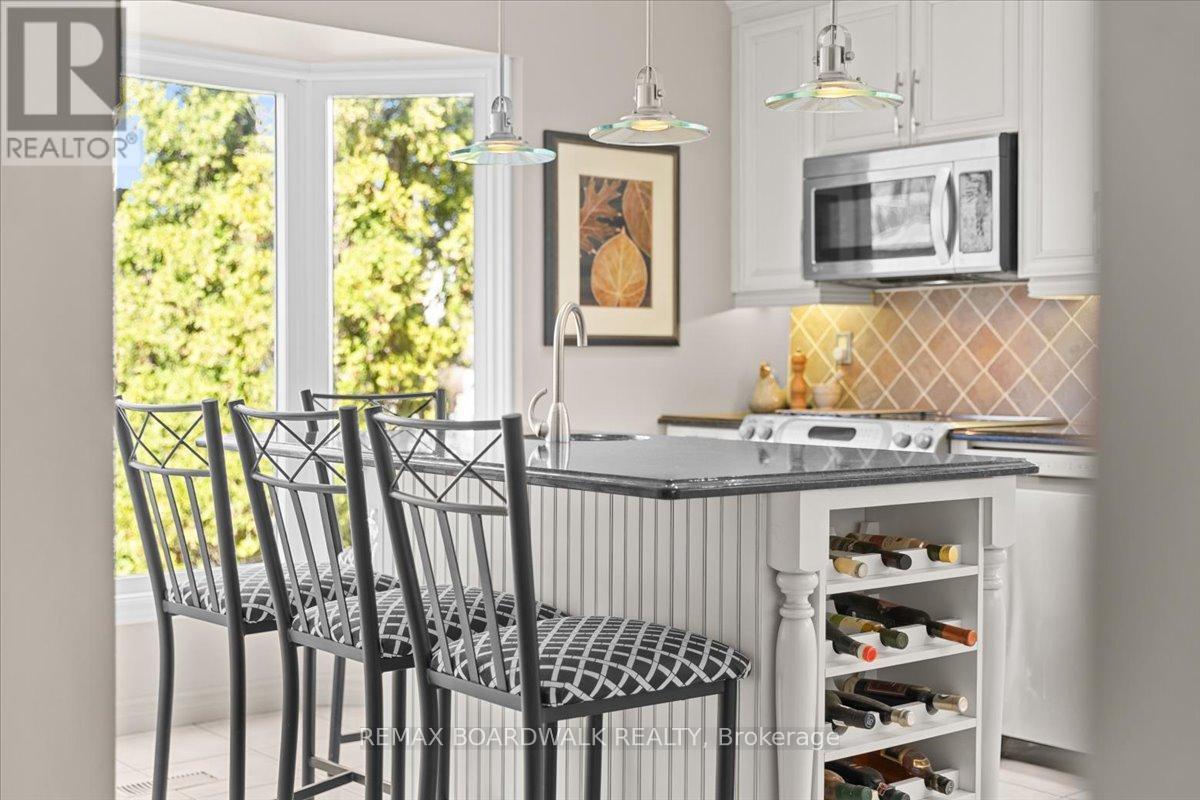 On a quiet street in Chapel Hill North, this 4-bedroom home offers a blend of traditional architecture & updates. The exterior presents w/an interlock driveway, garage door w/window inserts, shutters, & a front door w/full glass inlay & sidelights. The interior foyer w/ceramic tile flooring to site-finished hardwood, a Victorian-style staircase w/multi-tone wood finish & chair rail detailing. The living rm w/crown moulding, flat ceilings, & a window inlay w/California shutters. The dining rm is positioned w/a side window & pass-through access. The kitchen is central, featuring a centre island w/breakfast bar, granite countertops, a vegetable sink, bay window, 12" deep pantry, glass accents, backlighting, mouldings, ceramic tile backsplash, recessed sink beneath a greenhouse-style window, multiple drawer storage, integrated wine rack, & refrigerator w/ice & water service. The main floor family rm is anchored by a corner wood-burning fireplace & provides direct access to the rear yard through a 3 panel patio door. A back hall includes a two-piece powder rm, as well as a laundry area w/overhead cabinetry & secondary closet, plus side entrance access. The 2nd level features hardwood flooring on the landing, illuminated by a skylight & a linen closet. The primary bedroom includes a bay window, California shutters, crown moulding, high baseboards, & a walk-in closet. The 3-piece ensuite offers a moulded 2-person soaker tub w/European-style fixtures & granite-topped vanity. 3 additional bedrooms each provide full closet walls. The main bathroom has been updated w/a walk-in glass shower, tile finishes, & a granite vanity w/wave sink. A Hollywood staircase leads to the lower level, w/a recreation room w/horizontal window, walk-in pantry, workshop & a storage area complete w/soaker sink & built-in shelving. Fenced yard a two-tier deck, metal gazebo, storage shed, & mature trees. The garage provides inside entry for added convenience. 24 hour irrev on all offers. (id:44758)