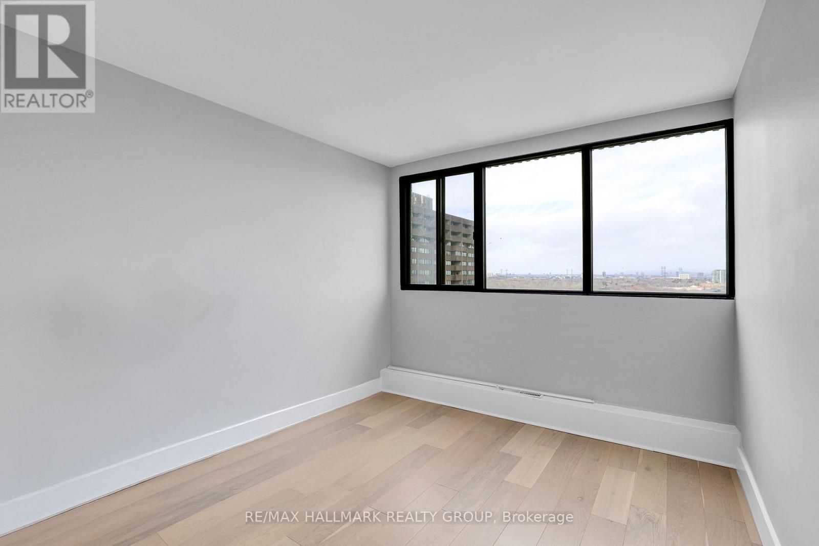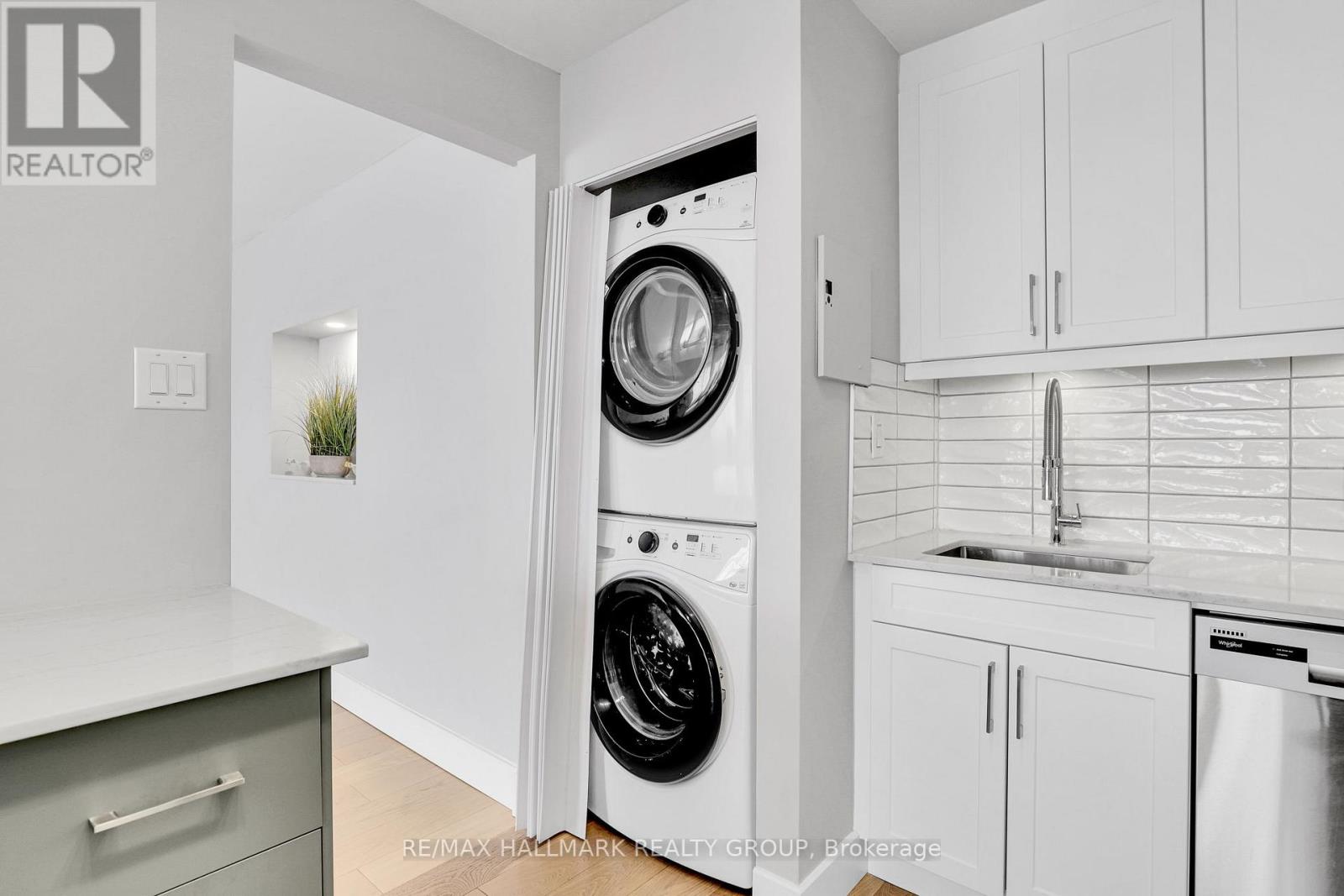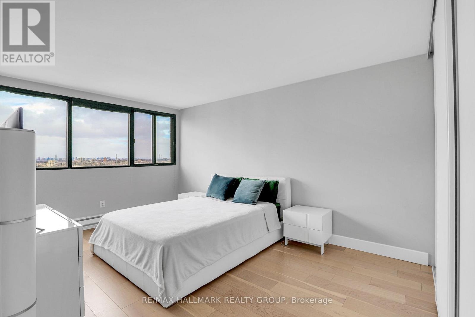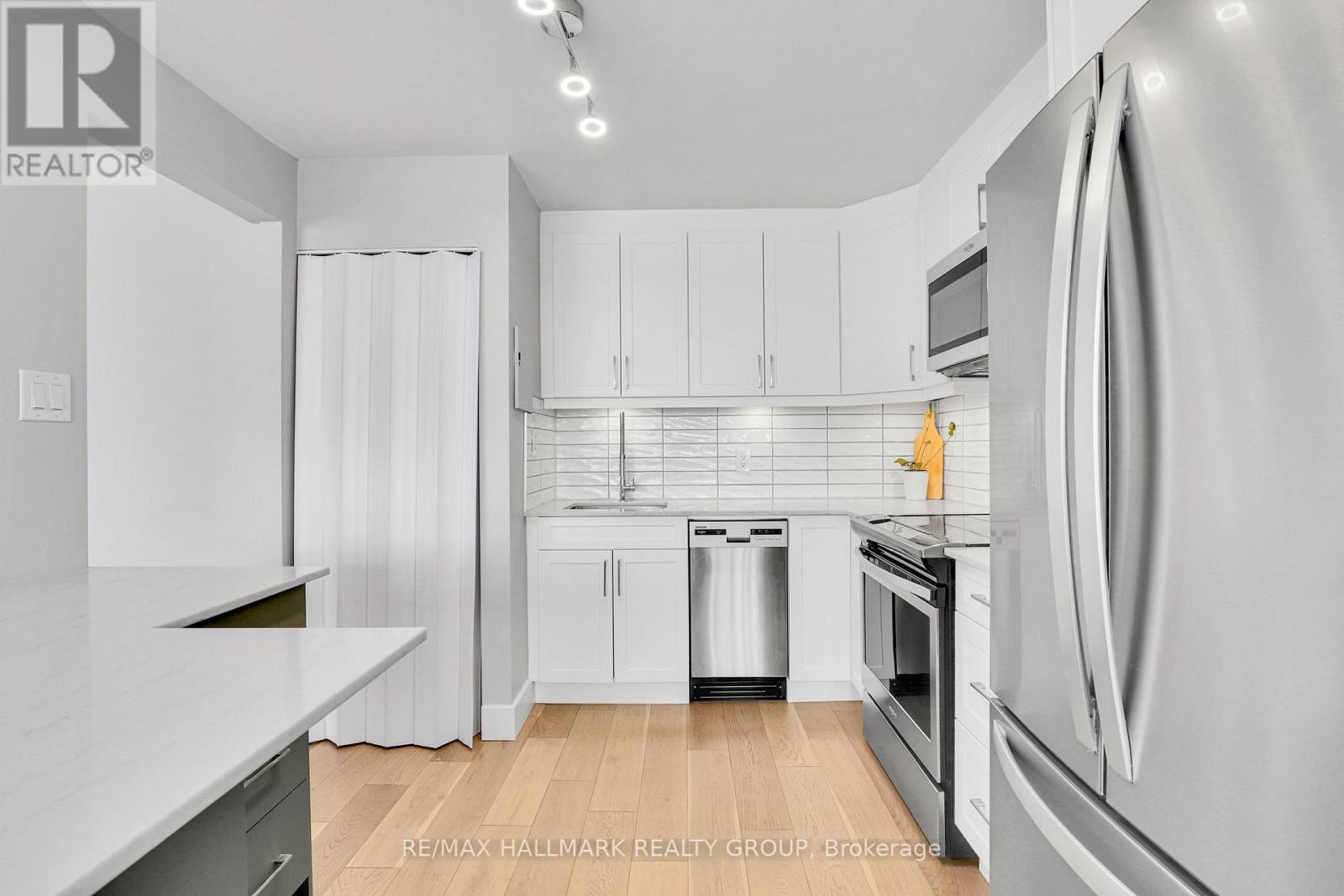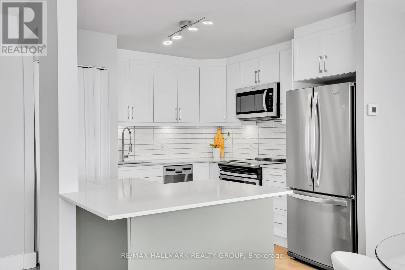 $976.88 每月Welcome to Unit 1604 at Strathmore Towers, 1285 Cahill Drive, a stunning 2-bedroom, 1-bathroom condo sitting high on the 16th floor with breathtaking panoramic views of the Ottawa skyline. This bright and spacious approximately 945 sq ft open concept unit offers exceptional value and modern living in Ottawa's south end, featuring engineered hardwood floors, freshly painted walls, and updated lighting throughout. The showstopper kitchen boasts white shaker cabinets, quartz countertops, a subway tile backsplash, a sage green island with built-in storage, and a full suite of stainless steel Whirlpool appliances. The full bathroom features a sage green vanity with quartz countertop and a fully tiled tub and shower with rain shower head. Large windows flood the space with natural light and showcase those incredible elevated city views from every room. Rare in-suite stacked washer and dryer and heat pump for year-round heating and cooling. One underground parking spot included. Residents also enjoy access to an outdoor pool, party room, and guest suites, with shopping, transit, and parks all close by. Updates include kitchen (2020), appliances (2020), bathroom (2020), engineered hardwood flooring (2020), heat pump (2020), fresh paint (2021), and lighting (2022). Condo fees of $976.88/month cover ALL utilities for completely worry-free living, making this the perfect opportunity for first-time buyers, downsizers, or investors. (id:44758)