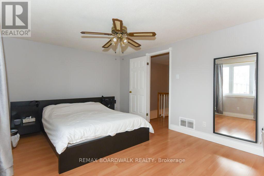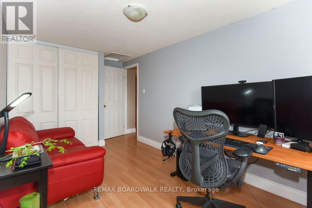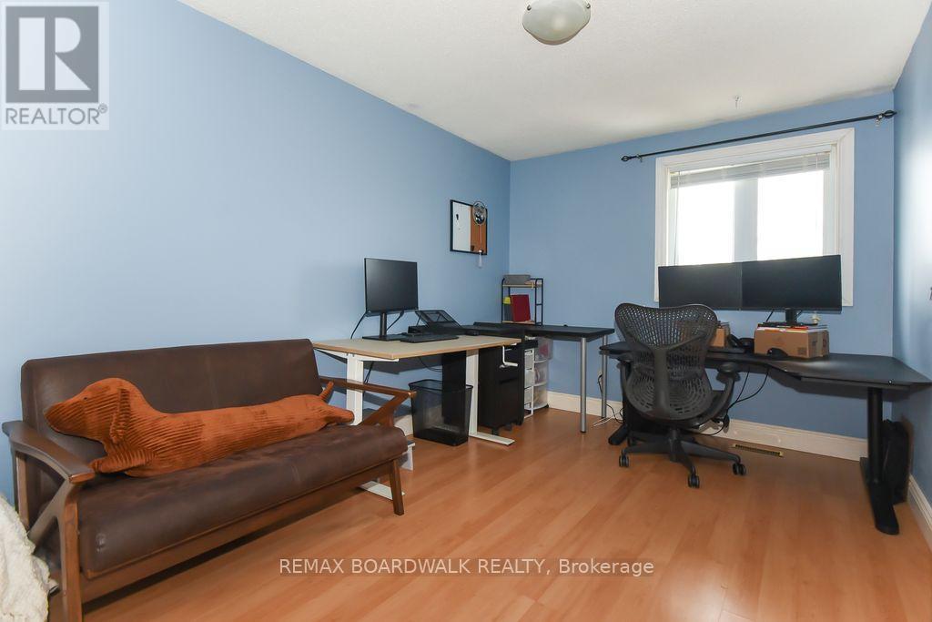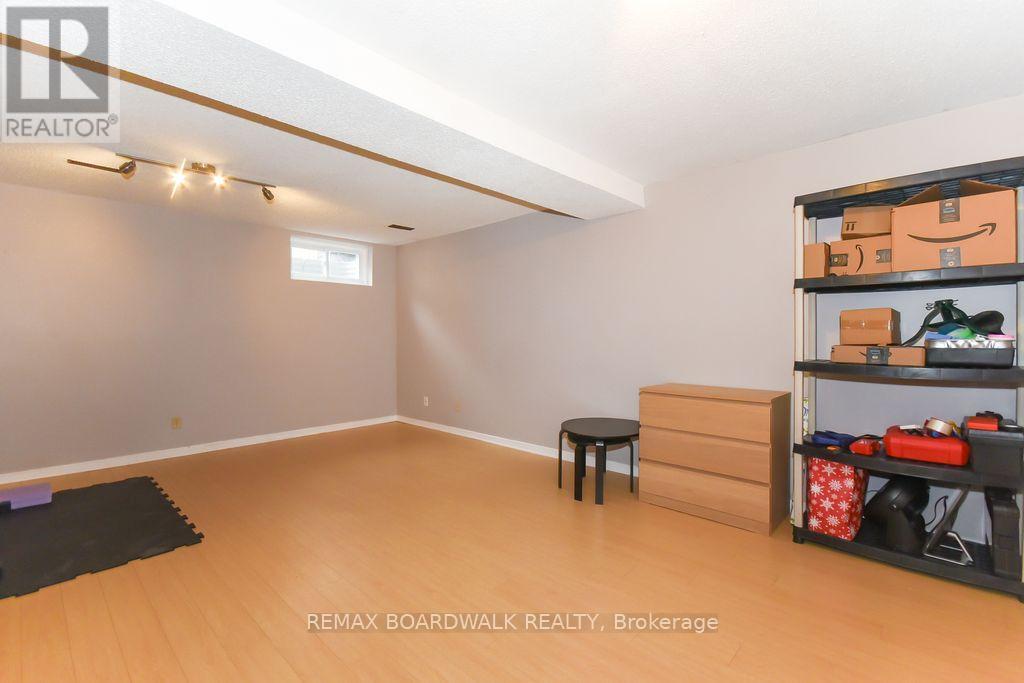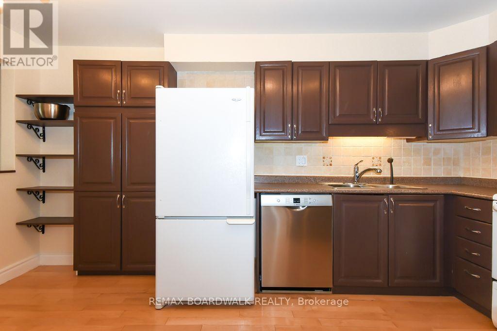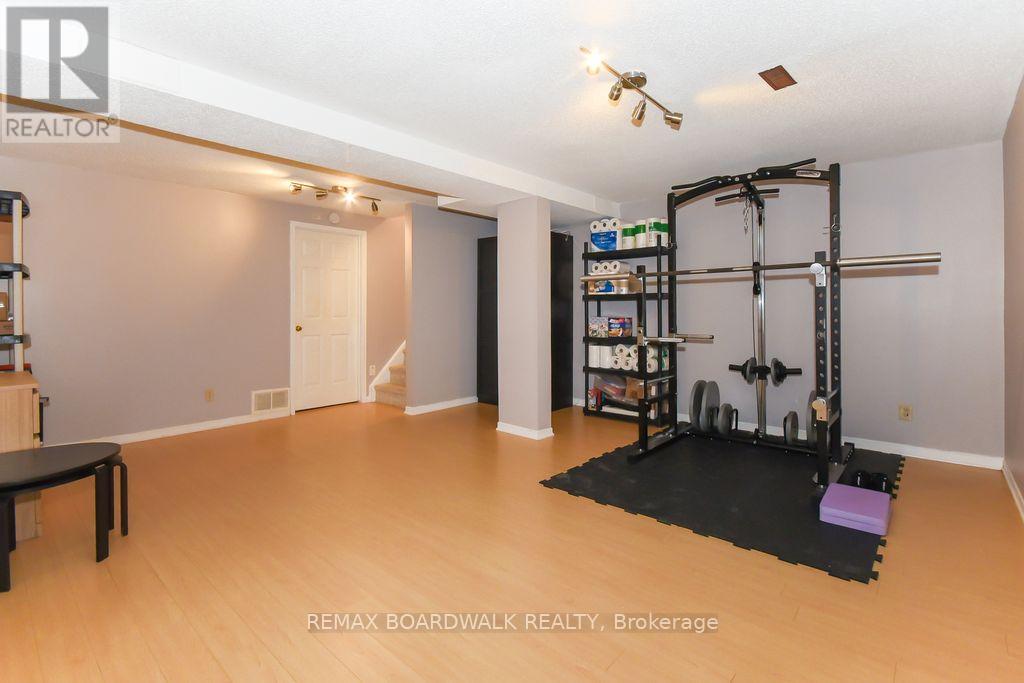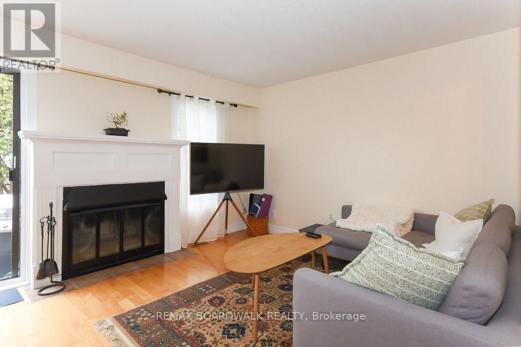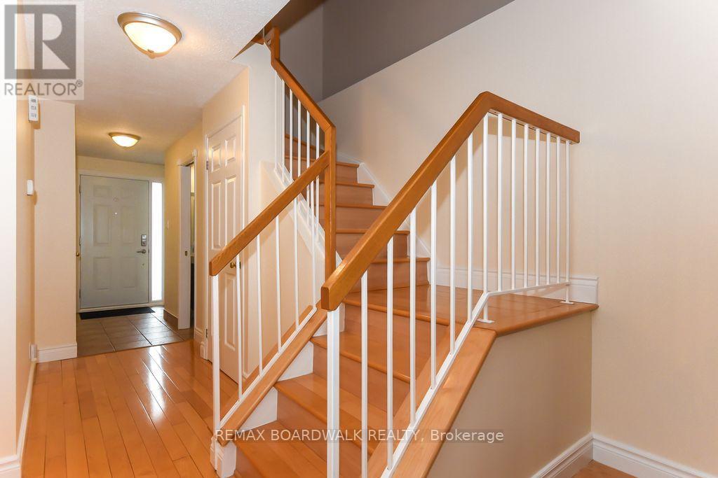 Location location! A walk to grocery shopping, bus service, library, restaurants, school, parks and much more. End unit with garage + 2 parking spaces at the door. Fenced back yard. Visitors parking. 5 appliances included. All rooms are generous in size. Wood burning fireplace. Beautiful 4 piece bathroom on the second level with soaking tub and separate shower. Lots of closet space. Finished rec room in lower level. Beautiful hardwood on main floor and stairs leading to second level. Laminate flooring on second level. As per form 244: 24 hours irrevocable on all submitted offers (no exceptions). Furnace and central air replaced in 2024. Please note that garage door is being replaced by Condo corporation this year. Main floor has just been professionally repainted in neutral tones. Just move into this beautiful place to call "home"! (id:44758)