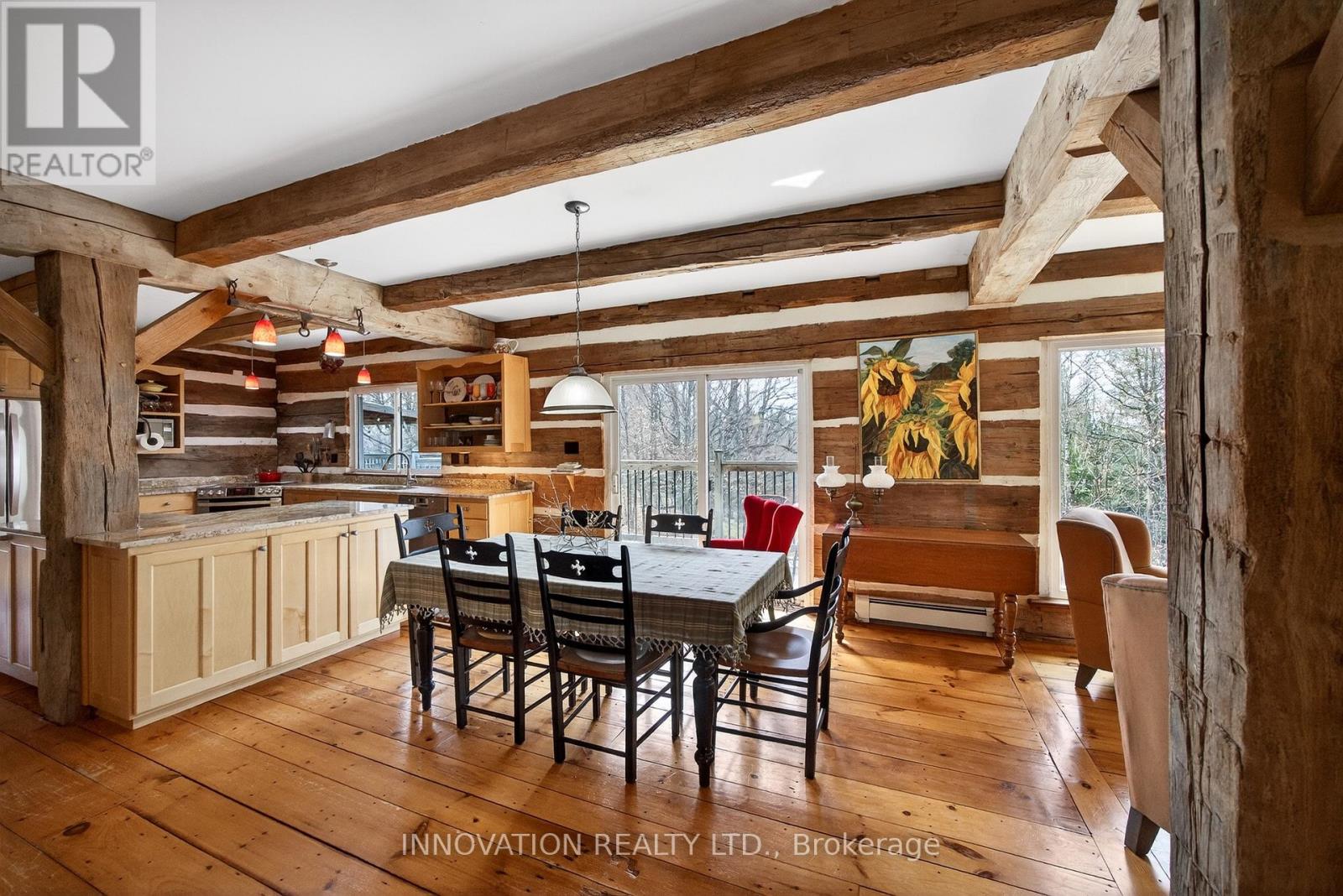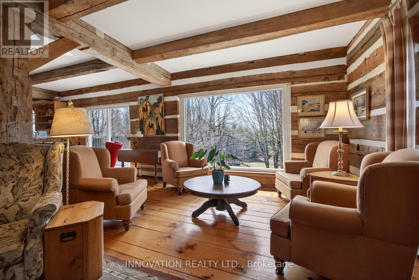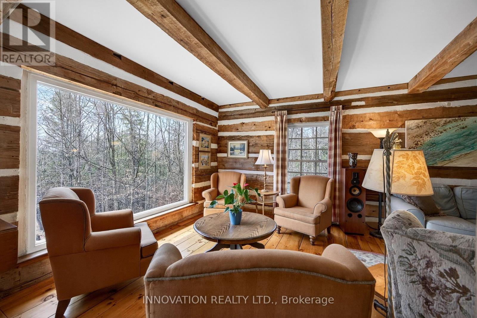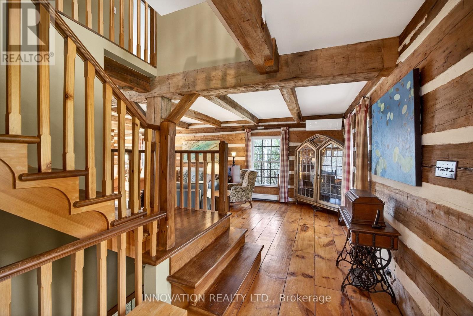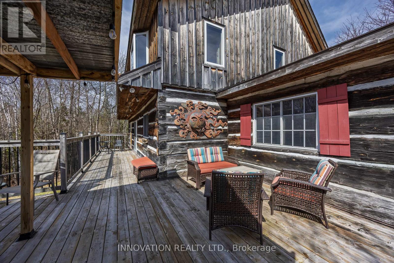 In a word-exceptional. Opportunities like this rarely come along. Nestled on 33.9 acres of mature forest and open fields near the charming Town of Almonte, just west of Ottawa, this beautiful 5-bedroom, 4-bathroom log home offers over 2,600 square feet of beautifully finished living space and a lifestyle that seamlessly blends comfort, craftsmanship, and nature. Built in 1998 using reclaimed hewn logs dating back to the 1850s, the home showcases timeless character with 12"x12" ash timber post-and-beam construction, wide plank flooring, and reclaimed pine barn board accents throughout.Thoughtfully designed for modern living, the spacious floor plan features a bright, open-concept layout with a well-appointed kitchen. Expansive south-facing windows flood the home with natural light overlooking the expansive deck, screened in porch while offering breathtaking views of the surrounding forest and wildlife.The fully finished walk-out basement provides excellent potential for an in-law suite, guest retreat, or teen getaway. Zoned heating and cooling systems ensure year-round comfort and energy efficiency, complemented by impressive insulation values.Outdoors, the property is nothing short of extraordinary. Explore over 3 km of private trails ideal for hiking, horseback riding, or cross-country skiing. Enjoy peaceful mornings watching deer and birds from your backyard, relax by the swimming pool, or make use of the charming timber frame barn & fenced sand riding ring. Perfectly positioned for both privacy and convenience, this remarkable estate is just a short drive to Kanata, Almonte, and Pakenham, with easy access to local recreation including nearby whitewater in Blakeney, multi-purpose trail and Burnt Lands Provincial Park. This is more than a home, it's a retreat, a lifestyle, and a rare opportunity to live with modern comfort in harmony with nature. (id:44758)
