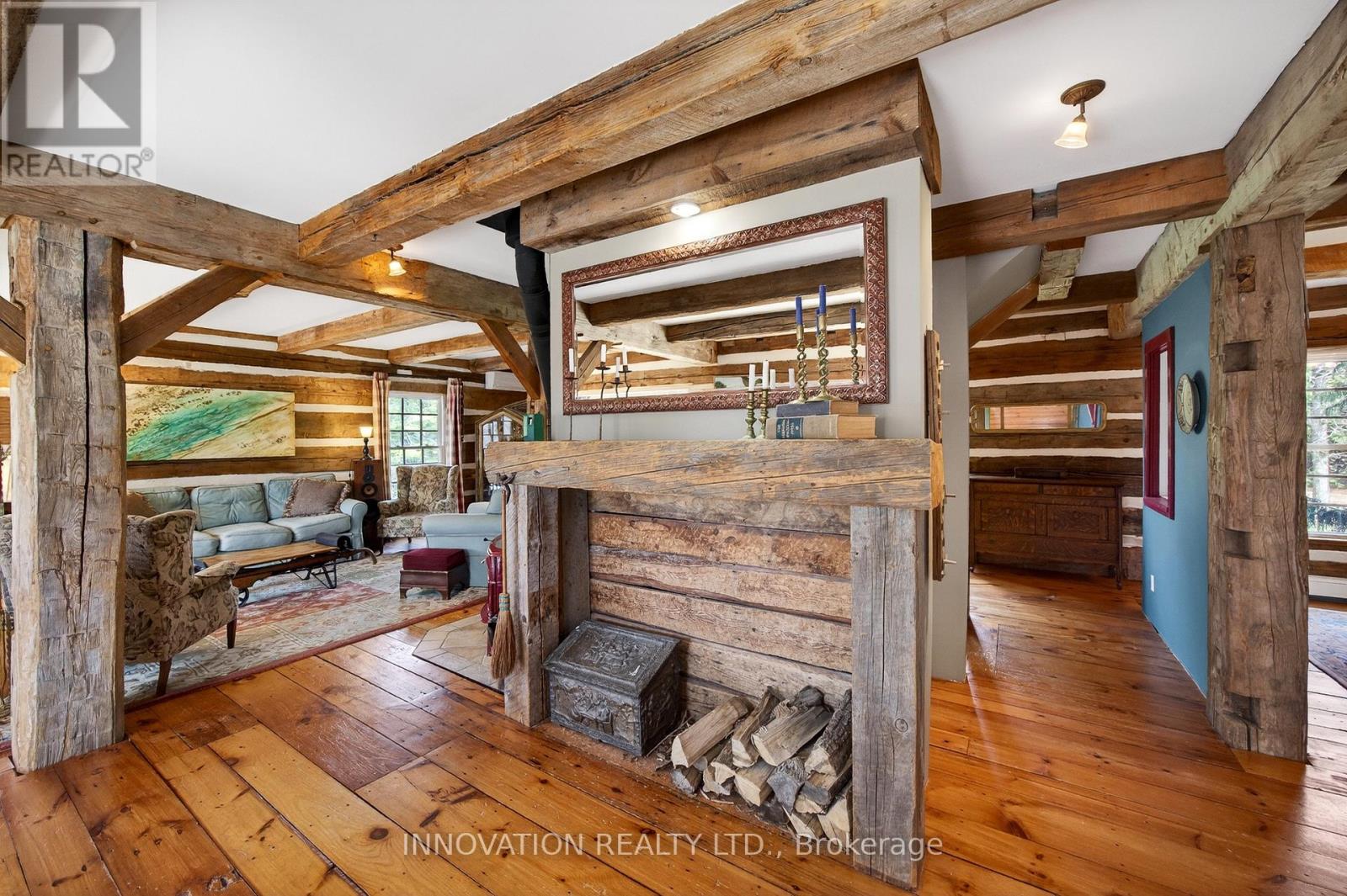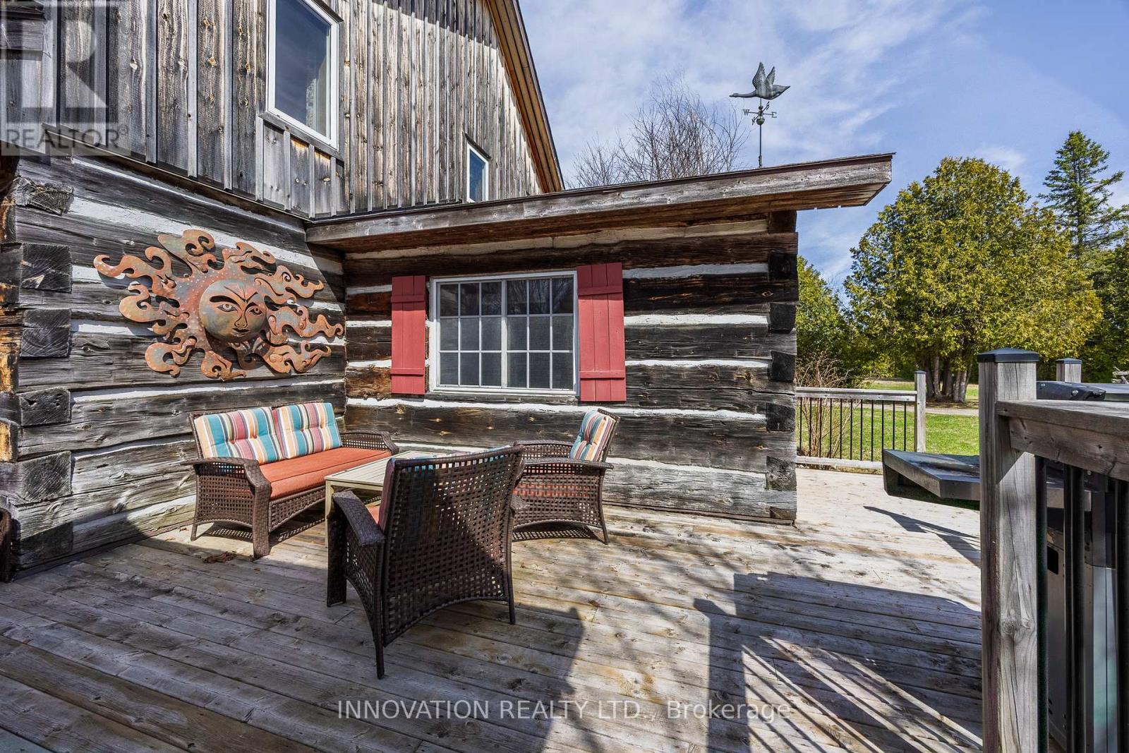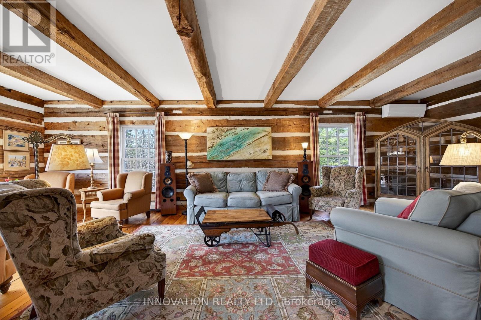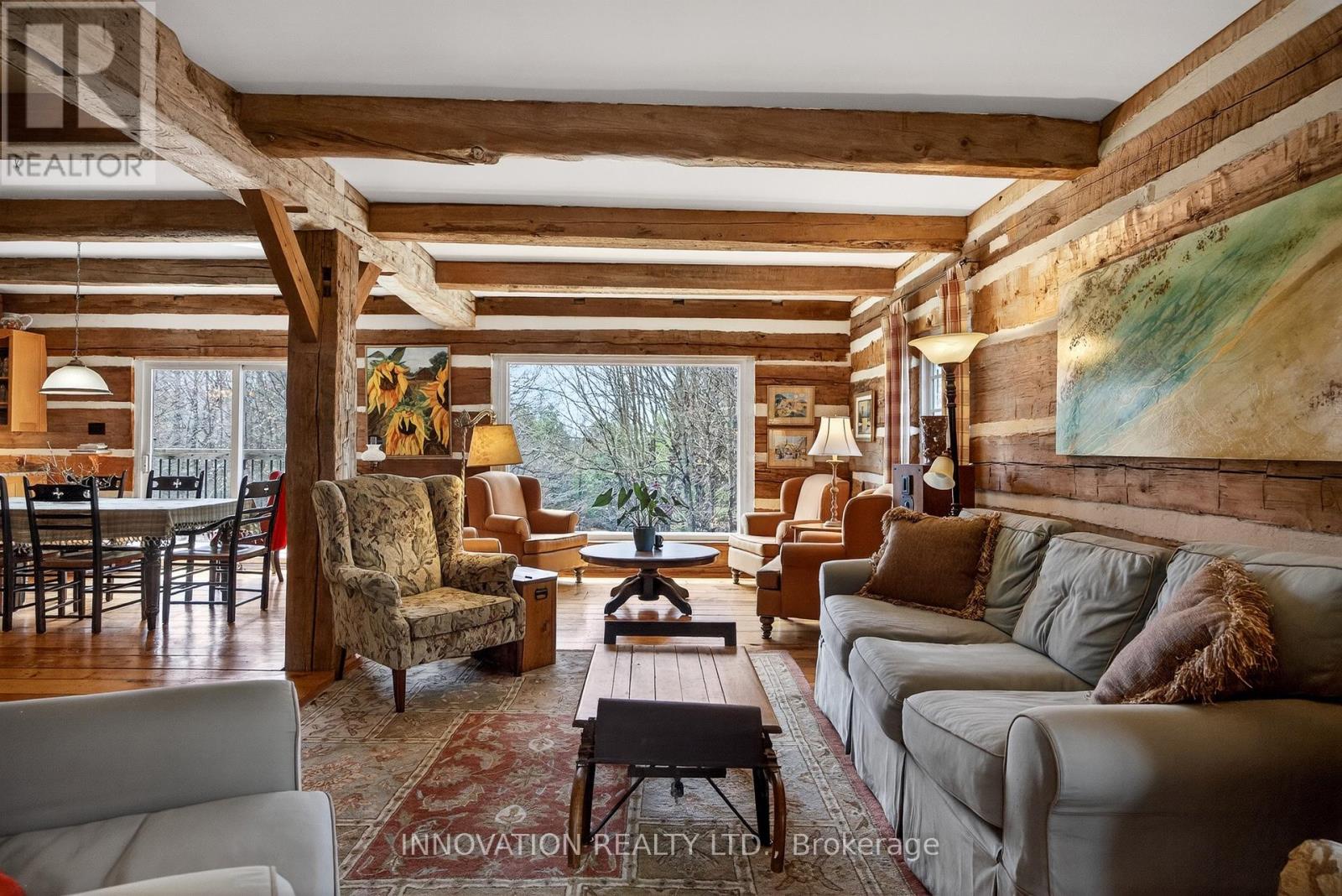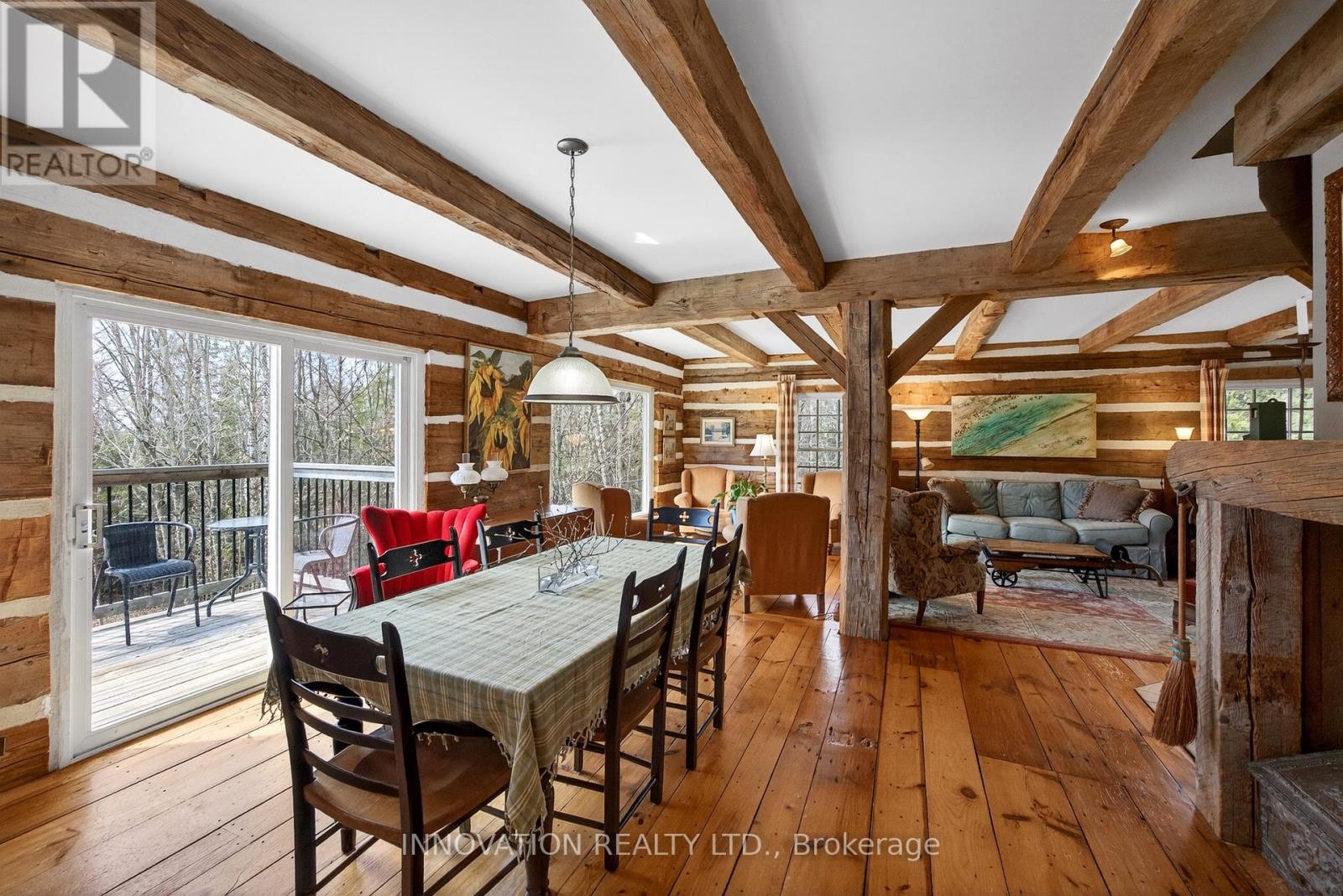 In a word-exceptional. Opportunities like this rarely come along. Nestled on 33.9 acres of mature forest and open fields near the charming Town of Almonte, just west of Ottawa, this beautiful 5-bedroom, 4-bathroom log home offers over 2,600 square feet of beautifully finished living space and a lifestyle that seamlessly blends comfort, craftsmanship, and nature. Built in 1998 using reclaimed hewn logs dating back to the 1850s, the home showcases timeless character with 12"x12" ash timber post-and-beam construction, wide plank flooring, and reclaimed pine barn board accents throughout.Thoughtfully designed for modern living, the spacious floor plan features a bright, open-concept layout with a well-appointed kitchen. Expansive south-facing windows flood the home with natural light overlooking the expansive deck, screened in porch while offering breathtaking views of the surrounding forest and wildlife.The fully finished walk-out basement provides excellent potential for an in-law suite, guest retreat, or teen getaway. Zoned heating and cooling systems ensure year-round comfort and energy efficiency, complemented by impressive insulation values.Outdoors, the property is nothing short of extraordinary. Explore over 3 km of private trails ideal for hiking, horseback riding, or cross-country skiing. Enjoy peaceful mornings watching deer and birds from your backyard, relax by the swimming pool, or make use of the charming timber frame barn & fenced sand riding ring. Perfectly positioned for both privacy and convenience, this remarkable estate is just a short drive to Kanata, Almonte, and Pakenham, with easy access to local recreation including nearby whitewater in Blakeney, multi-purpose trail and Burnt Lands Provincial Park. This is more than a home, it's a retreat, a lifestyle, and a rare opportunity to live with modern comfort in harmony with nature. (id:44758)