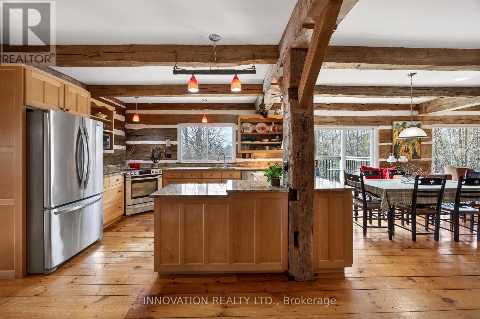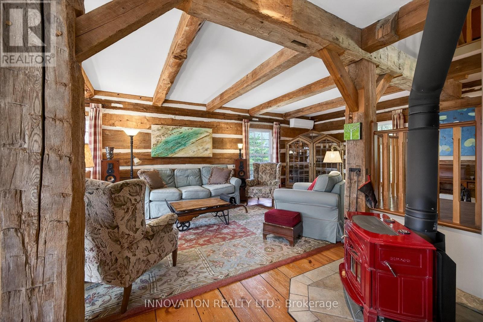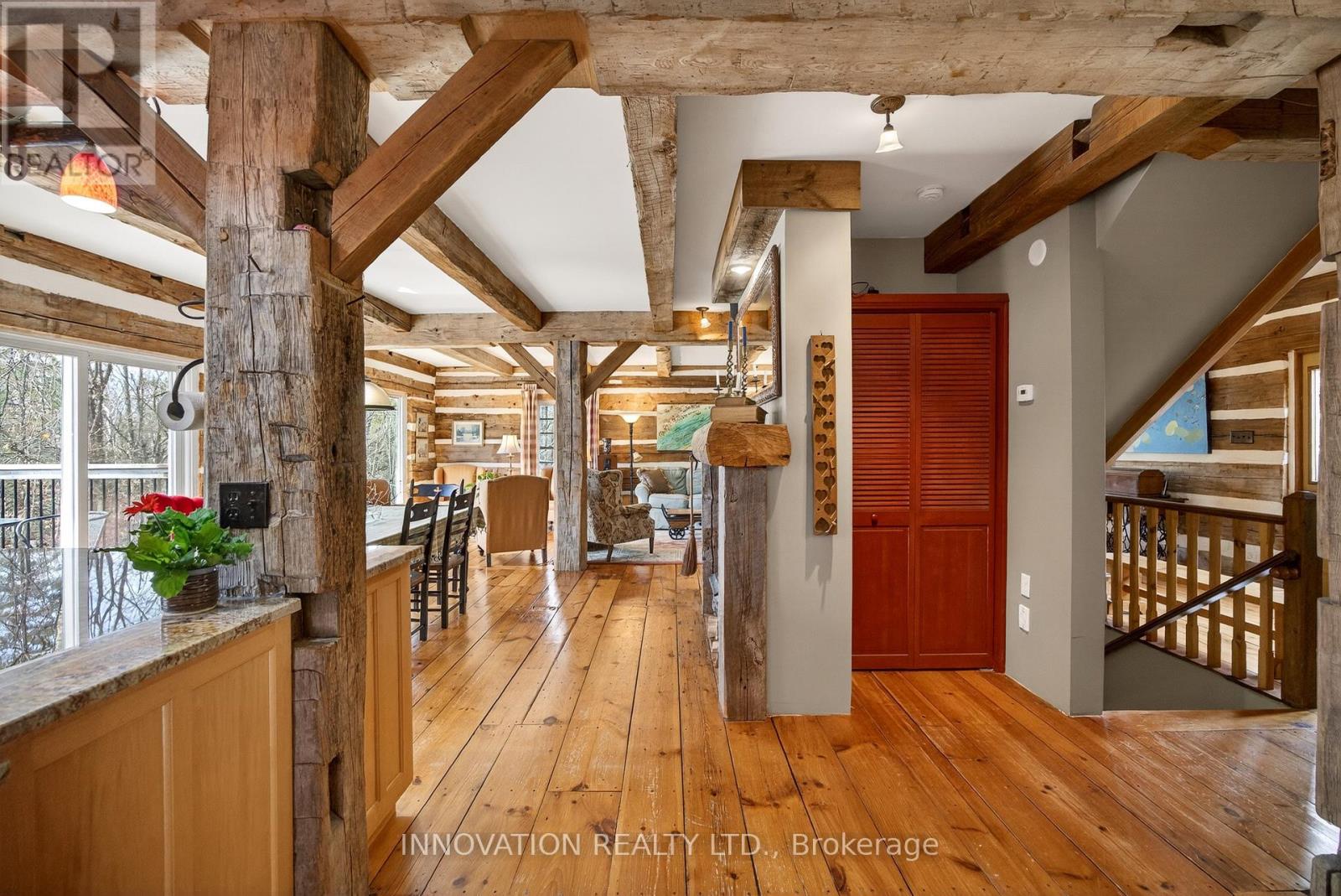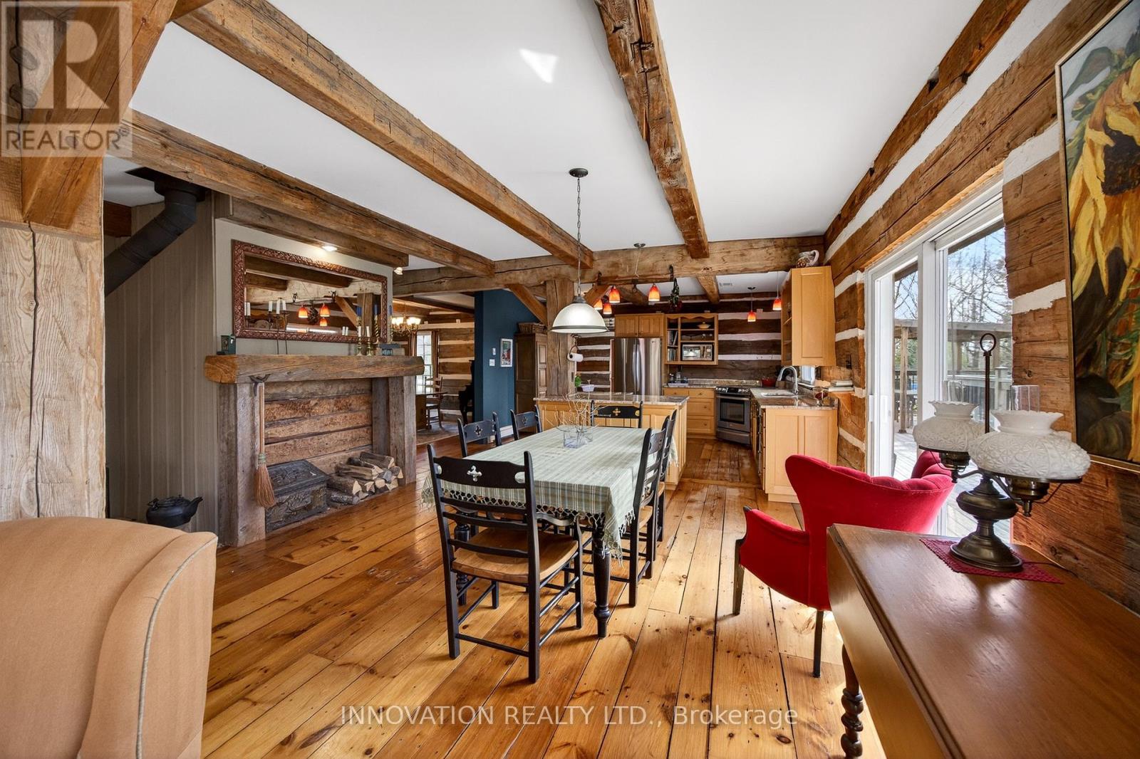 In a word-exceptional. Opportunities like this rarely come along. Nestled on 33.9 acres of mature forest and open fields near the charming Town of Almonte, just west of Ottawa, this beautiful 5-bedroom, 4-bathroom log home offers over 2,600 square feet of beautifully finished living space and a lifestyle that seamlessly blends comfort, craftsmanship, and nature. Built in 1998 using reclaimed hewn logs dating back to the 1850s, the home showcases timeless character with 12"x12" ash timber post-and-beam construction, wide plank flooring, and reclaimed pine barn board accents throughout.Thoughtfully designed for modern living, the spacious floor plan features a bright, open-concept layout with a well-appointed kitchen. Expansive south-facing windows flood the home with natural light overlooking the expansive deck, screened in porch while offering breathtaking views of the surrounding forest and wildlife.The fully finished walk-out basement provides excellent potential for an in-law suite, guest retreat, or teen getaway. Zoned heating and cooling systems ensure year-round comfort and energy efficiency, complemented by impressive insulation values.Outdoors, the property is nothing short of extraordinary. Explore over 3 km of private trails ideal for hiking, horseback riding, or cross-country skiing. Enjoy peaceful mornings watching deer and birds from your backyard, relax by the swimming pool, or make use of the charming timber frame barn & fenced sand riding ring. Perfectly positioned for both privacy and convenience, this remarkable estate is just a short drive to Kanata, Almonte, and Pakenham, with easy access to local recreation including nearby whitewater in Blakeney, multi-purpose trail and Burnt Lands Provincial Park. This is more than a home, it's a retreat, a lifestyle, and a rare opportunity to live with modern comfort in harmony with nature. (id:44758)