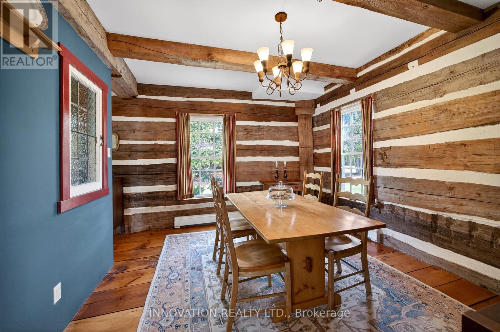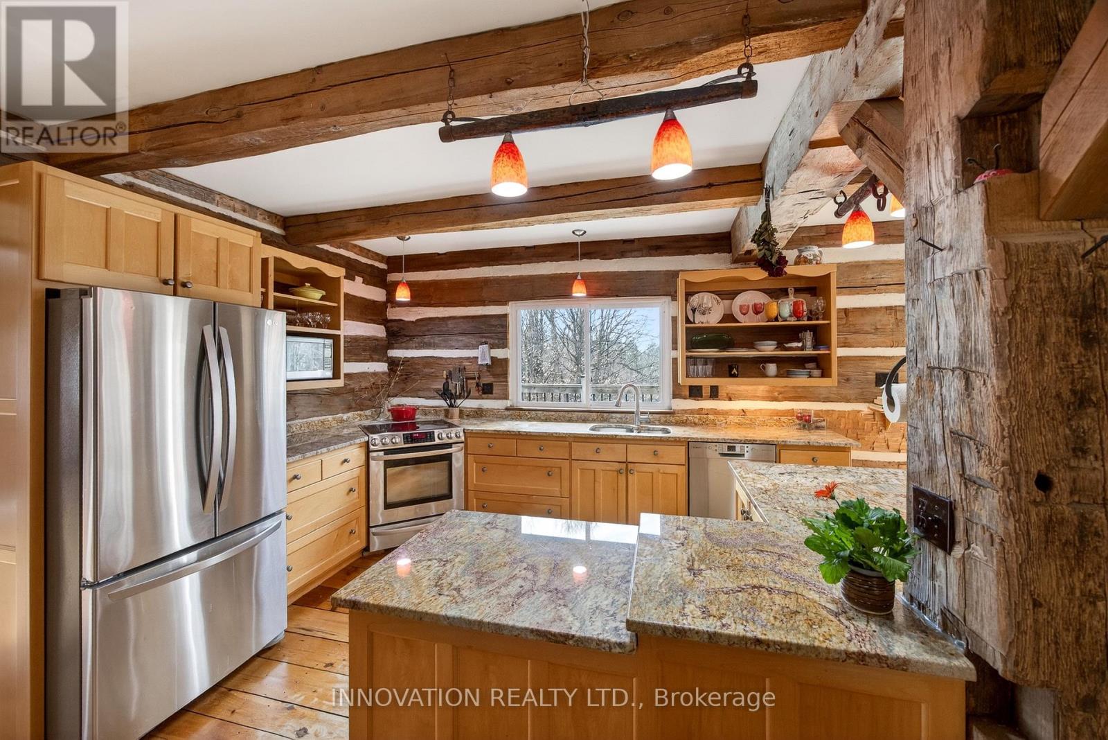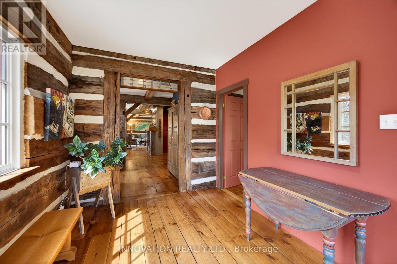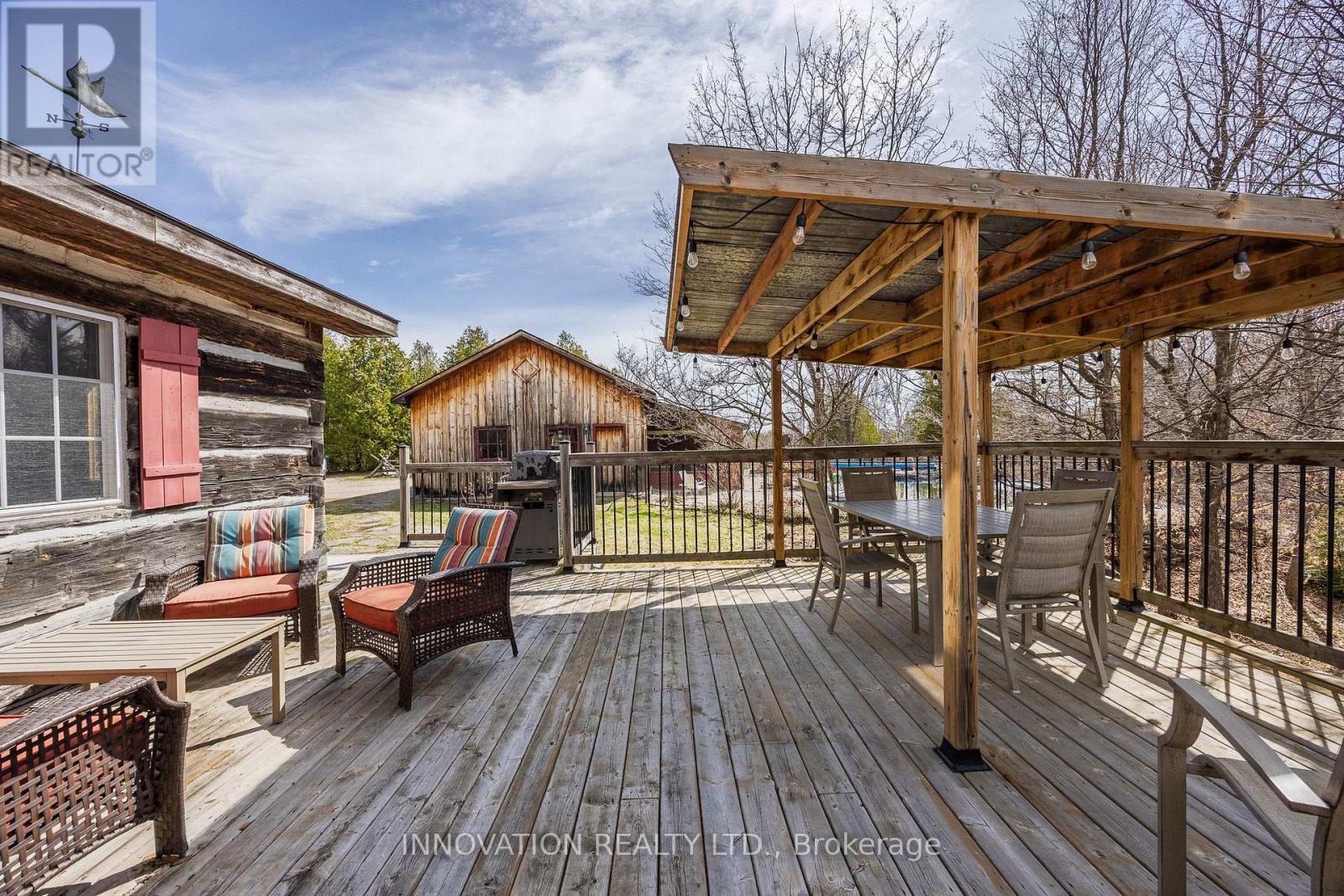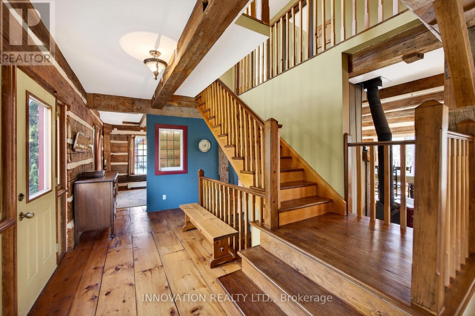 In a word-exceptional. Opportunities like this rarely come along. Nestled on 33.9 acres of mature forest and open fields near the charming Town of Almonte, just west of Ottawa, this beautiful 5-bedroom, 4-bathroom log home offers over 2,600 square feet of beautifully finished living space and a lifestyle that seamlessly blends comfort, craftsmanship, and nature. Built in 1998 using reclaimed hewn logs dating back to the 1850s, the home showcases timeless character with 12"x12" ash timber post-and-beam construction, wide plank flooring, and reclaimed pine barn board accents throughout.Thoughtfully designed for modern living, the spacious floor plan features a bright, open-concept layout with a well-appointed kitchen. Expansive south-facing windows flood the home with natural light overlooking the expansive deck, screened in porch while offering breathtaking views of the surrounding forest and wildlife.The fully finished walk-out basement provides excellent potential for an in-law suite, guest retreat, or teen getaway. Zoned heating and cooling systems ensure year-round comfort and energy efficiency, complemented by impressive insulation values.Outdoors, the property is nothing short of extraordinary. Explore over 3 km of private trails ideal for hiking, horseback riding, or cross-country skiing. Enjoy peaceful mornings watching deer and birds from your backyard, relax by the swimming pool, or make use of the charming timber frame barn & fenced sand riding ring. Perfectly positioned for both privacy and convenience, this remarkable estate is just a short drive to Kanata, Almonte, and Pakenham, with easy access to local recreation including nearby whitewater in Blakeney, multi-purpose trail and Burnt Lands Provincial Park. This is more than a home, it's a retreat, a lifestyle, and a rare opportunity to live with modern comfort in harmony with nature. (id:44758)