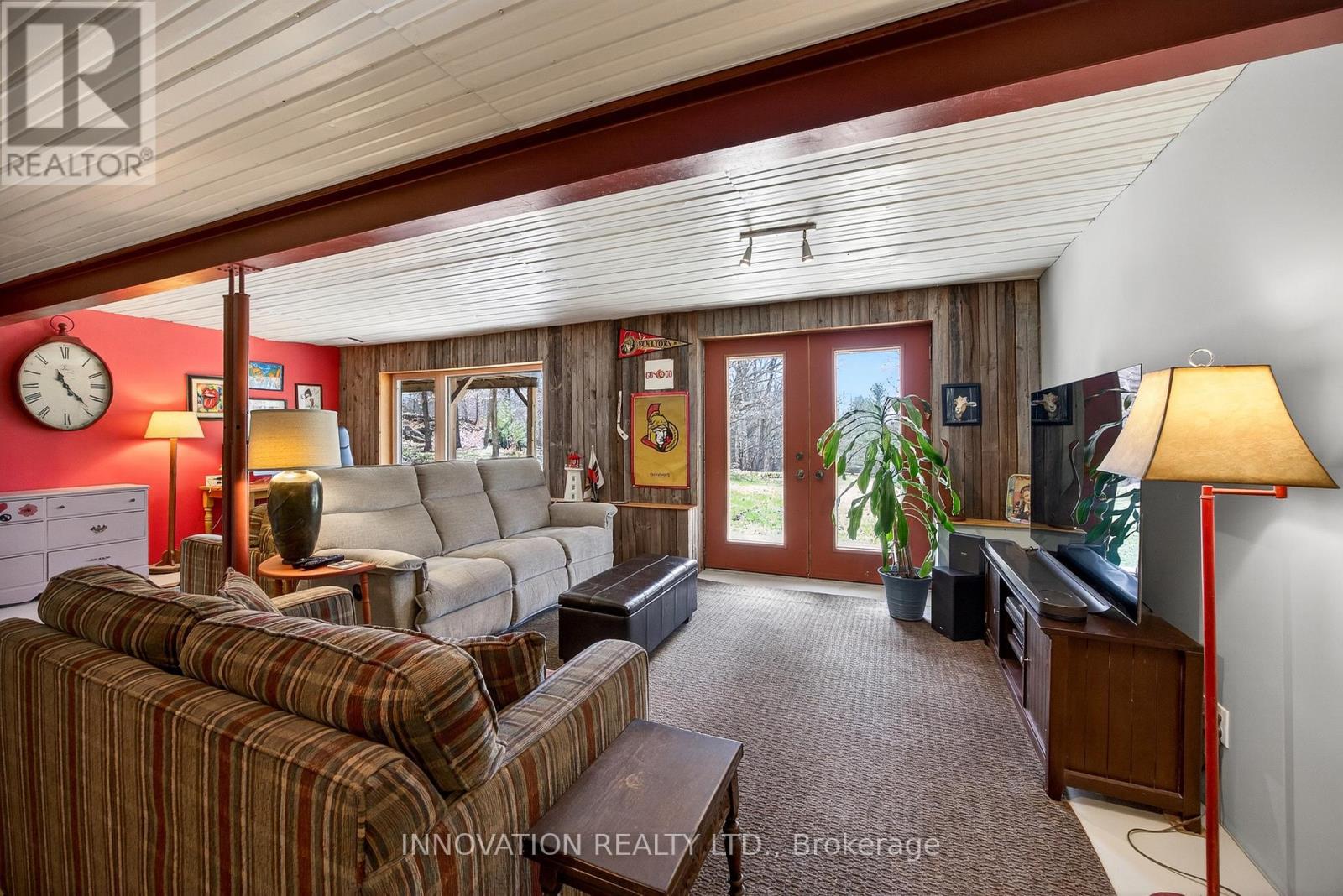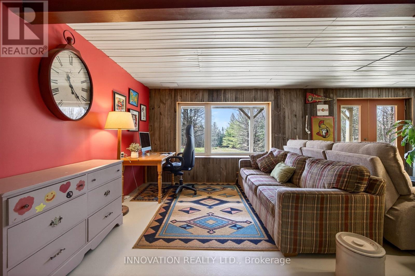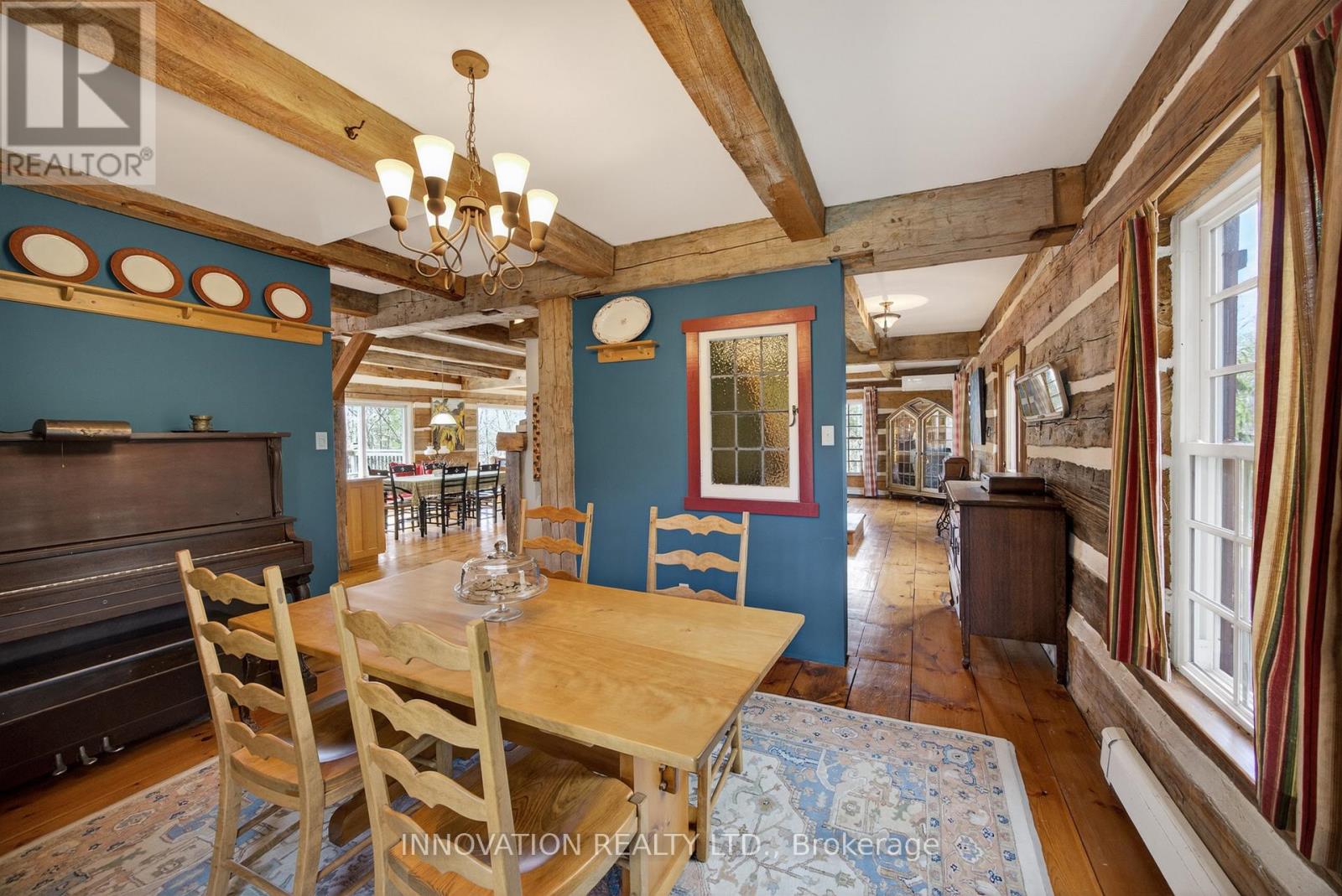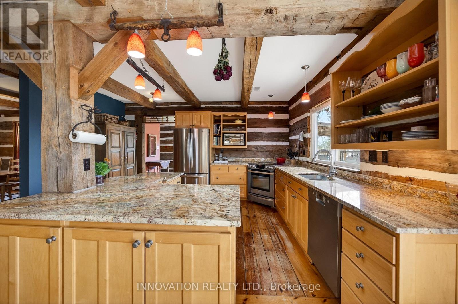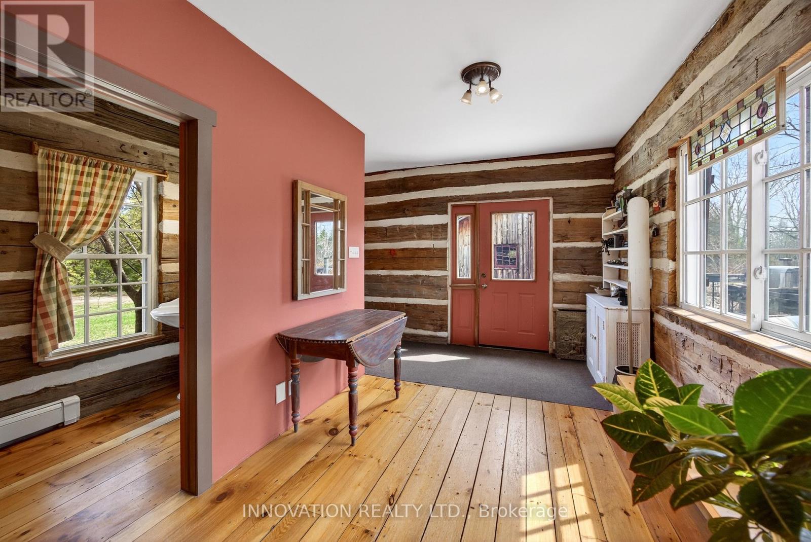 In a word-exceptional. Opportunities like this rarely come along. Nestled on 33.9 acres of mature forest and open fields near the charming Town of Almonte, just west of Ottawa, this beautiful 5-bedroom, 4-bathroom log home offers over 2,600 square feet of beautifully finished living space and a lifestyle that seamlessly blends comfort, craftsmanship, and nature. Built in 1998 using reclaimed hewn logs dating back to the 1850s, the home showcases timeless character with 12"x12" ash timber post-and-beam construction, wide plank flooring, and reclaimed pine barn board accents throughout.Thoughtfully designed for modern living, the spacious floor plan features a bright, open-concept layout with a well-appointed kitchen. Expansive south-facing windows flood the home with natural light overlooking the expansive deck, screened in porch while offering breathtaking views of the surrounding forest and wildlife.The fully finished walk-out basement provides excellent potential for an in-law suite, guest retreat, or teen getaway. Zoned heating and cooling systems ensure year-round comfort and energy efficiency, complemented by impressive insulation values.Outdoors, the property is nothing short of extraordinary. Explore over 3 km of private trails ideal for hiking, horseback riding, or cross-country skiing. Enjoy peaceful mornings watching deer and birds from your backyard, relax by the swimming pool, or make use of the charming timber frame barn & fenced sand riding ring. Perfectly positioned for both privacy and convenience, this remarkable estate is just a short drive to Kanata, Almonte, and Pakenham, with easy access to local recreation including nearby whitewater in Blakeney, multi-purpose trail and Burnt Lands Provincial Park. This is more than a home, it's a retreat, a lifestyle, and a rare opportunity to live with modern comfort in harmony with nature. (id:44758)