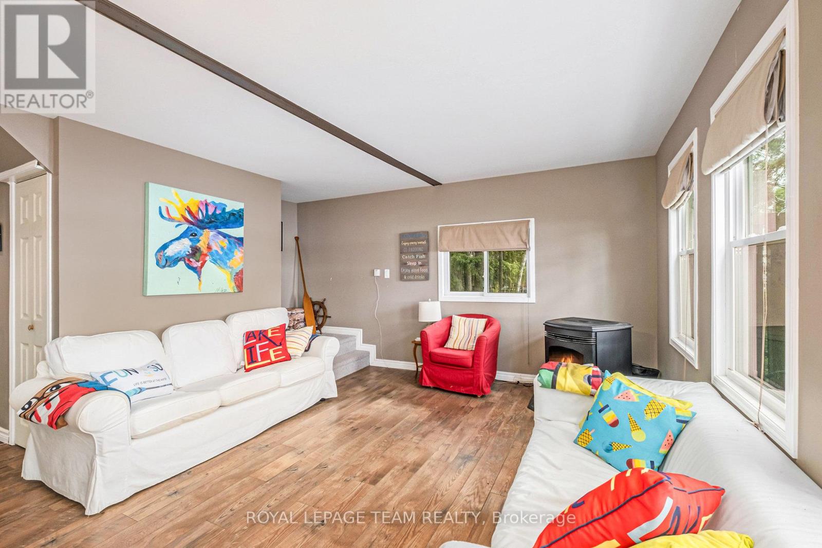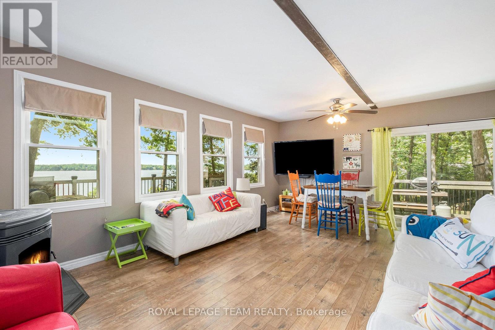 Spectacular water views on sought-after Otter Lake! Experience the best of lakeside living in this charming retreat. Perched perfectly, its full western exposure captures stunning sunset views. This property invites you to soak up nature from the comfort of an expansive deck overlooking pristine Otter Lake.. Enjoy lakeside living on your oversized dock, complete with built in kayak, SUP or canoe storage. Perfect for summer fun by day, or star gazing at night. This property provides deep water for weed free swimming, fishing and boating right off the dock. Inside, you'll find a bright, inviting living room framed by picture windows, offering breathtaking water vistas year-round. With 3 comfortable bedrooms, and 1.5 baths, this home is ideal for family living or a weekend getaway. Spacious main floor bedroom features direct access to the outdoors. A WETT-certified pellet stove ensures cozy nights, while the oversized garage provides ample space for vehicles, storage, or hobbies. Guests will love the charming log bunkie, offering a private and rustic escape. Recent updates include new roof shingles (2023), giving you peace of mind for years to come. Road is plowed in the winter when required. Whether you're looking for a permanent residence or a lakeside retreat, this property delivers the perfect blend of comfort, charm, and outdoor beauty. (id:44758)