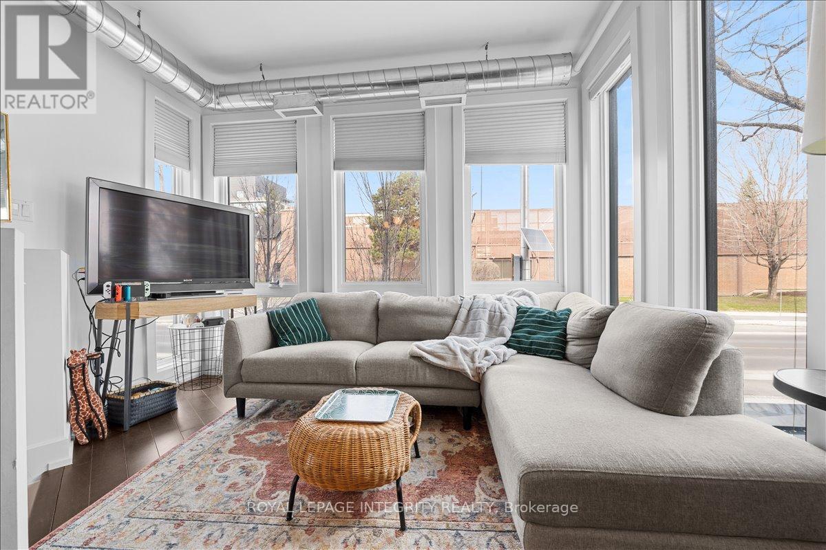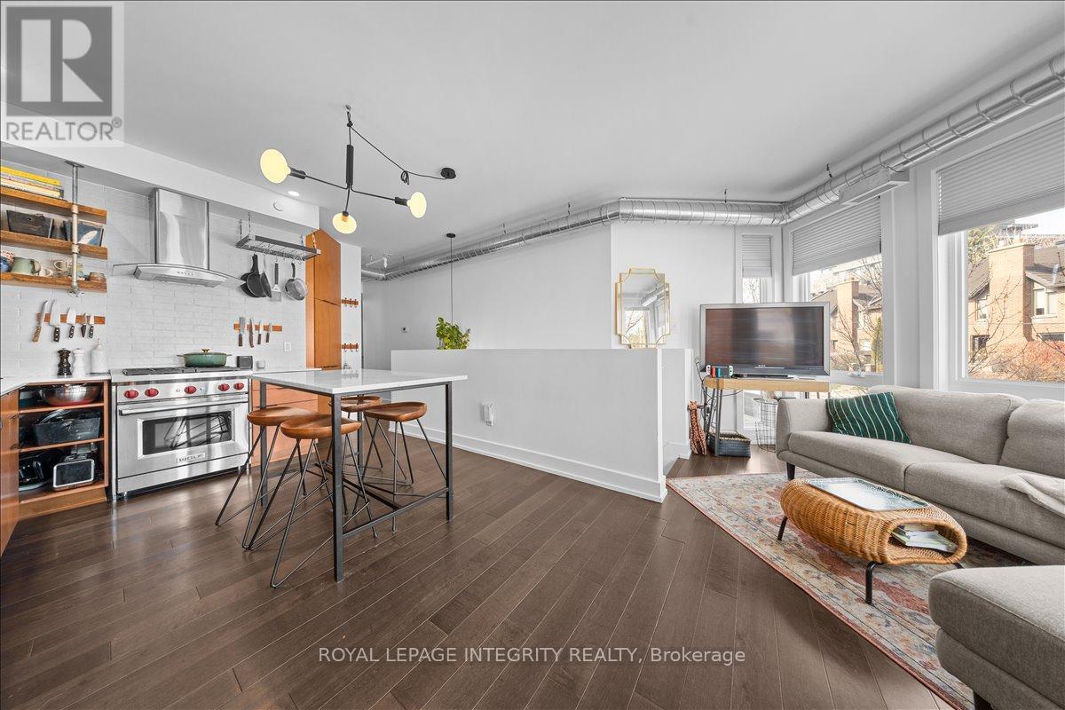 Welcome to 150 Greenfield Avenue, Unit 204, located in a sought-after, centrally located neighbourhood just steps from the Rideau Canal, Elgin Street, the University of Ottawa and Lansdowne. This beautifully upgraded, light-filled 2-bedroom, 2-bathroom, 2-storey condo is tucked away in a true hidden gem of a community. Built in 2018, this stylish home offers a thoughtfully designed layout with chic industrial elements, beautiful engineered hardwood floors and wall-to-wall windows that flood the living space with natural light. Step into the welcoming foyer before making your way into the open-concept living space. The eat-in kitchen is a standout, featuring quartz countertops, a Wolf gas range, high-end stainless steel appliances, custom Muskoka cabinetry, open shelving, floor-to-ceiling tile, and a built-in wine fridge, all overlooking the sun-filled living room. The main level also includes a generously sized bedroom and a stunning marble-tiled three-piece bathroom with a custom Muskoka vanity and quartz counters. On the lower level, you will find the spacious primary bedroom with a walk-in closet, a spa-like ensuite also with high-end custom finishes, a bonus nook, and an oversized laundry closet. Enjoy the rooftop terrace with BBQ area and stunning 360-degree views of the city, including the Parliament Buildings. The condo is pet-friendly and includes owned bicycle storage. This unbeatable location offers a bus stop right at your door while being within walking distance to parks, the Rideau Canal and Rideau River pathways, the University of Ottawa, Elgin Street, the Glebe, Centretown, the Market, LRT, and scenic bike paths. It also provides quick access to Highway 417 for an easy commute and is close to local favourites such as Main Street Farmer's Market, Jfuse Restaurant, Tartelette Bakery, Nu Grocery and more. This is more than a home, it is a lifestyle! Come have a look today! (id:44758)
