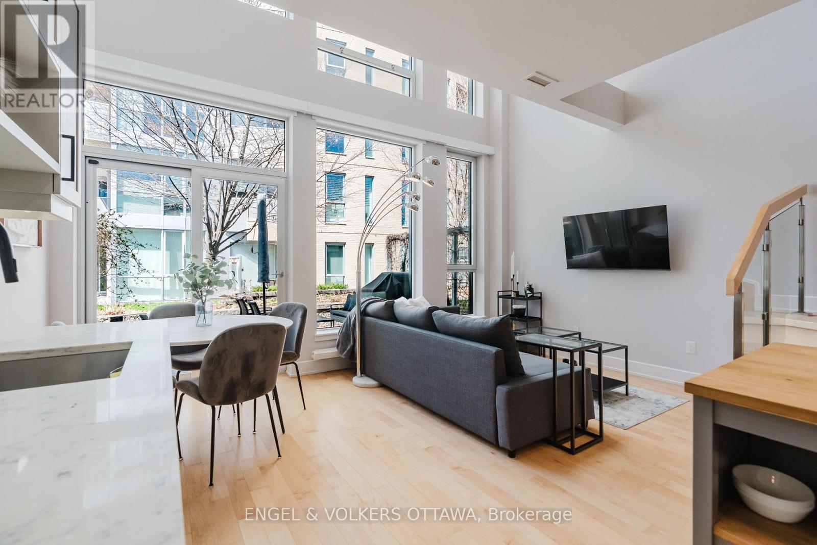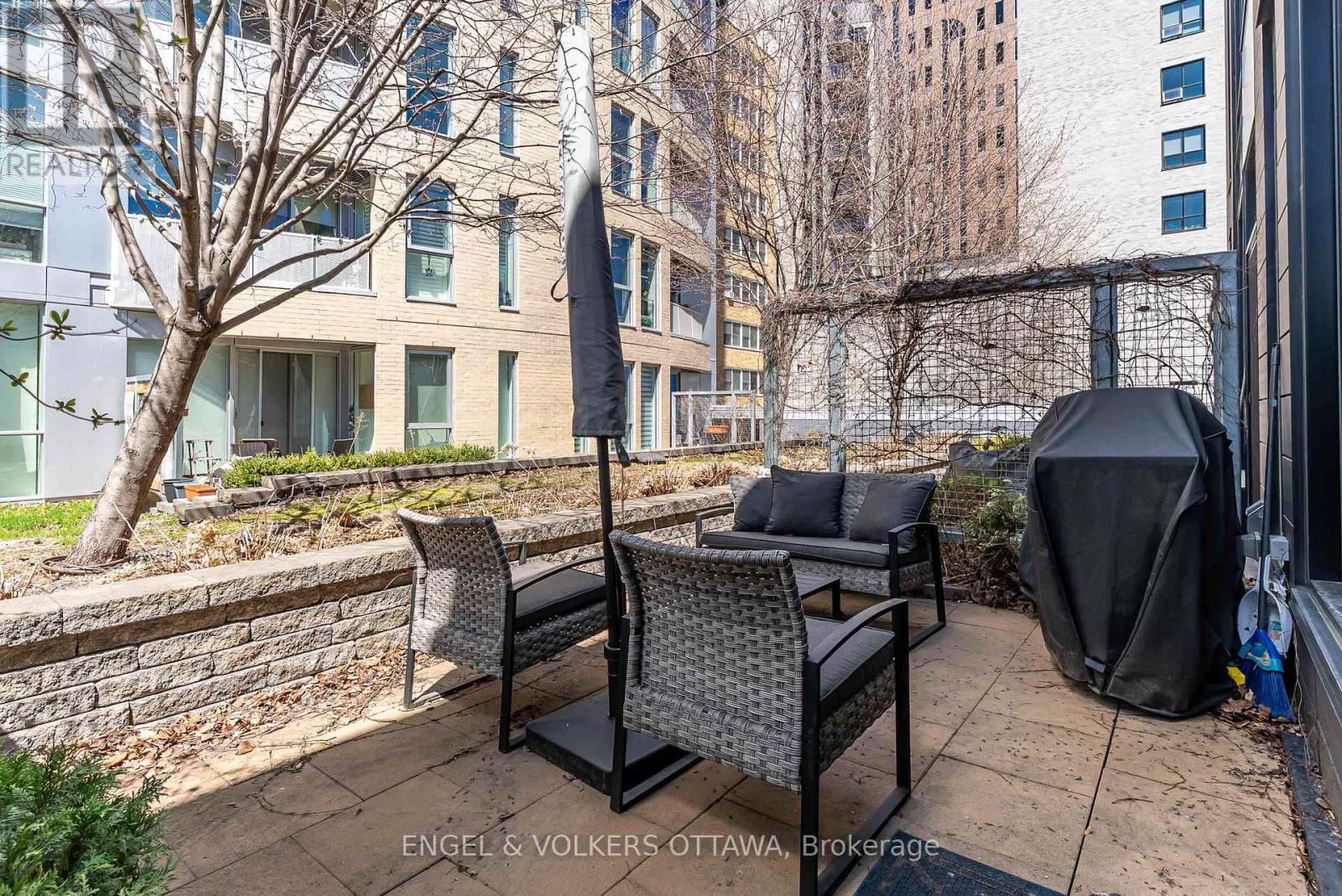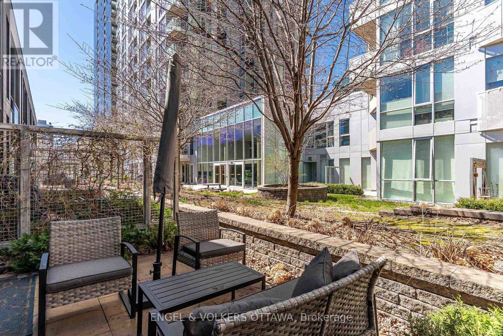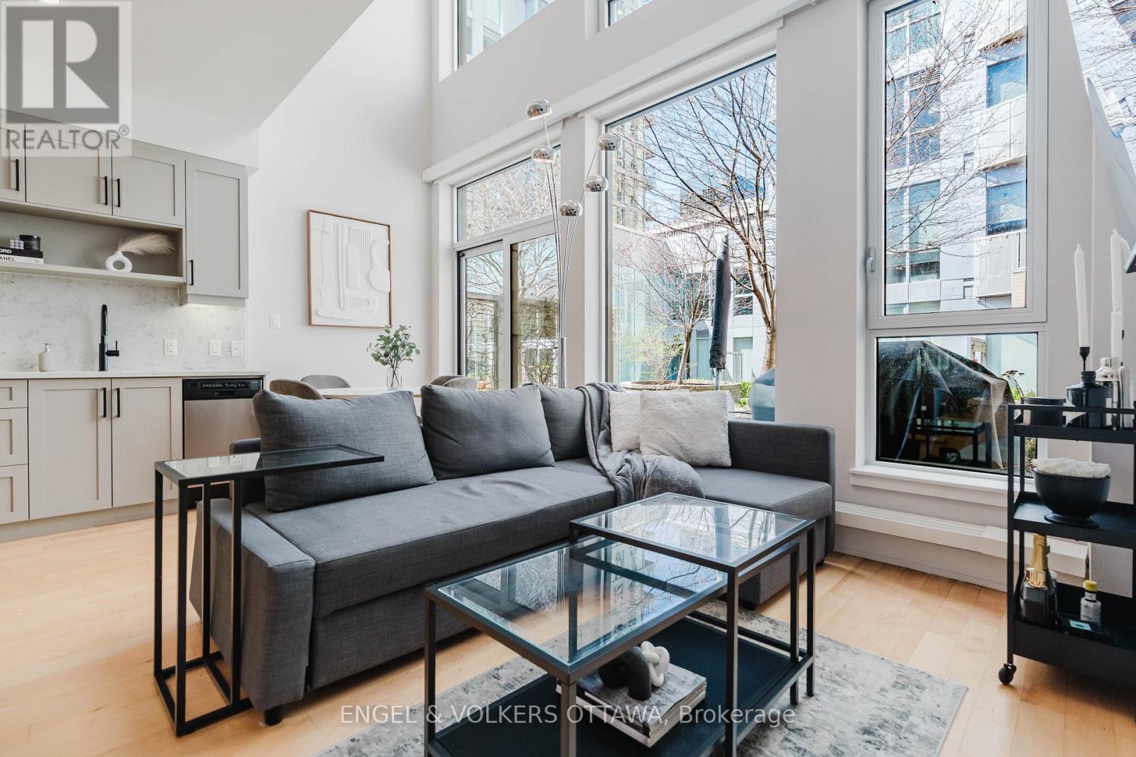 $867 每月**Two storage Lockers** Experience the exclusive Tribeca Lofts by Claridge, steps from Elgin Street & O-train. You'll be surrounded by an array of trendy restaurants, chic cafes, & cultural landmarks, with easy access to the Rideau Canal, picturesque parks & located on top of your new personal pantry Farmboy. This rarely offered condo features striking 2-story windows, creating a stunning loft ambiance, flooding the space with natural light & treed courtyard views. Step out onto your walkout terrace leading to a beautifully treed private courtyard-an ideal setting for outdoor relaxation & entertaining with Natural gas hook up for BBQ. Your new escape from the city, while still steps away from the action. No more waiting for the elevator or excuses from utilizing the fantastic amenities offered. Enjoy walking directly out your backdoor to access treed courtyard w/ BBQs & direct access to indoor pool, sauna, party room & exercise center. Additional amenities include guest suites available for booking, storage, bike storage & underground parking. (id:44758)