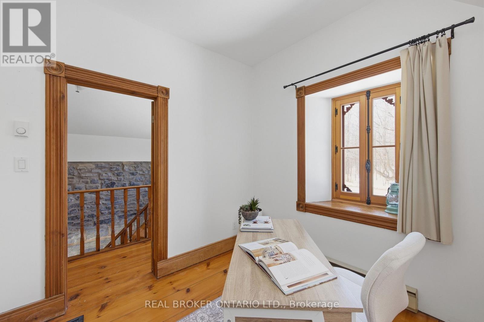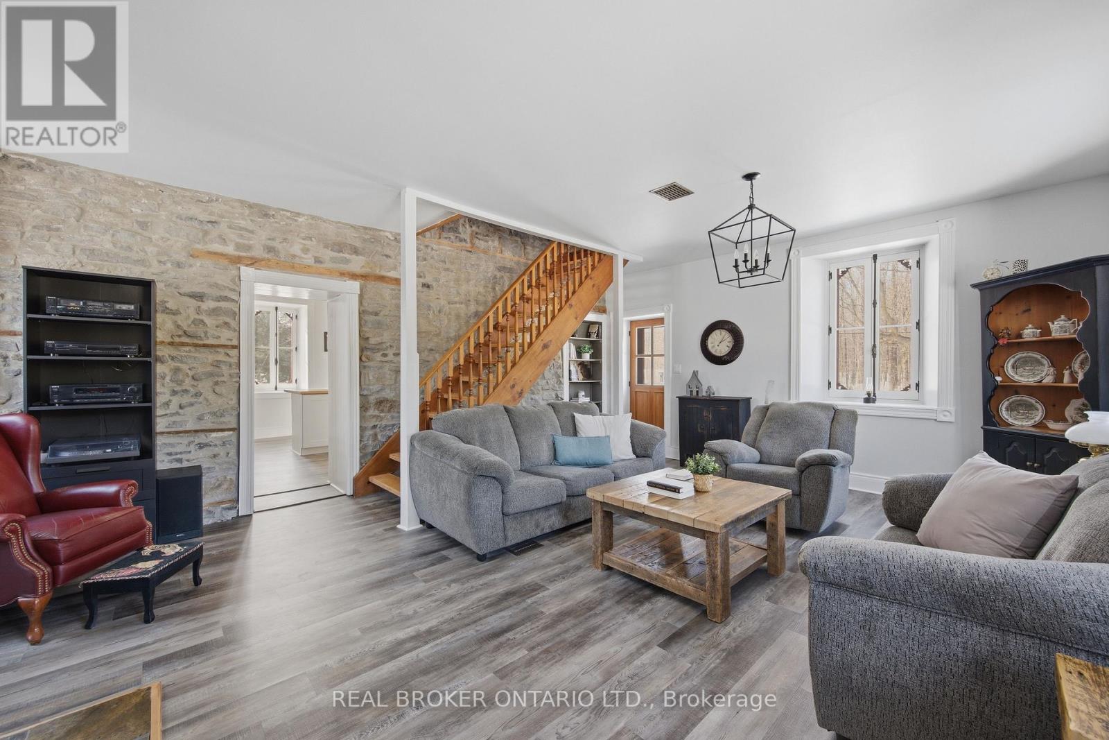 Some homes just have a story. This 1860s stone residence in Oxford Mills is one of them. Built to last and updated to live in, this four-bedroom home sits on 1.25 acres with the kind of bones you can't manufacture. Original pine plank floors, deep windowsills, and exposed stone walls that have been standing for over 150 years. It's the real thing.The main floor is functional and warm. A well-used kitchen with butcher block and Corian surfaces, a family room anchored by a wood stove, and a sunroom that looks out over established perennial gardens and a neighbouring pond. Upstairs, four bedrooms and a bathroom with a clawfoot tub. Out back, a saltwater pool and deck installed in 2025. Ready for summer without the wait. The attached nanny suite has its own separate entrance, giving family members, guests, or a live-in caregiver genuine independence without leaving the property. A detached garage and a heated studio with hydro, round out the practical side of things. Oxford Mills puts you 10 minutes from Kemptville and 40 from Ottawa, right off Highway 416. Rural without being remote. If you've been looking for a heritage property that actually functions for modern life, this is worth a serious look. (id:44758)