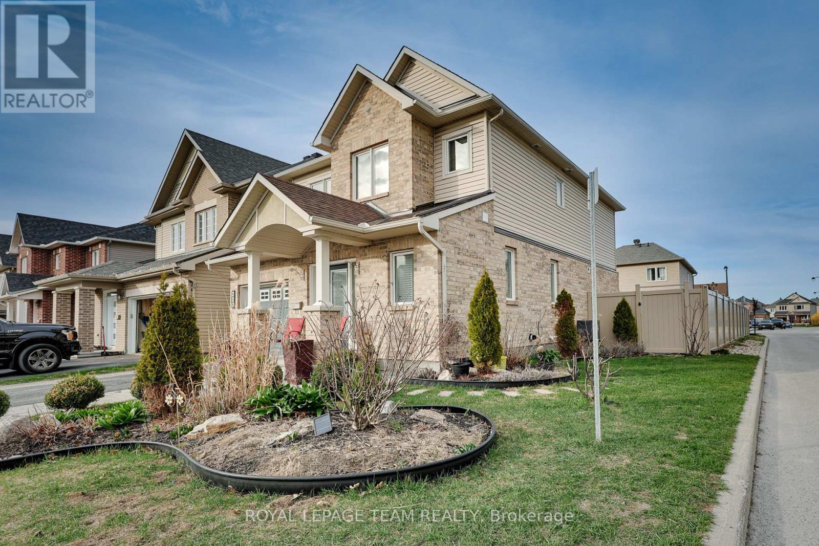 Situated on a premium CORNER LOT in the highly sought-after Kanata Lakes school boundaries, this well-maintained MINTO-built Griffin model offers 3 bedrooms and 3.5 bathrooms with a layout that truly stands out for everyday family living. The irregular lot shape provides extended depth and a greater sense of openness, enhancing both curb appeal and privacy. From the moment you arrive, the home presents beautifully with mature landscaping and a clean, well-cared-for exterior that reflects pride of ownership by the original owner. Inside, the main level is thoughtfully designed with an formal living room and a separate family room with a fireplace, creating distinct yet connected spaces that feel open, bright, and highly functional, while the kitchen features white oak cabinetry, stone countertops, high-end appliances, and a sun-filled dining area. Upstairs, the primary bedroom offers a spacious and comfortable retreat, complete with a rare dedicated sitting area that works perfectly as a home office or quiet lounge, along with an ensuite bath, while the additional bedrooms are generously sized and filled with natural light. The fully finished basement adds exceptional versatility, featuring large lookout windows that bring in natural light and a full bathroom, making the space feel bright and welcoming whether used as a recreation area, guest suite, or multi-generational living space. Step outside to a professionally finished backyard designed for easy enjoyment, with an interlock patio, 7-foot PVC fencing, and dual side access, creating a private outdoor setting that's already complete and far ahead of most new builds. Additional highlights include ample parking and a move-in-ready condition throughout. Located just minutes from Highway 417, Kanata Centrum, Tanger Outlets, parks, and top-rated schools, this home offers a rare combination of location, lot, and layout in one of Kanata's most desirable communities. (id:44758)