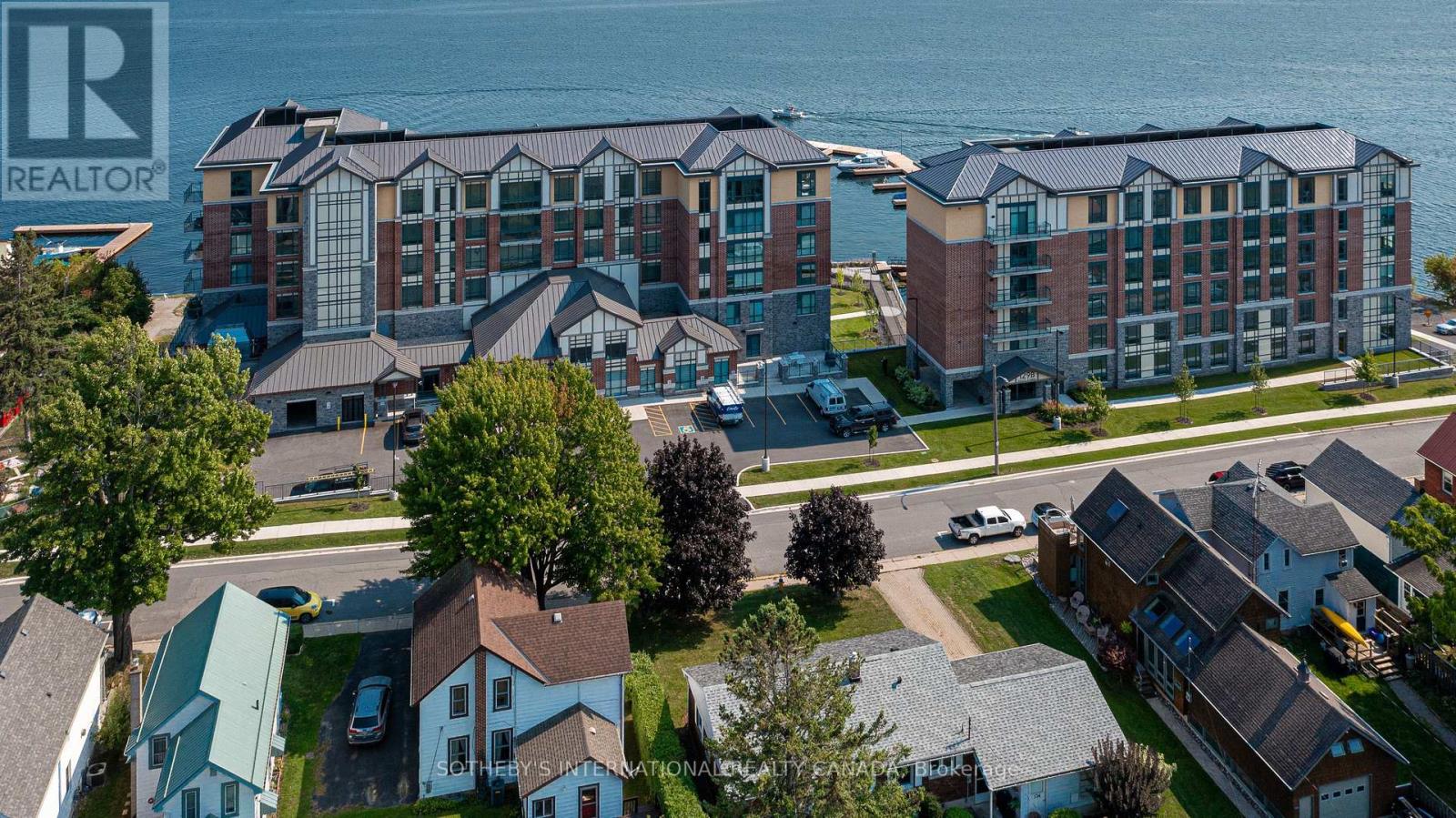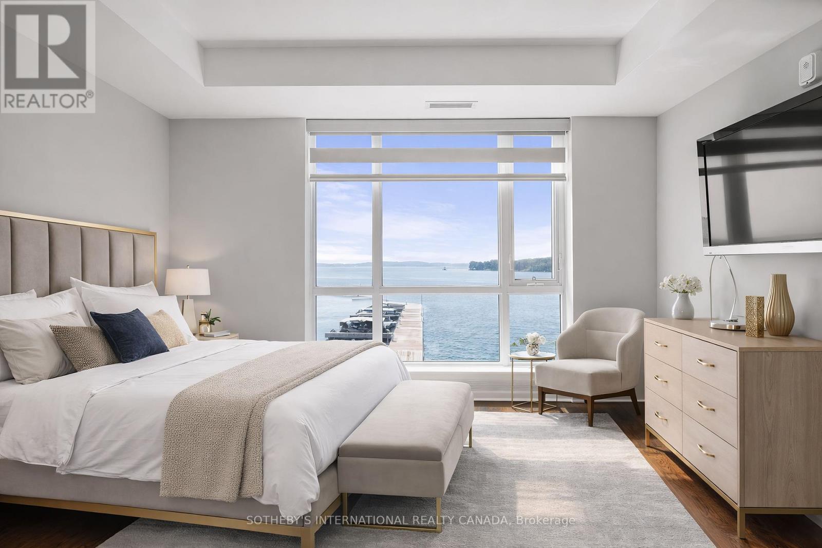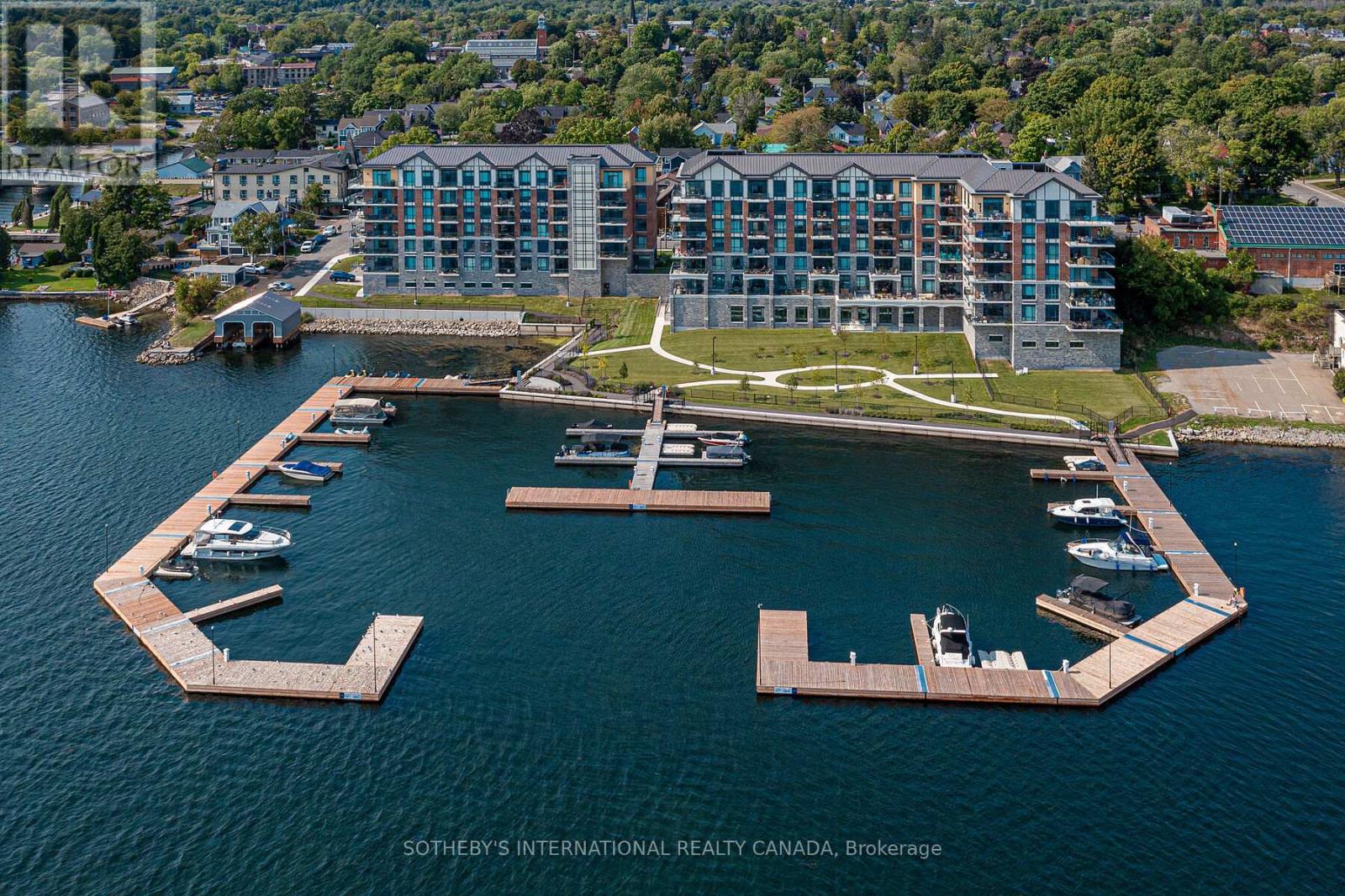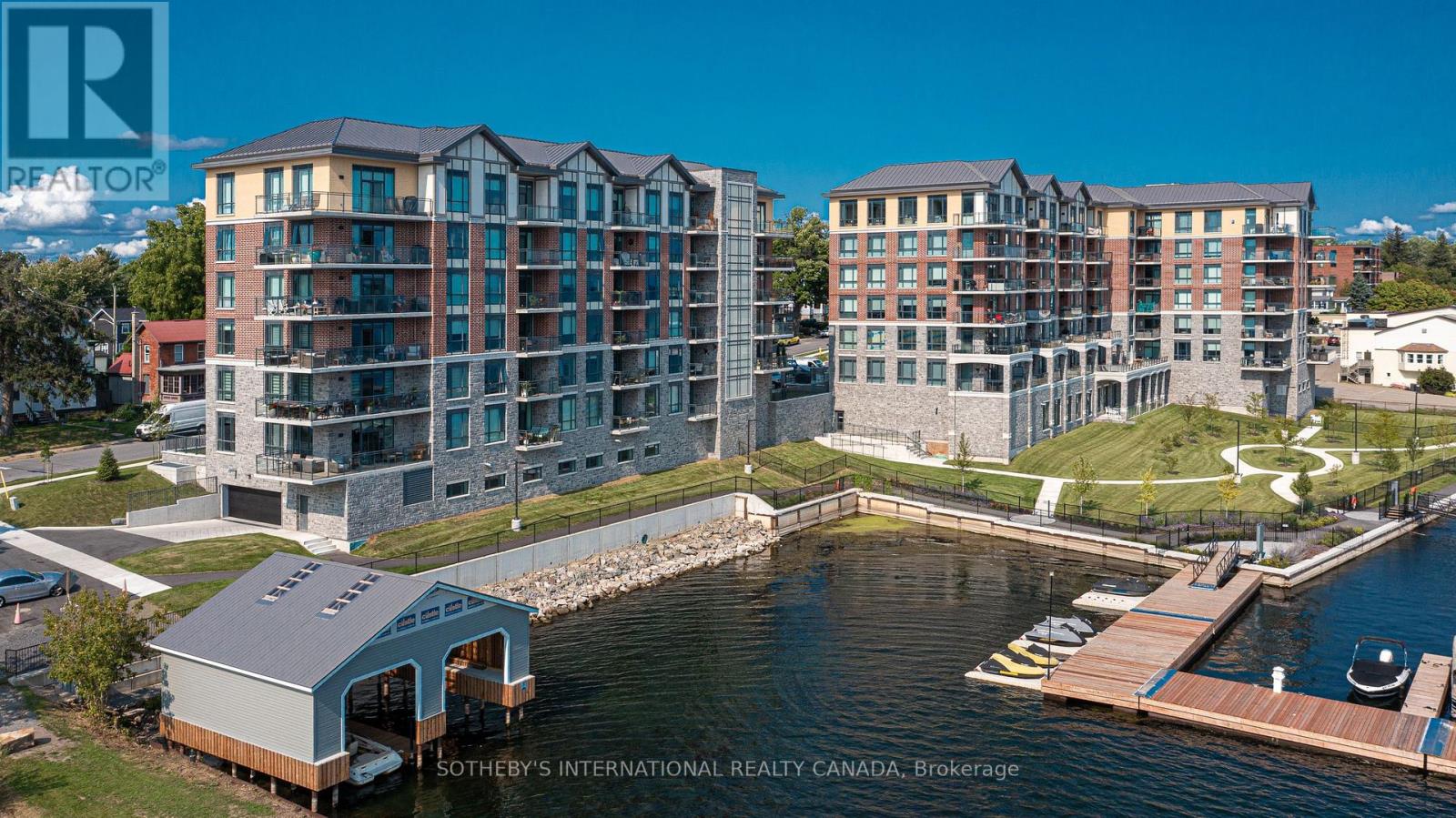 Experience refined waterfront living along the iconic St. Lawrence River in this exceptional 2-bedroom, 2-bathroom corner residence. Showcasing sweeping 270-degree panoramic views to the south, west, and north, this home captures ever-changing skies, sparkling water, and unforgettable sunsets from nearly every vantage point. Designed for those who appreciate both luxury and lifestyle, this residence offers a rare and coveted 44-foot private boat slip-inviting you to move seamlessly from elegant everyday living to effortless escapes on the water. Inside, a thoughtfully designed open-concept layout blends sophistication with comfort. A striking stone accent wall anchors the living space, where a sleek fireplace and curved 60" television create a warm, contemporary focal point-perfect for both intimate evenings and elevated entertaining. The gourmet kitchen is a statement in both form and function, featuring high-end appliances, marble countertops, a custom backsplash, and a layout designed to maximize space and flow. Throughout the home, upgraded hardwood flooring, motorized smart blinds, and curated lighting enhance the sense of modern luxury. The primary suite offers a tranquil retreat, complete with a spa-inspired ensuite and serene water views-an ideal place to unwind and recharge. Additional features include two parking spaces and a generous storage locker, ensuring convenience matches the home's elegance. This is more than a residence-it is a rare opportunity to embrace a sophisticated waterfront lifestyle, where luxury, comfort, and natural beauty converge. Please note that some photos have been virtually staged. (id:44758)
