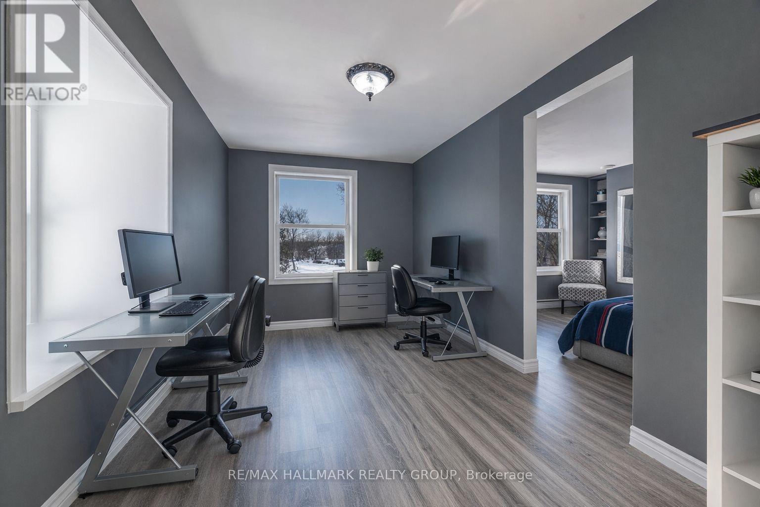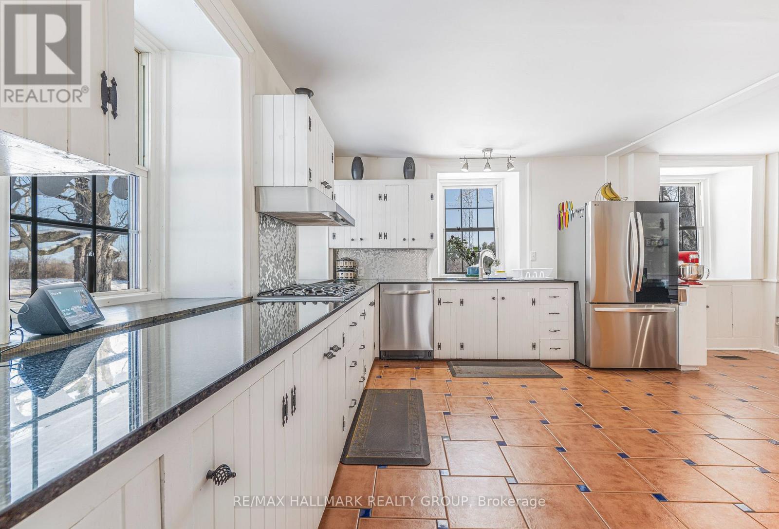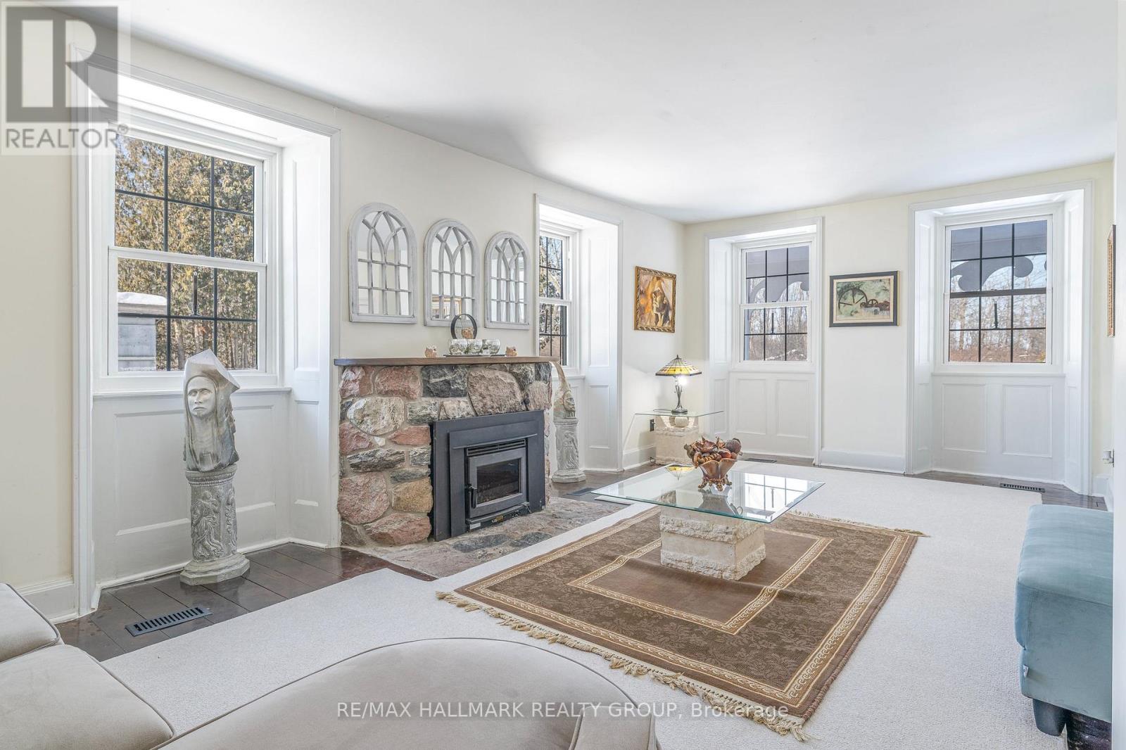 Welcome to this gorgeous solid stone home offering privacy, space, and comfortable modern living on a beautiful Country setting just minutes from Big Rideau Lake. Beautifully maintained, this property blends timeless construction with extensive updates and over $100,000 invested in improvements, giving buyers peace of mind while preserving the home's unique character. The main level is designed for everyday family life and effortless entertaining. Large principal rooms provide flexibility for both formal and casual living, while many picturesque windows bring in natural light and showcase the surrounding greenery. The oversized family room is truly the heart of the home, perfect for movie nights, celebrations, and quality time together. The wood burning stove adds warmth, comfort, and an inviting atmosphere that naturally draws everyone in. The open concept kitchen and dining area is designed for both everyday living and entertaining, offering ample counter and cupboard space, a gas range cooktop, and a convenient in wall oven. A standout feature is the bright four season sunroom, offering additional year round living space with direct access to the large deck overlooking the peaceful backyard. Whether it is your morning coffee, kids playing outside, or evening relaxation, this setting delivers tranquility and privacy in every season. Upstairs, the second level offers four generous bedrooms, a well appointed family bathroom, and a versatile flex room ideal for a nursery, study area, or home office. The property continues to impress outdoors with plenty of room for gardening, recreation, and enjoying nature. A heated workshop provides excellent space for hobbies, projects, or extra storage. If you are searching for a home that offers land, privacy, meaningful updates, and room for your family to grow, all within easy reach of the lake and nearby amenities, this is a rare opportunity. Call for your personal showing today. (id:44758)
