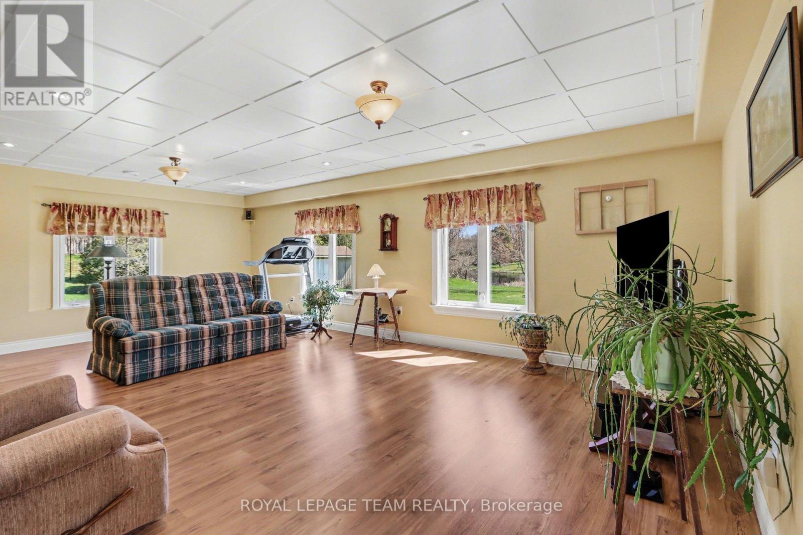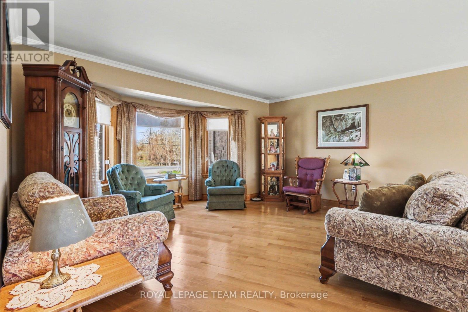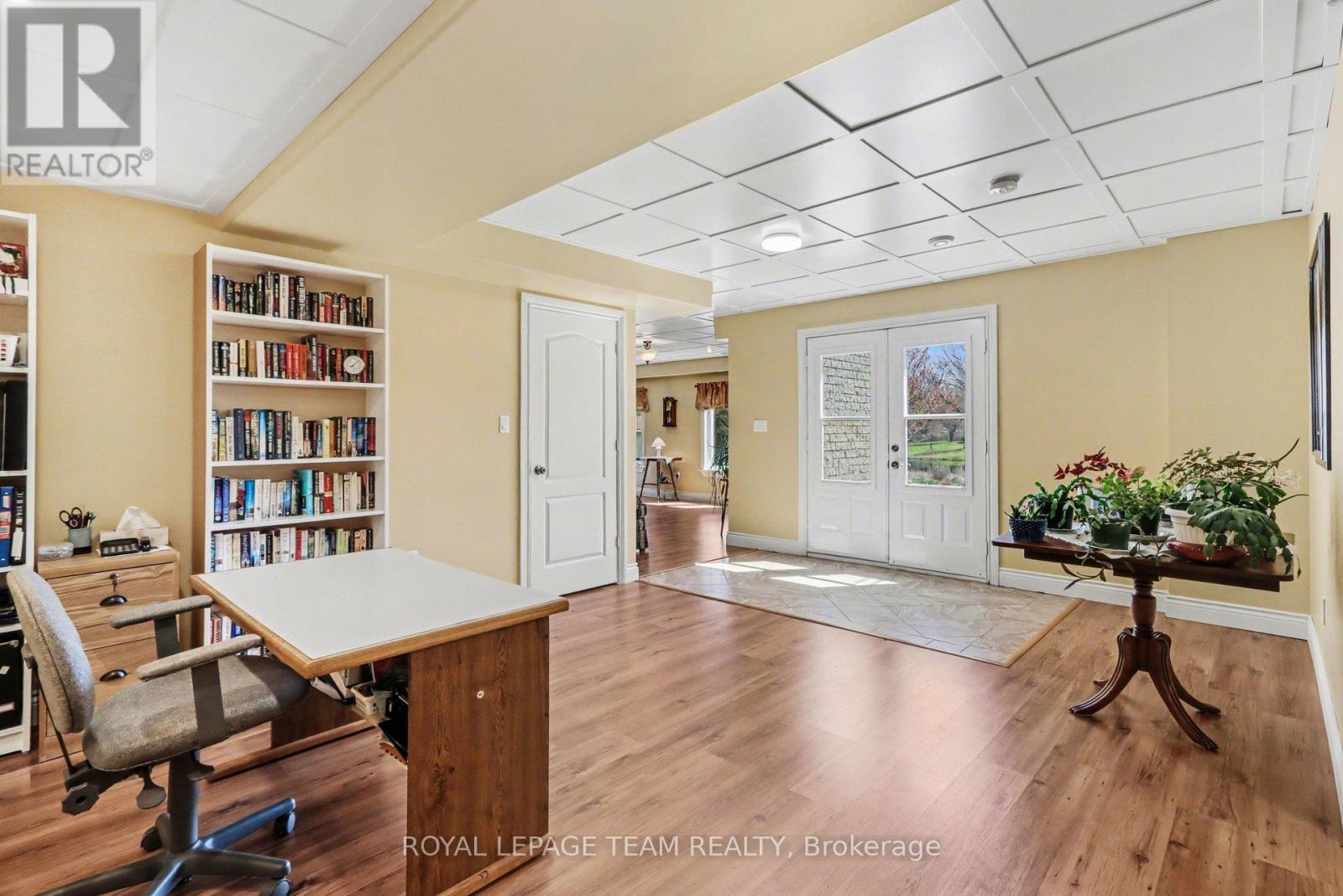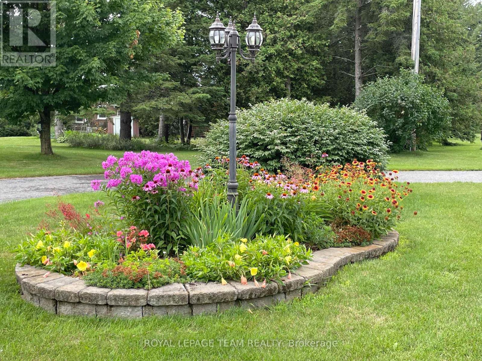 Set on a picturesque acre of waterfront land, this beautiful stone bungalow offers the perfect balance of peaceful rural living and convenient access to Kemptville's amenities. Step inside to a bright, open-concept main level featuring rich hardwood floors and an inviting layout ideal for both everyday living and entertaining. The spacious kitchen provides ample counter space and a generous pantry, while the dining area opens onto a back deck-perfect for enjoying morning coffee or evening sunsets by the water. A sun-filled den or sitting nook boasts plenty pf natural light. a great space to relax and take in the serene waterfront views.The main floor includes three well-appointed, soundproofed bedrooms, ensuring comfort and privacy for the whole family. The primary suite is a true retreat, complete with his-and-hers walk-in closets and a luxurious 4-piece ensuite featuring a large soaker tub. Convenient main-floor laundry adds to the home's thoughtful design.The fully finished lower level expands your living space with a bright family room featuring heated floors-ideal for cozy comfort year-round. This level also includes a walkout den to the backyard, a large fourth bedroom, a half bathroom, and abundant storage, including a cold room. Additional highlights include a double attached garage with both interior and exterior access, beautifully landscaped perennial gardens, a charming stone walkway, and a circular driveway that enhances both curb appeal and functionality.This exceptional waterfront property is a rare opportunity to enjoy privacy, space, and natural beauty-without sacrificing proximity to town. conveniences. (id:44758)
