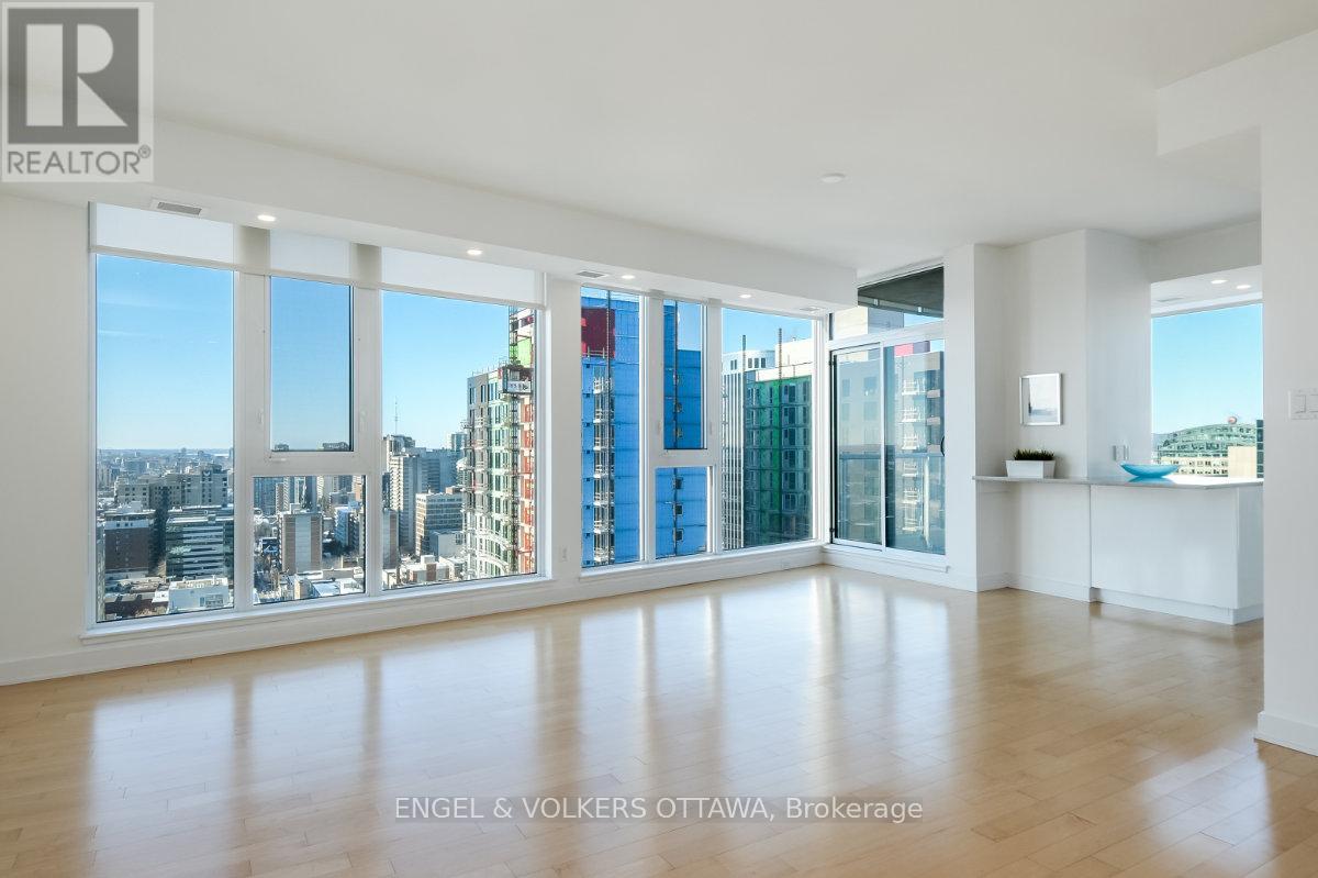 $822.12 每月Welcome to unit 2401, a stunning 2 bedroom, 2 bath corner unit offering some of the most coveted views in Ottawa. Floor-to-ceiling windows frame unobstructed views of the parliament Peace Tower and Ottawa skyline. Thoughtfully designed for those who who refuse to compromise, this corner unit stands apart with an exceptional layout, hardwood floors , many upgrades and over 1100 SQ FT. The Grand model offers an open concept living and dining room which is expansive yet intimate, a rare combination at this elevation. Both bedrooms are well separated. Building amenities elevate everyday with an indoor pool, full equipped fitness centre and a rooftop lounge. The location is perfect with Farm Boy and Rexall pharmacy right out your door step. Elgin Street's dining and cafe scene is steps away. Easy walking distance to Parliament Hill, Rideau Centre, Rideau Canal and so much more. This is urban Ottawa living at its finest. (id:44758)