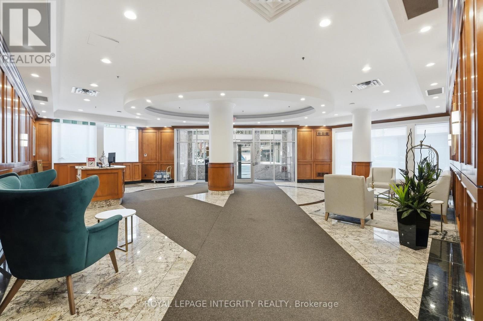 Fantastic value for all kinds of buyers! This comfortable 1 bed 1 bath condo + WFH space with floor-to-ceiling windows is perched just high enough to showcase views of Parliament, the Ottawa River, and the Gatineau Hills. The quintessential downtown condo floor plan offers 660 sq ft of well-designed living space + large north-facing balcony. Updates since 2022 include fresh paint, all new ceiling lights, shower door, and stylish balcony floor covering. The kitchen features stone countertops, stainless steel appliances, a tiled backsplash, and a handy breakfast bar. Kitchen opens into the living and dining areas with direct access to the balcony. The bedroom is bright and spacious with a large window for ample natural light, while the den/computer nook provide flexible space for working from home. What sets this unit apart is the exceptional convenience. The underground parking spot is located incredibly close to the elevator-something you'll appreciate every single day. Even more rare is the oversized 15 x 5 ft storage room, offering significantly more space than typical condo lockers- perfect for bikes, tires, seasonal items, and everything else you don't want in your living space. Enjoy full-service living just steps to the ByWard Market, UOttawa, Rideau Centre, OC Transpo, NAC, Parliament, and the Rideau Canal. Plus 2 grocery stores within 2 mins walk from your front door! Building amenities include fitness centre, indoor saltwater pool, sauna, media room, 2 roof-top terraces, shared BBQs, and 24-hour concierge. Condo fees include heat and water! Elevate your lifestyle today- this condo is head and shoulders above the rest! (id:44758)
