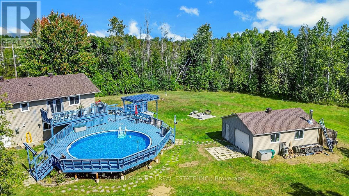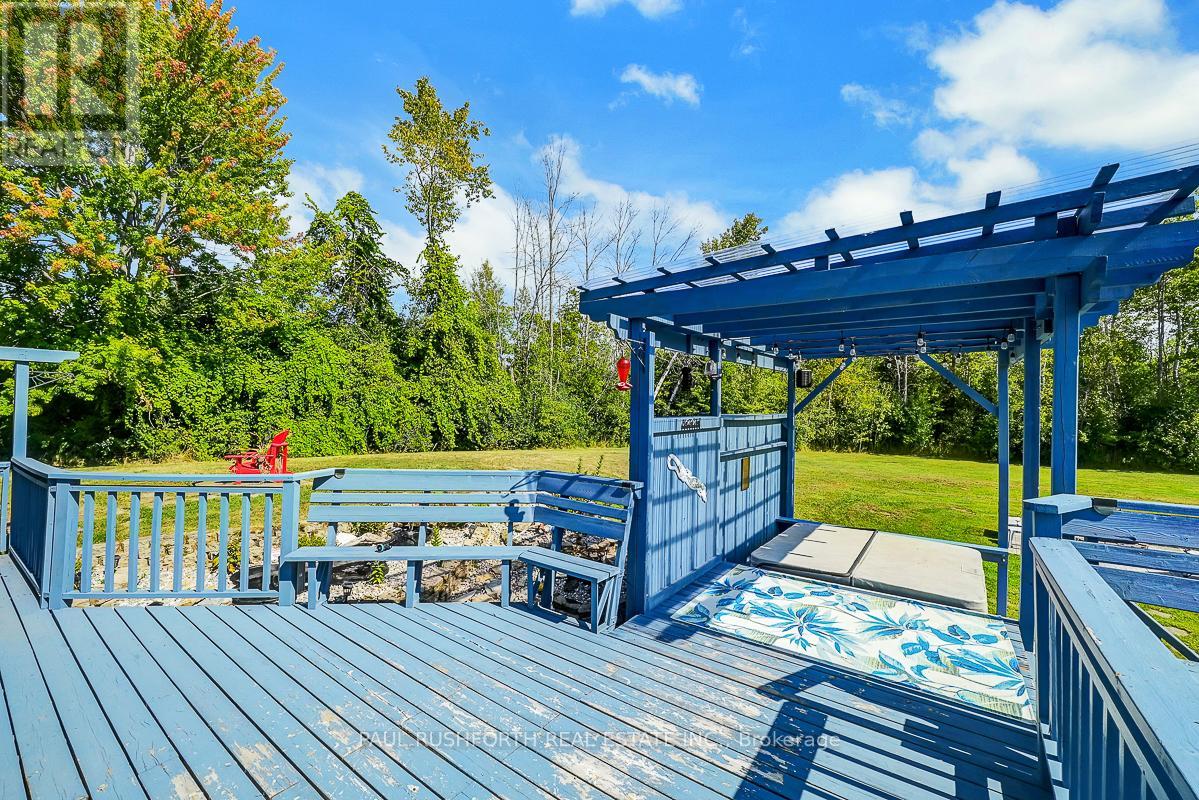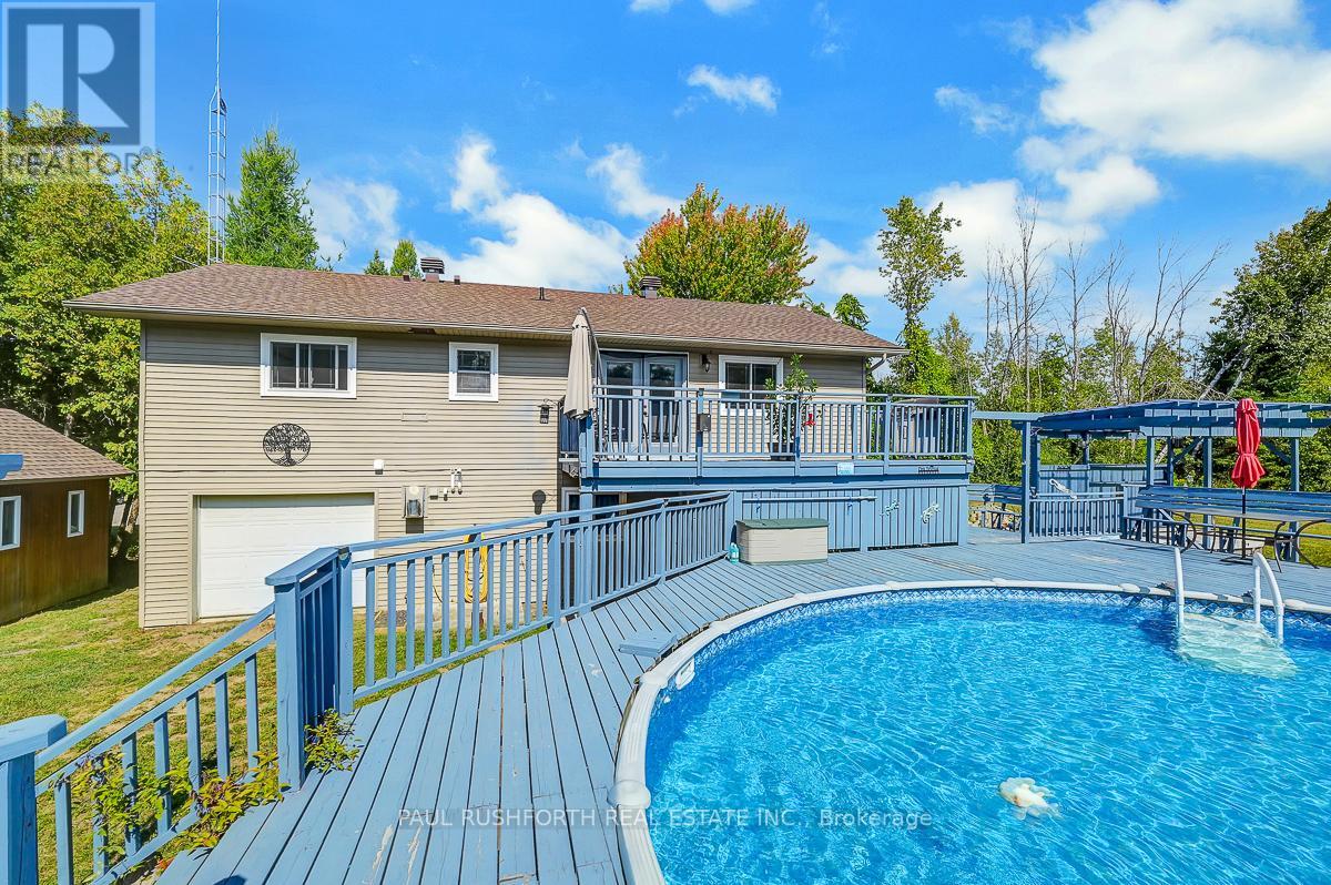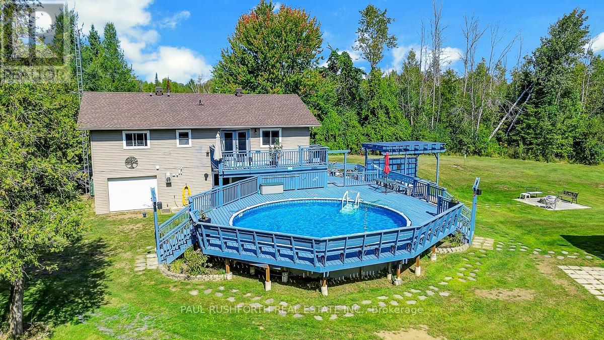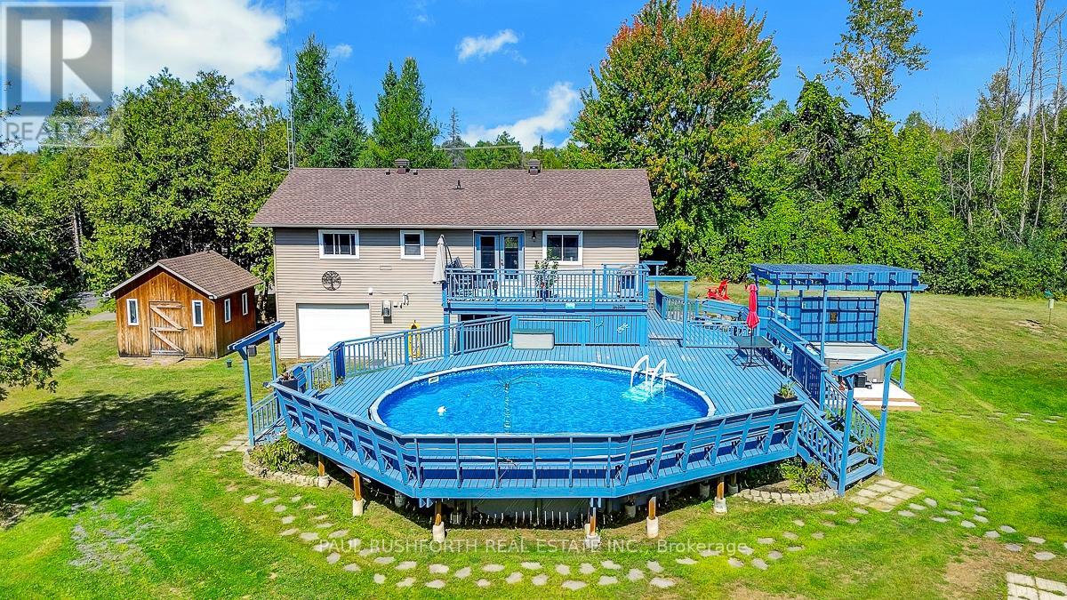 Just outside the charming Town of Merrickville, this 2+1 bedroom, 3 bathroom home offers the perfect balance of country privacy and everyday convenience. Set on just under an acre, the property is designed for both relaxation and functionality, with plenty of room indoors and out. The private backyard is an entertainers dream, featuring oversized multi level cedar decks, an above ground pool, hot tub, and space for gardens. For those needing extra room for hobbies or storage, the property delivers: a very large wired detached workshop, a deep garage with inside entry and overhead doors at both the front and back, plus an additional shed. Inside, the home features a bright, expansive kitchen with two pantry closets and newer flooring. The efficiently designed floor plan provides easy flow through the living spaces. The lower level is fully finished, complete with a family room, bedroom, full bath with stand up shower, and walk out access to the yard. With the option to convert back to an in law suite, the home offers flexibility to suit your needs. Located less than 25 minutes from Brockville, Smiths Falls, and Kemptville, commuting is simple while still enjoying the quiet of country living. This property presents a wonderful opportunity to make a home your own, in a location that offers lifestyle, space, and convenience. Feature Sheet Attached. (id:44758)
