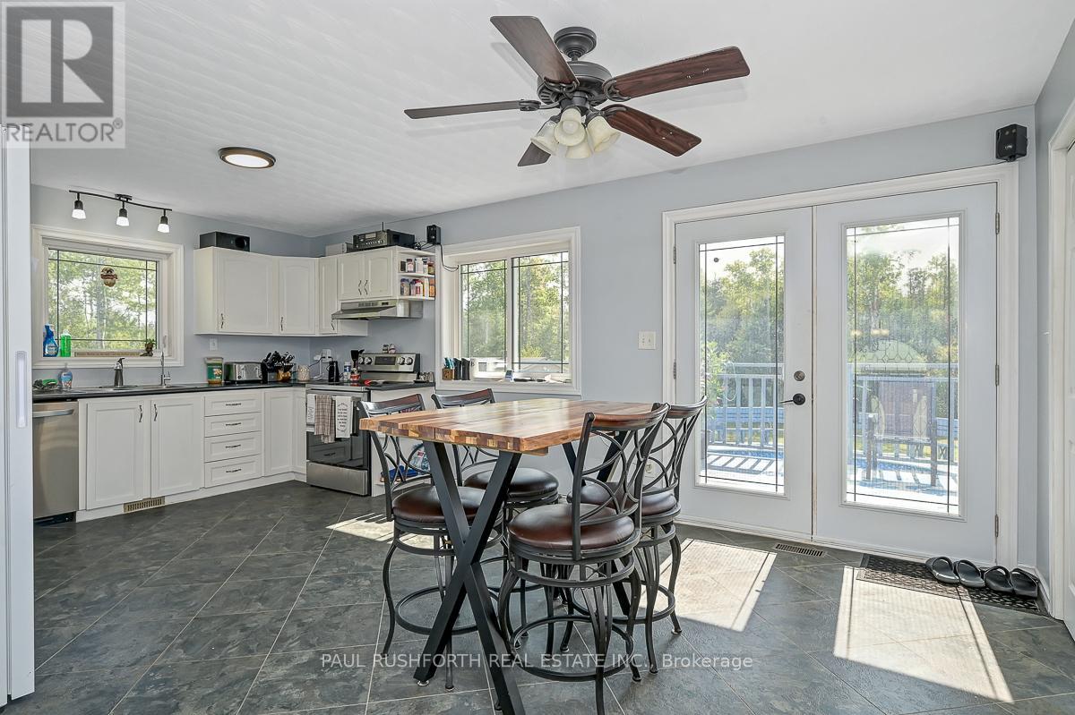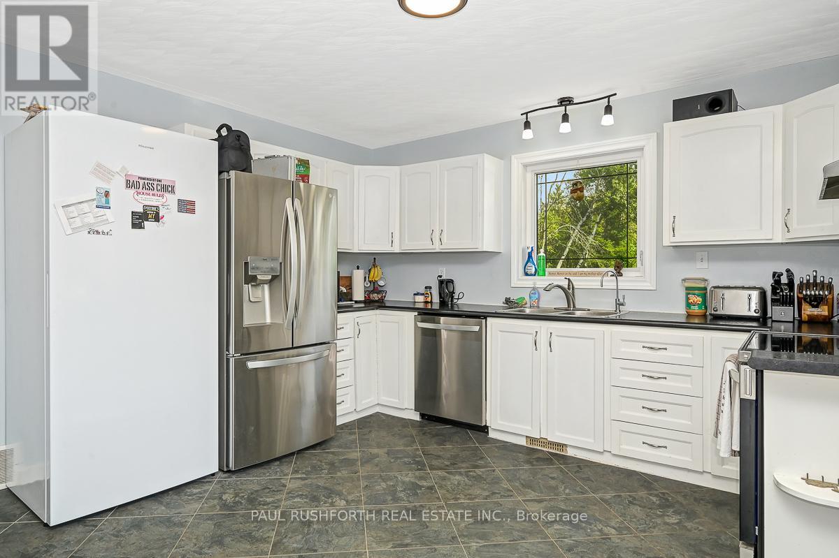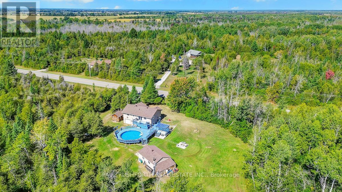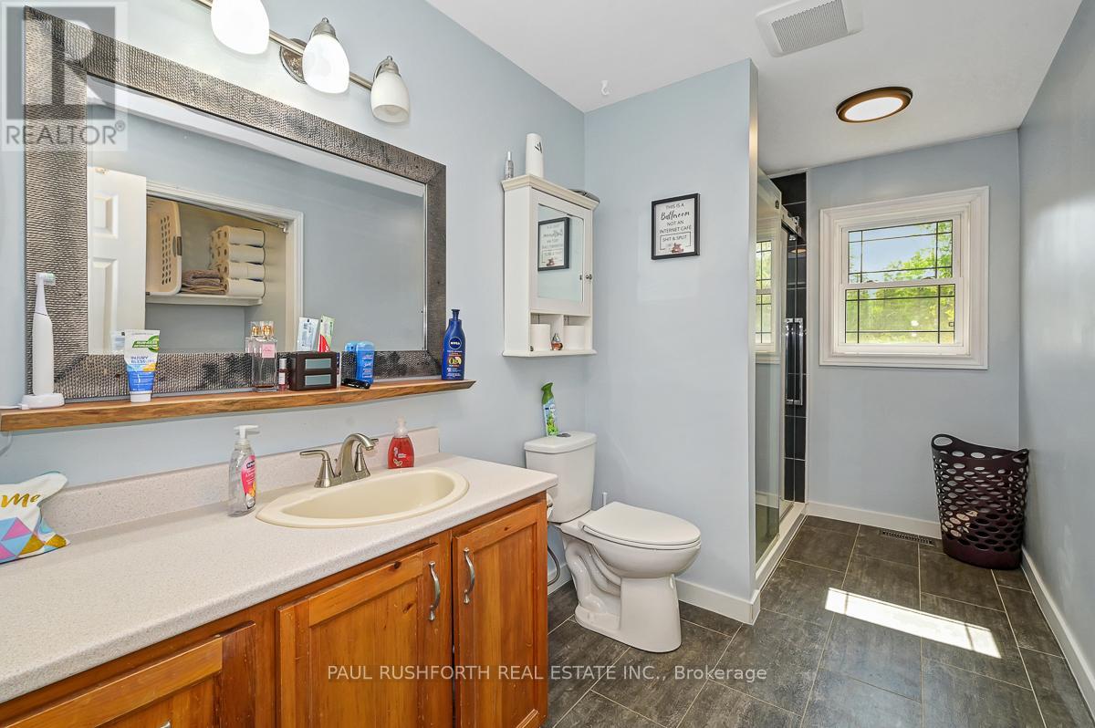 Just outside the charming Town of Merrickville, this 2+1 bedroom, 3 bathroom home offers the perfect balance of country privacy and everyday convenience. Set on just under an acre, the property is designed for both relaxation and functionality, with plenty of room indoors and out. The private backyard is an entertainers dream, featuring oversized multi level cedar decks, an above ground pool, hot tub, and space for gardens. For those needing extra room for hobbies or storage, the property delivers: a very large wired detached workshop, a deep garage with inside entry and overhead doors at both the front and back, plus an additional shed. Inside, the home features a bright, expansive kitchen with two pantry closets and newer flooring. The efficiently designed floor plan provides easy flow through the living spaces. The lower level is fully finished, complete with a family room, bedroom, full bath with stand up shower, and walk out access to the yard. With the option to convert back to an in law suite, the home offers flexibility to suit your needs. Located less than 25 minutes from Brockville, Smiths Falls, and Kemptville, commuting is simple while still enjoying the quiet of country living. This property presents a wonderful opportunity to make a home your own, in a location that offers lifestyle, space, and convenience. Feature Sheet Attached. (id:44758)