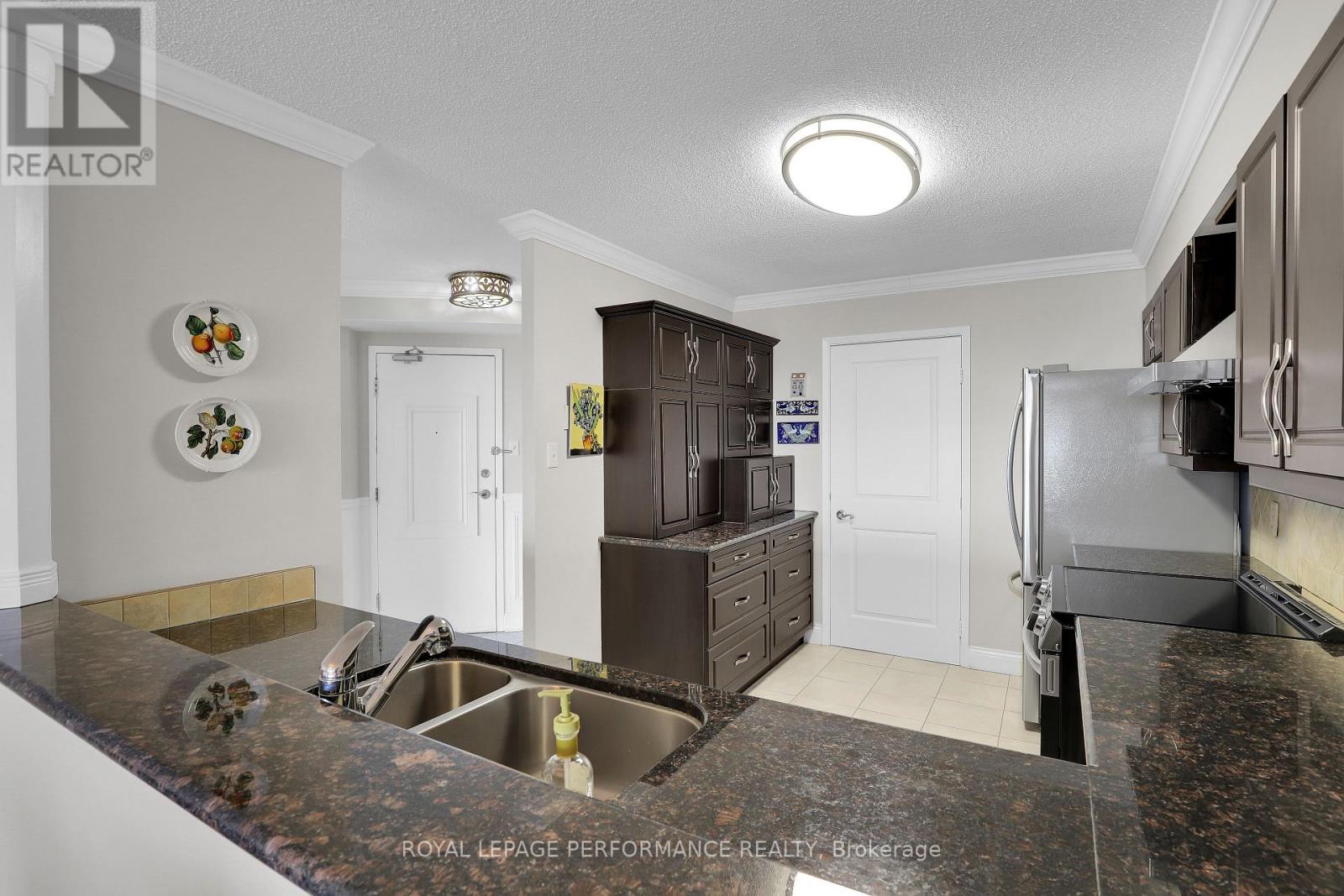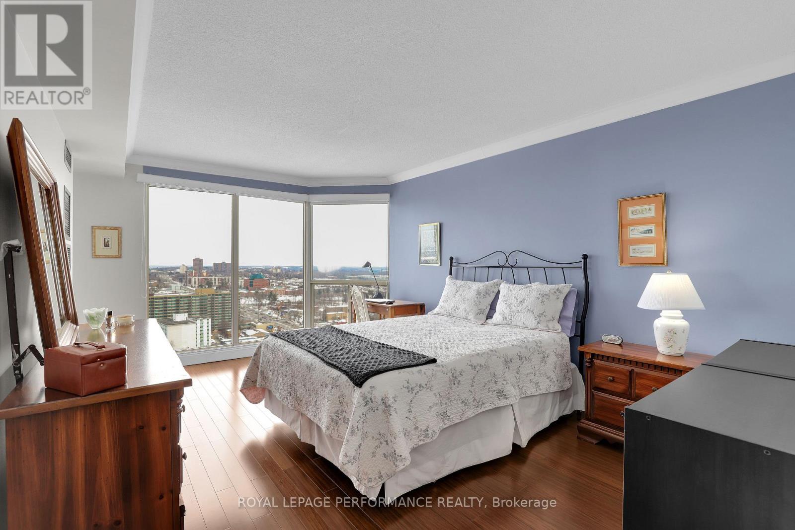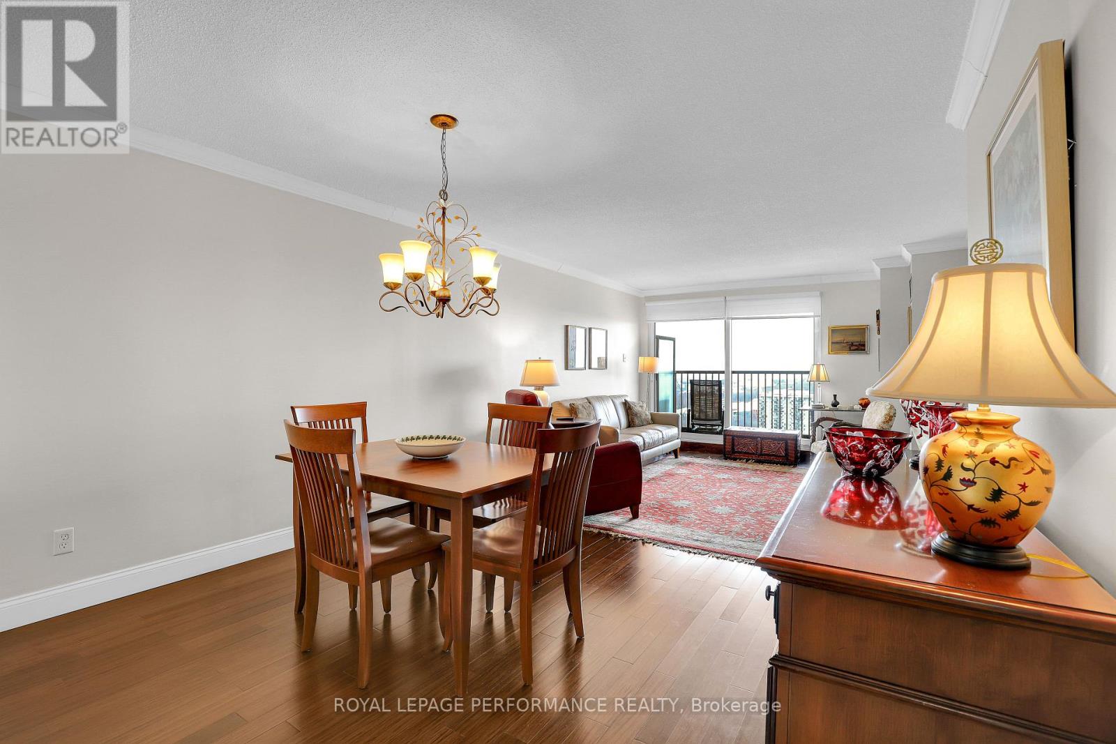 $1,001 每月955 sq ft renovated one-bedroom, one-bathroom condo set within beautifully landscaped grounds with 27th-floor river views. Move-in ready and updated throughout. The renovated kitchen features dark wood cabinetry, granite countertops, stainless steel appliances, ample drawers, and a large pantry, finished with tile flooring and backsplash. The kitchen opens to a spacious living and dining area, creating a functional great-room layout ideal for everyday living and entertaining. Large windows and balcony access provide excellent natural light and showcase river and grounds views. The generous primary bedroom offers expansive windows and a walk-in closet. The updated bathroom includes a designer vanity and modern mirror. Building amenities include 24-hour security/concierge, car wash bay, indoor and outdoor pools, sauna, exercise gym, tennis, basketball, and squash courts. Condo fees include all utilities - electricity, heating, and water. Conveniently located within walking distance to shopping, transit, restaurants, and everyday amenities. Well-maintained building and a move-in ready suite with great views. (id:44758)
