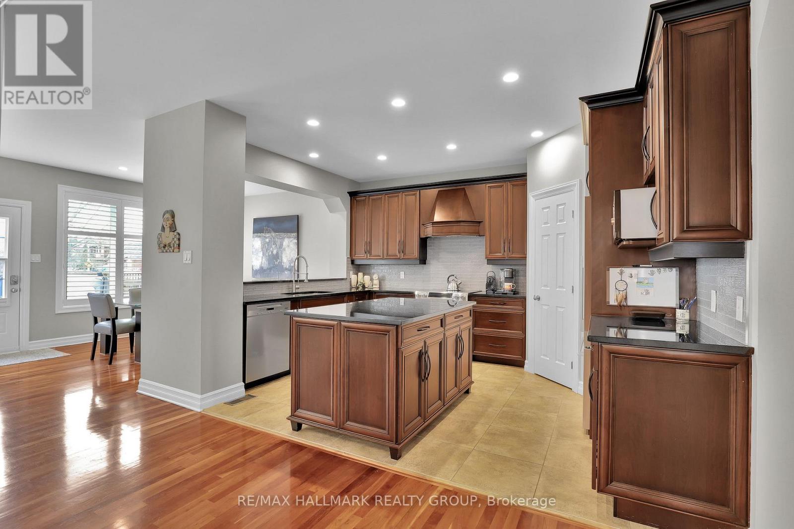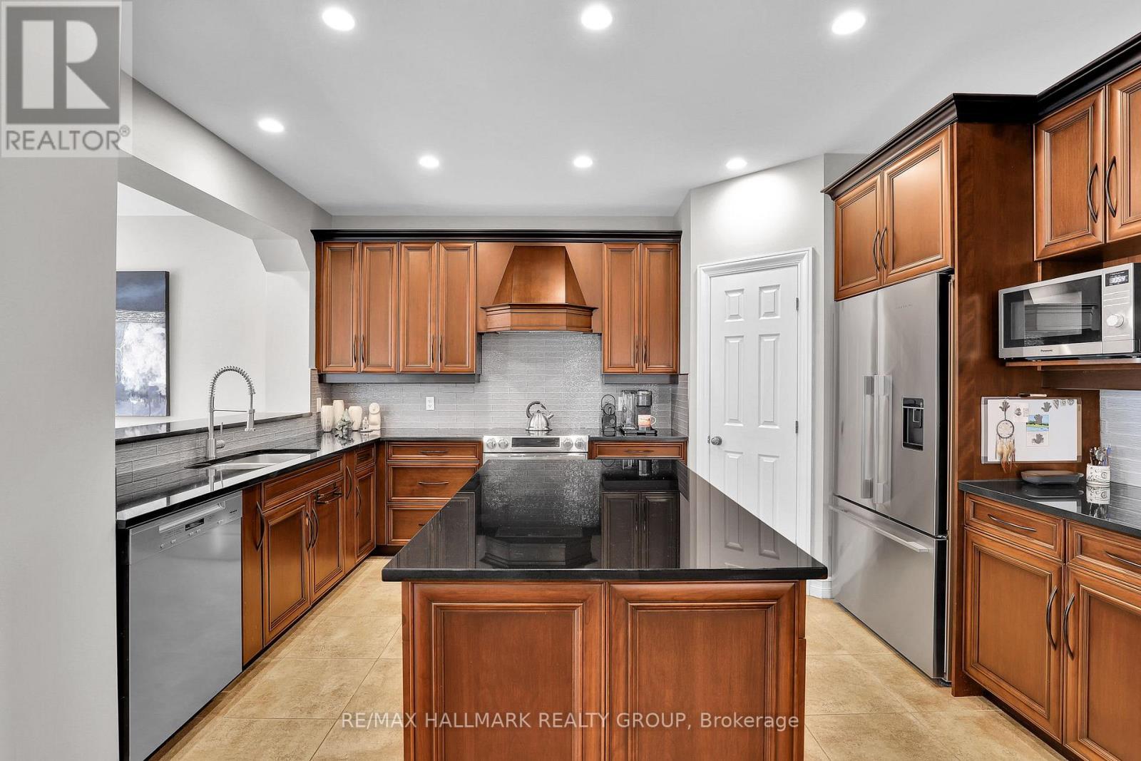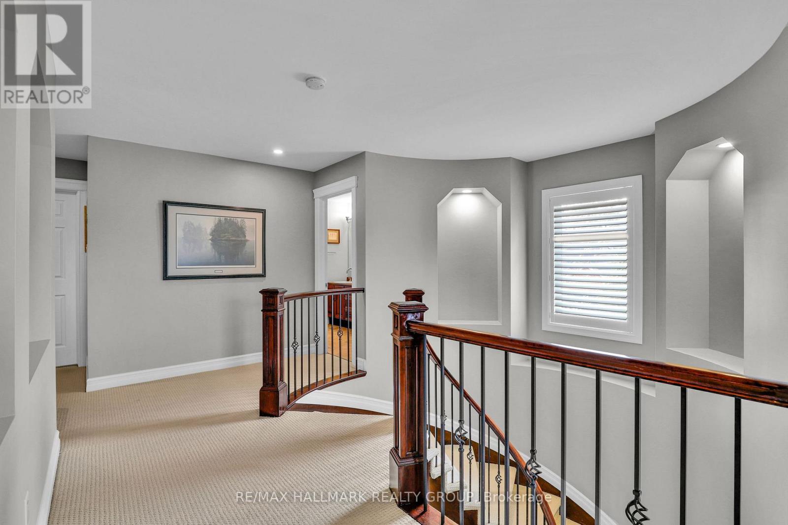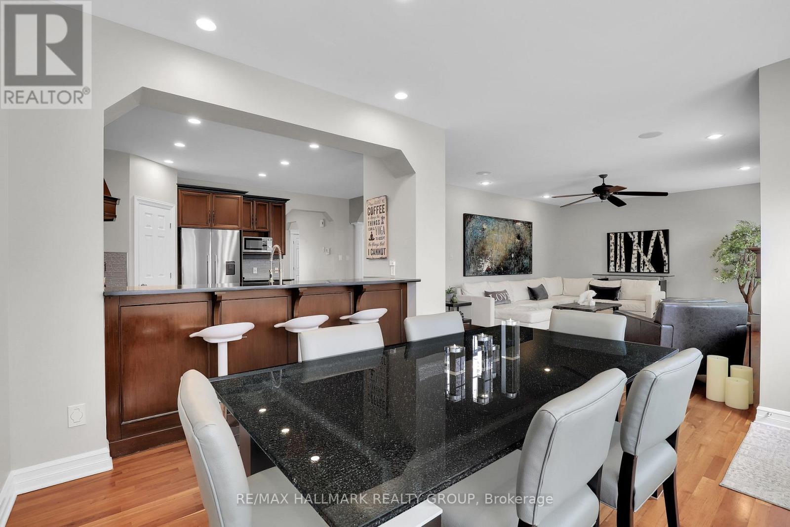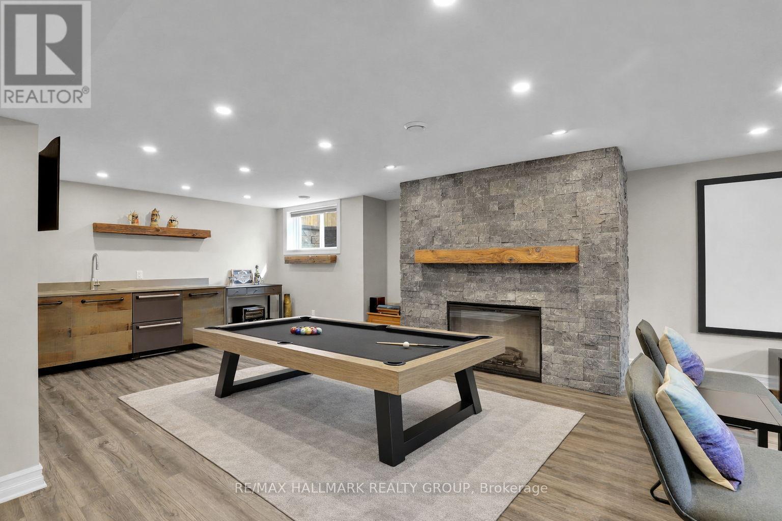 Moffat Farm offers the best of all worlds-parks, riverfront access, scenic walking paths, and effortless connectivity across Ottawa. Set on an oversized lot along a quiet, family-friendly street, this former Cardel model home blends space, natural light, and timeless design with a true lifestyle focus. The versatile main floor is thoughtfully designed for modern living, featuring a formal living room ideal as a home office, a dining space with coffered ceilings (currently styled as a den), and a warm, open family room anchored by a gas fireplace. The spacious kitchen is both functional and inviting-offering ample prep space for everyday living or entertaining-paired with a bright breakfast area overlooking the backyard. California shutters throughout add a refined, cohesive finish. A striking custom circular staircase leads to the upper level, where an impressive front-facing bonus room adds flexibility, alongside four well-proportioned bedrooms. The primary suite is a private retreat, complete with a five-piece ensuite and walk-in closet, while a second full bath with double sinks and convenient second-floor laundry complete the level. The professionally finished lower level is a true extension of the home-flooded with natural light, elegant fireplace and designed for entertaining or extended living. A stylish wet bar featuring KitchenAid café fridge drawers anchors the space, ideal for hosting, movie nights, or relaxed evenings. The lower level also offers a dedicated bedroom area and a full three-piece bath with heated floors, creating a comfortable and functional space for guests. Thoughtful exterior upgrades further enhance everyday living and include fully fenced yard, interlock stone front and back has lawn irrigation system. A rare opportunity to enjoy space, comfort, and lifestyle in one of Ottawa's most desirable communities. (id:44758)