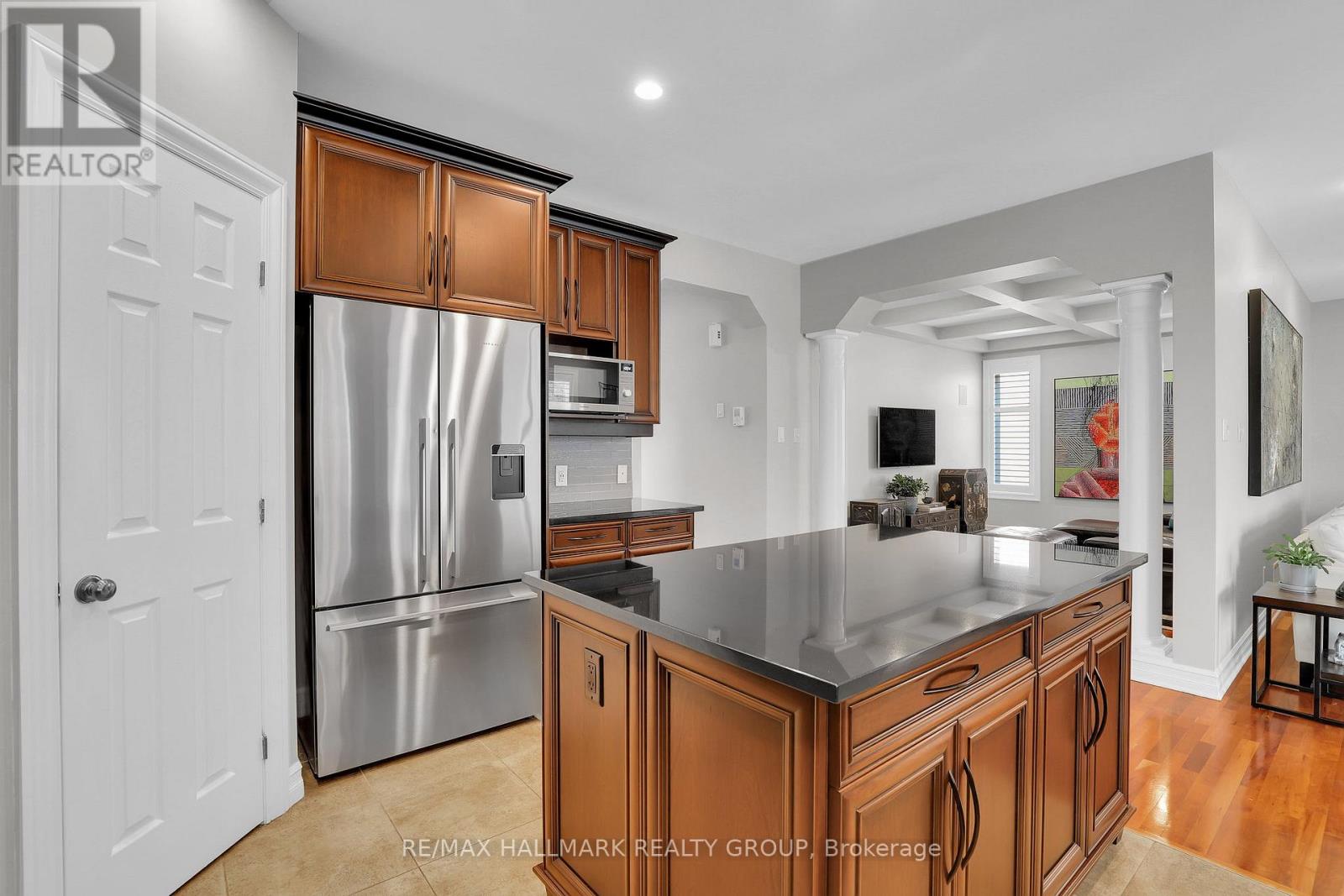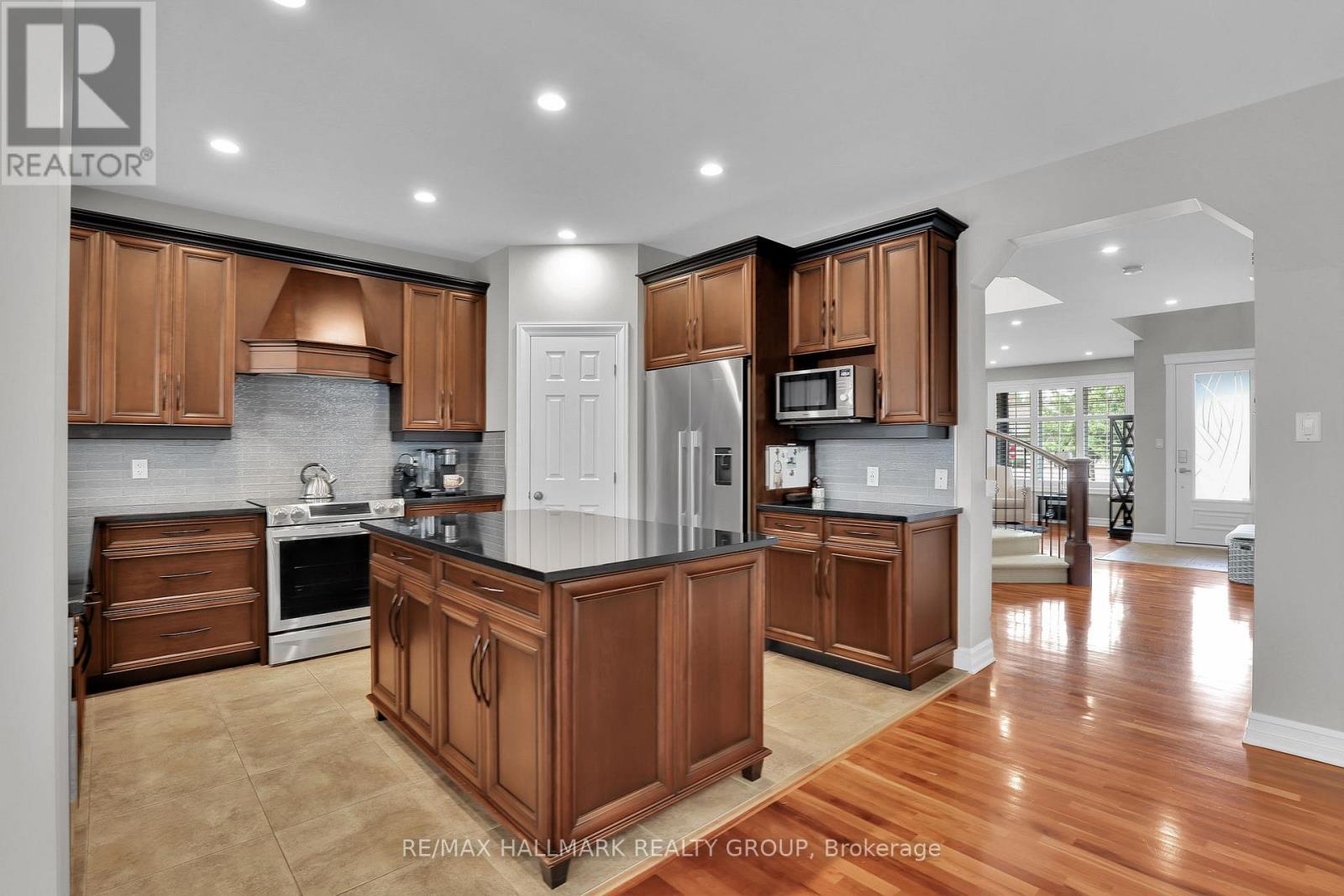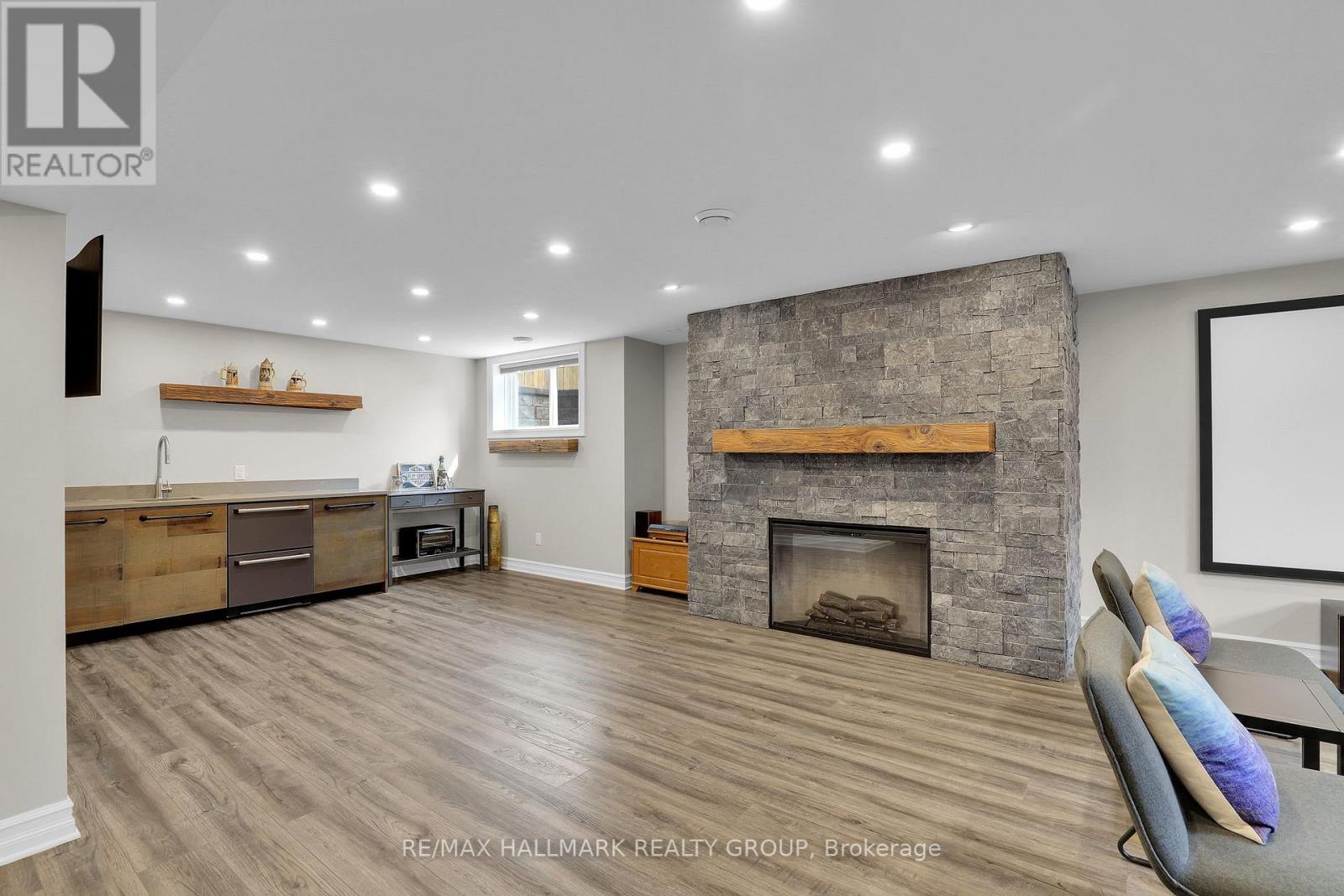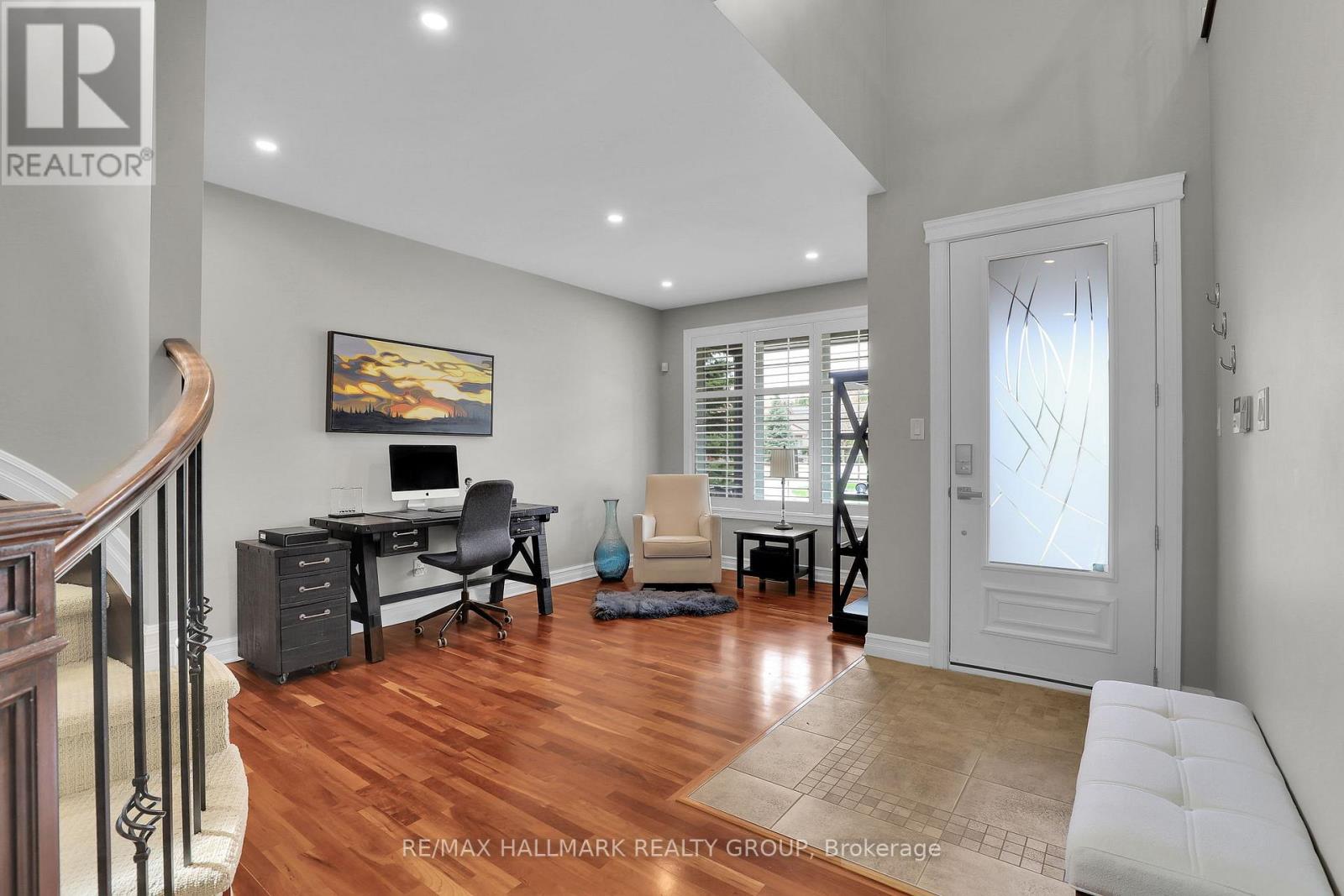 Moffat Farm offers the best of all worlds-parks, riverfront access, scenic walking paths, and effortless connectivity across Ottawa. Set on an oversized lot along a quiet, family-friendly street, this former Cardel model home blends space, natural light, and timeless design with a true lifestyle focus. The versatile main floor is thoughtfully designed for modern living, featuring a formal living room ideal as a home office, a dining space with coffered ceilings (currently styled as a den), and a warm, open family room anchored by a gas fireplace. The spacious kitchen is both functional and inviting-offering ample prep space for everyday living or entertaining-paired with a bright breakfast area overlooking the backyard. California shutters throughout add a refined, cohesive finish. A striking custom circular staircase leads to the upper level, where an impressive front-facing bonus room adds flexibility, alongside four well-proportioned bedrooms. The primary suite is a private retreat, complete with a five-piece ensuite and walk-in closet, while a second full bath with double sinks and convenient second-floor laundry complete the level. The professionally finished lower level is a true extension of the home-flooded with natural light, elegant fireplace and designed for entertaining or extended living. A stylish wet bar featuring KitchenAid café fridge drawers anchors the space, ideal for hosting, movie nights, or relaxed evenings. The lower level also offers a dedicated bedroom area and a full three-piece bath with heated floors, creating a comfortable and functional space for guests. Thoughtful exterior upgrades further enhance everyday living and include fully fenced yard, interlock stone front and back has lawn irrigation system. A rare opportunity to enjoy space, comfort, and lifestyle in one of Ottawa's most desirable communities. (id:44758)
