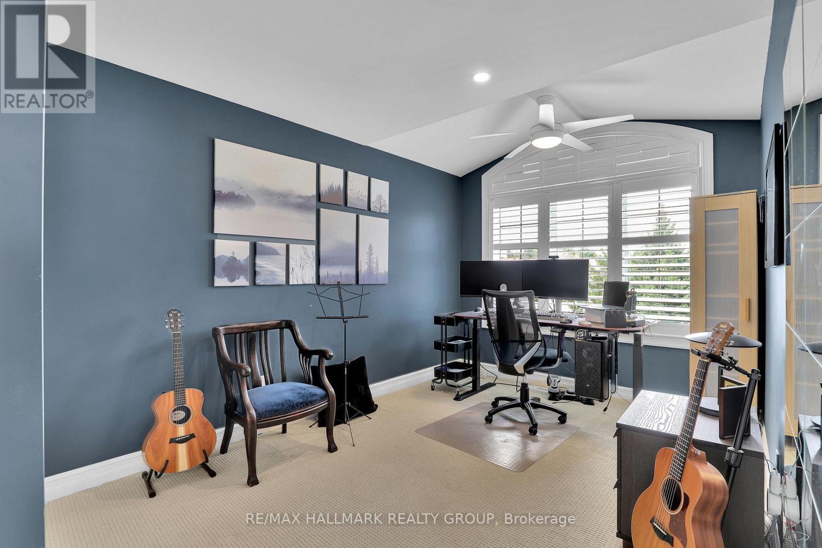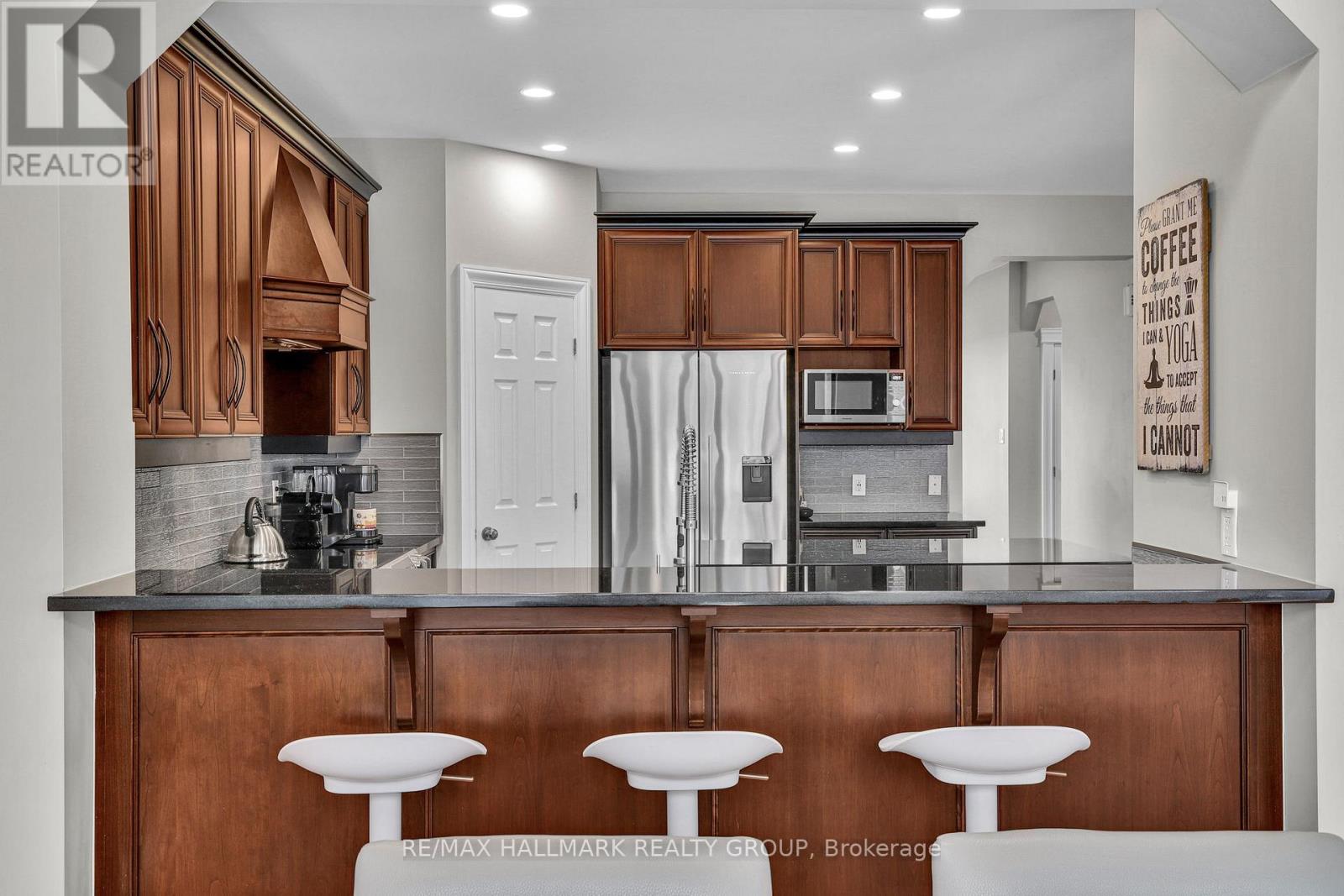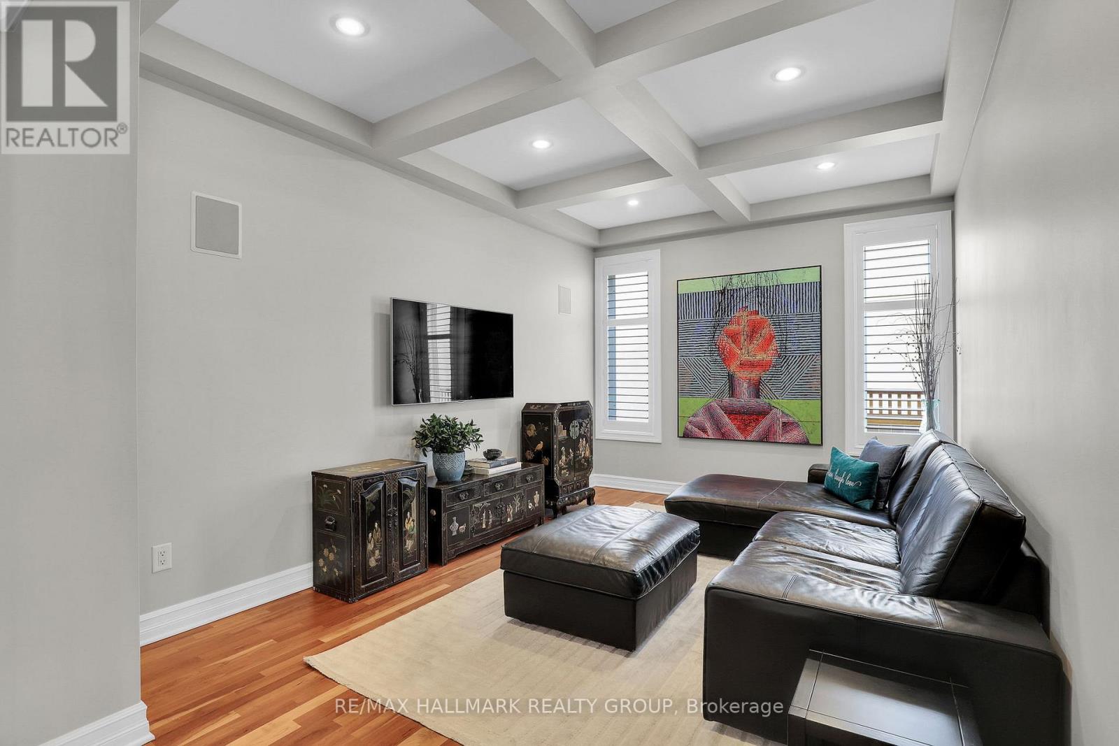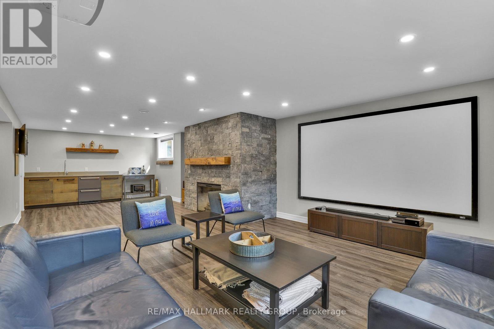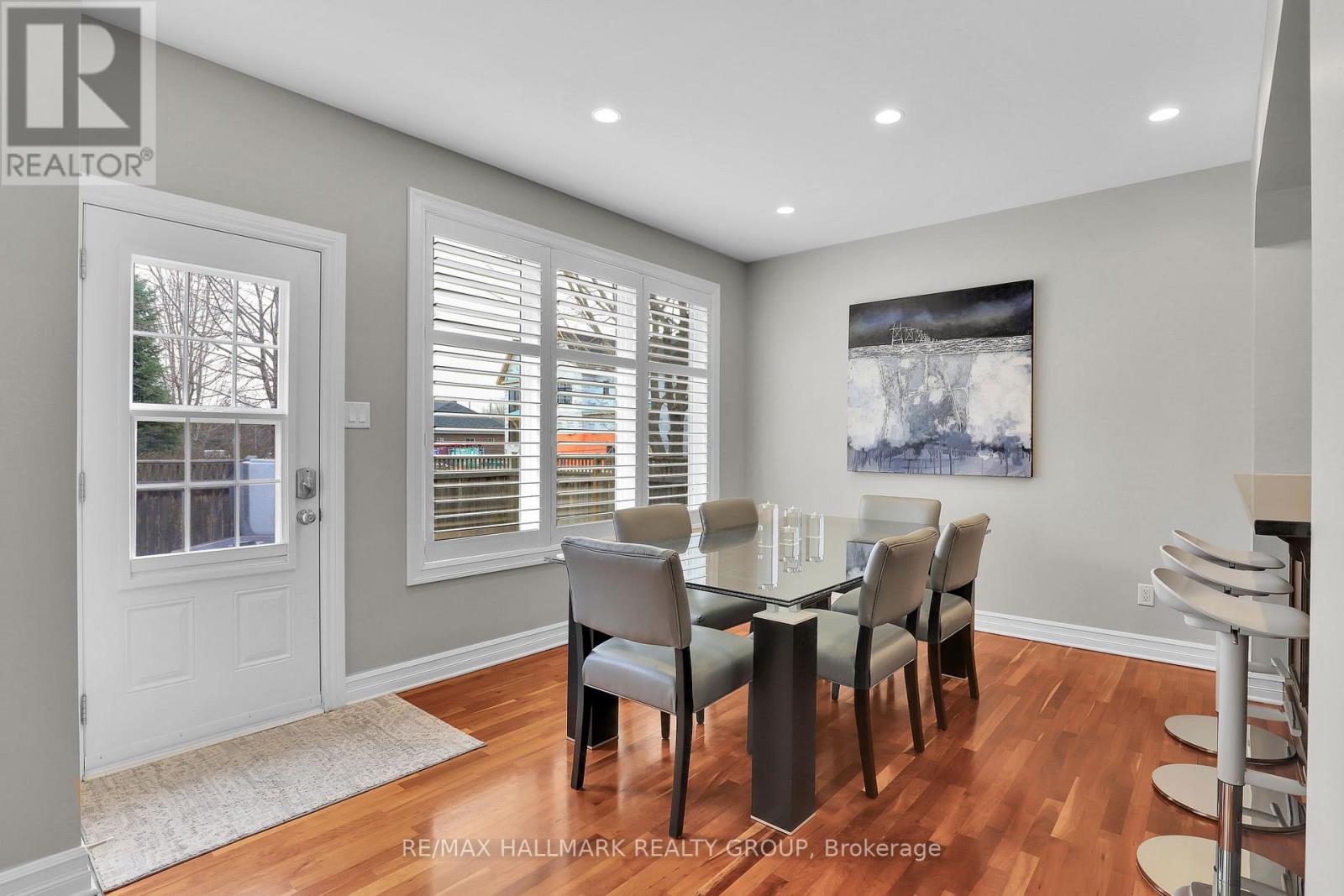 Moffat Farm offers the best of all worlds-parks, riverfront access, scenic walking paths, and effortless connectivity across Ottawa. Set on an oversized lot along a quiet, family-friendly street, this former Cardel model home blends space, natural light, and timeless design with a true lifestyle focus. The versatile main floor is thoughtfully designed for modern living, featuring a formal living room ideal as a home office, a dining space with coffered ceilings (currently styled as a den), and a warm, open family room anchored by a gas fireplace. The spacious kitchen is both functional and inviting-offering ample prep space for everyday living or entertaining-paired with a bright breakfast area overlooking the backyard. California shutters throughout add a refined, cohesive finish. A striking custom circular staircase leads to the upper level, where an impressive front-facing bonus room adds flexibility, alongside four well-proportioned bedrooms. The primary suite is a private retreat, complete with a five-piece ensuite and walk-in closet, while a second full bath with double sinks and convenient second-floor laundry complete the level. The professionally finished lower level is a true extension of the home-flooded with natural light, elegant fireplace and designed for entertaining or extended living. A stylish wet bar featuring KitchenAid café fridge drawers anchors the space, ideal for hosting, movie nights, or relaxed evenings. The lower level also offers a dedicated bedroom area and a full three-piece bath with heated floors, creating a comfortable and functional space for guests. Thoughtful exterior upgrades further enhance everyday living and include fully fenced yard, interlock stone front and back has lawn irrigation system. A rare opportunity to enjoy space, comfort, and lifestyle in one of Ottawa's most desirable communities. (id:44758)