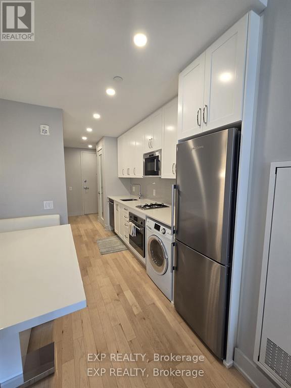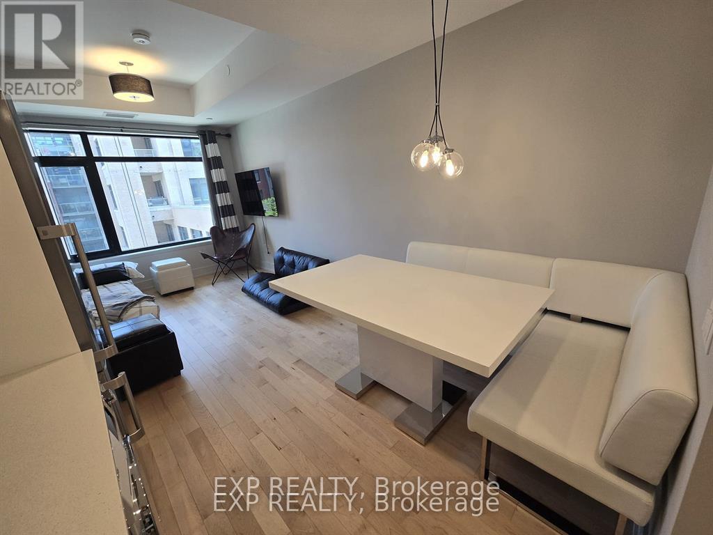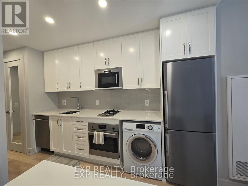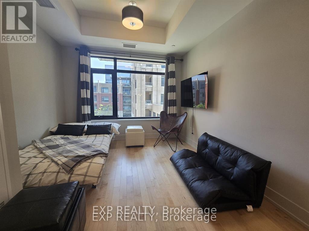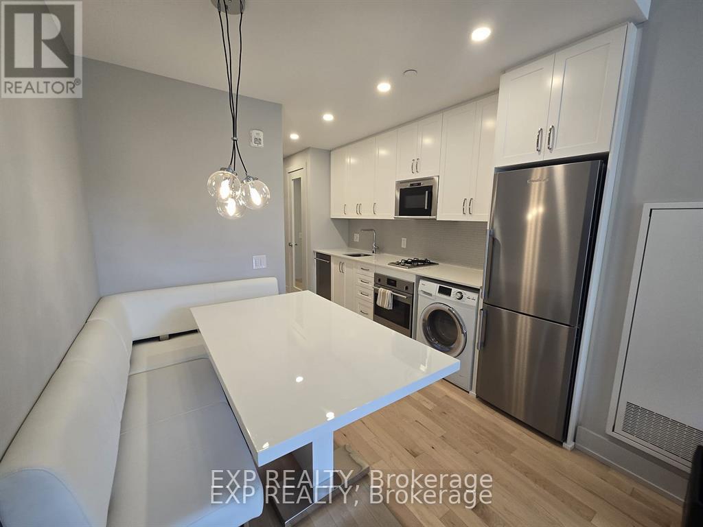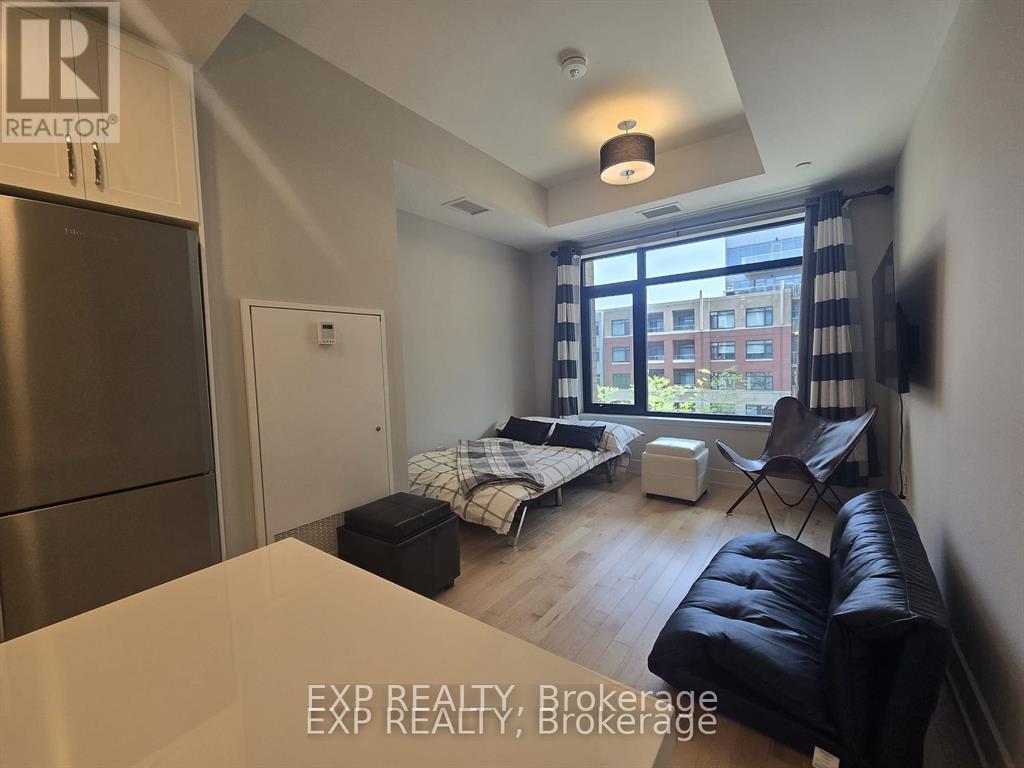 Modern and move-in ready, this fully furnished studio condo offers 1 bathroom, soaring ceilings, and gleaming hardwood floors throughout. The bright open-concept layout features a stylish kitchen complete with rich cabinetry, tiled backsplash, granite countertops, and four brand-new stainless steel appliances.Enjoy premium amenities including a rooftop terrace with BBQ facilities and stunning city views, plus a fully equipped fitness room. A storage locker is also included for added convenience.Ideally located in Ottawa East, you're within walking distance to shops, cafés, restaurants, parks, and the LRT for easy commuting. Just bring your personal belongings - everything else is ready for you, offering true hotel-style living. (id:44758)