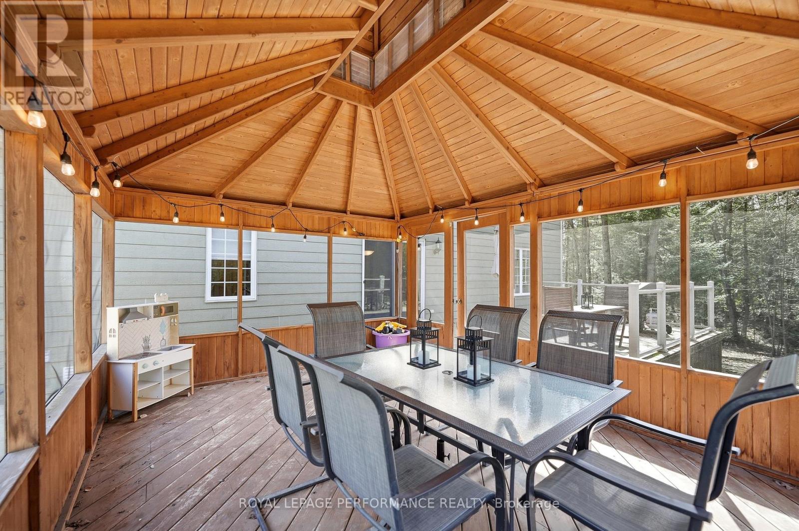 Beautiful custom-built home set on an exceptionally private 1.68-acre treed lot, offering peace, tranquility, and a truly serene natural setting. Surrounded by mature trees, this property delivers the perfect blend of privacy and outdoor living.The exterior features a charming covered wrap-around porch and a spacious cedar deck complete with a gazebo-ideal for relaxing or entertaining while enjoying the surrounding landscape.Inside, the open-concept layout showcases a stunning custom kitchen with a large island, stone countertops, walk-in pantry, and abundant storage. Stainless steel appliances, including a gas stove, provide both style and functionality, making this space perfect for everyday living and hosting.This home is loaded with upgrades, including 9-foot ceilings and a striking propane fireplace that creates a warm, inviting atmosphere. Additional features include durable CanExel siding, a premium water treatment system with potable water, tri-zone electric forced air heating, leaf gutter protection, generator readiness, and a cell signal booster for modern convenience. Bell Fibe high-speed internet is available.The fully finished basement offers additional living space and serves as an ideal children's playroom or family recreation area.Located on a quiet dead-end road, this property offers excellent curb appeal and direct access to nearby ATV and snowmobile trails-perfect for outdoor enthusiasts. All bedrooms feature walk-in closets, and hardwood flooring runs throughout, adding timeless elegance and continuity.Recent updates include a new furnace (2022), a beautifully renovated ensuite (2024), and fresh paint throughout the main floor, staircase, and second-floor hallway (2026). (id:44758)
