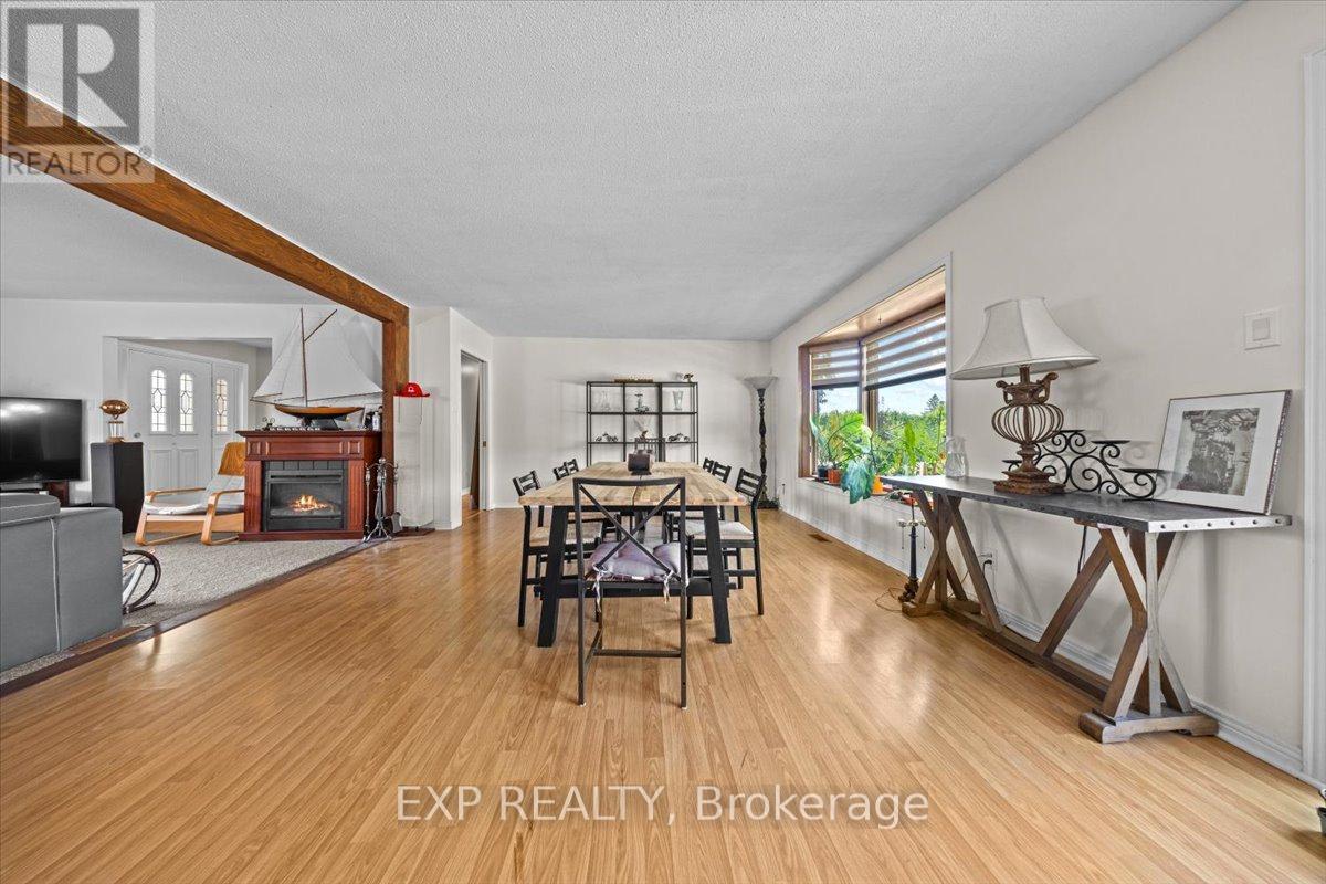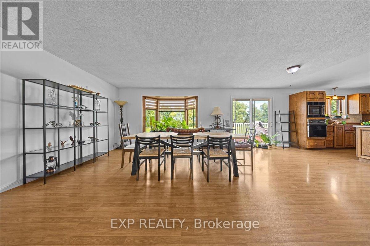 A rare offering just minutes from Kanata and Stittsville, this all-brick bungalow is nestled on a beautifully landscaped 3.95-acre lot surrounded by scenic ravine views and open farmland. Zoned agricultural, this well-maintained property offers exceptional potential for a home-based business, multi-generational living, or future investment. Inside, the spacious layout features a large eat-in kitchen with direct access to a sunny deck overlooking the expansive backyard perfect for entertaining or simply enjoying the peaceful surroundings. A formal dining room, two large living areas, and a dedicated office/den provide flexibility and function for families or remote work. Three bedrooms, three bathrooms, main floor laundry, and a triple-car garage complete the upper level. The fully finished lower level expands your options with a massive recreation room, billiards area, bar, additional bedroom with walk-in closet, and the potential to convert the basement into a separate suite or duplex. Outside, the home is set back from the road with a long, private driveway and immaculate grounds. A 3,200 sq ft detached garage (built 7 years ago) offers potential for storage rental income. Incredible space for storage, a workshop, RV parking, or agricultural uses including kennel operations. Can hold 14 to 20 cars depending on the size. Incredible space for storage, a workshop, RV parking, or agricultural uses including kennel operations. The fully fenced yard features fruit trees (apple, cherry, plum, and pear), trimmed hedges, and a cleared tree line around the ravine. Wildlife lovers will enjoy frequent deer and turkey sightings, and sports enthusiasts will appreciate the space for a pool, tennis court, or basketball court. Additional highlights include a new furnace (2024), interlocked walkway, and excellent road exposure on Carp Road. A unique property with unmatched potential, blending country charm with business-ready amenities. (id:44758)