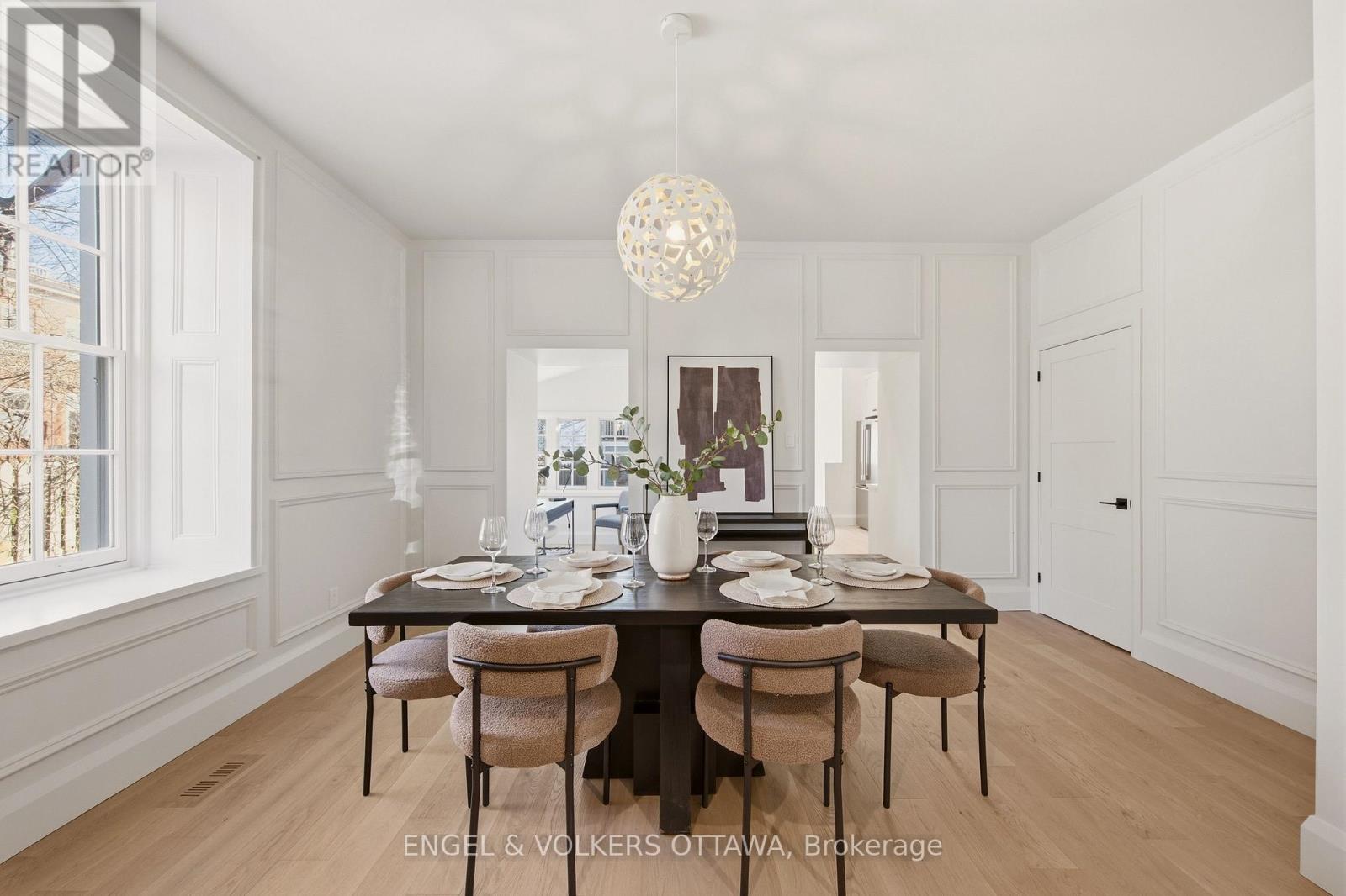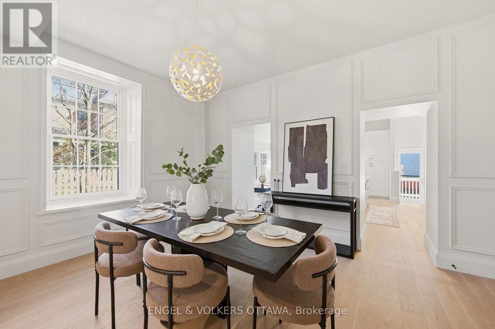 Welcome to 35 Mackay Street, a beautifully restored semi-detached heritage home in the heart of New Edinburgh, offering 4 bedrooms and 3.5 bathrooms. Inside, custom millwork, rich white oak flooring, and expansive ceilings flow throughout. The grand living room is filled with natural light and centered around a restored original fireplace - ideal for both relaxed mornings and evening unwinding. It flows effortlessly into the spacious dining room, perfect for entertaining. Just off the dining area is a sun-drenched bonus space, ideal for a home office or breakfast nook. The kitchen features soaring cathedral ceilings, excellent storage, and high-end finishes including custom cabinetry, a plastered hood fan, beveled subway tile, toasted bronze hardware, and beautiful Hanstone countertops. A practical mudroom provides easy access to the private outdoor space, ideal for morning coffee or outdoor dining. A powder room with intricate hexagon mosaic tile and a black walnut vanity completes the main level. The second level offers a bright and spacious primary retreat with double closets and a stunning ensuite featuring a double vanity, elegant tilework, and an oversized glass walk-in shower. A second bedroom and a well-appointed main bath complete this level. The top floor includes two additional bedrooms, versatile options for a playroom or home office, and another full bath. Enjoy the convenience of dedicated parking. Ideally located across from Rideau Hall, steps to Beechwood shops and dining, and minutes to downtown, parks, and Ottawa River pathways. (id:44758)