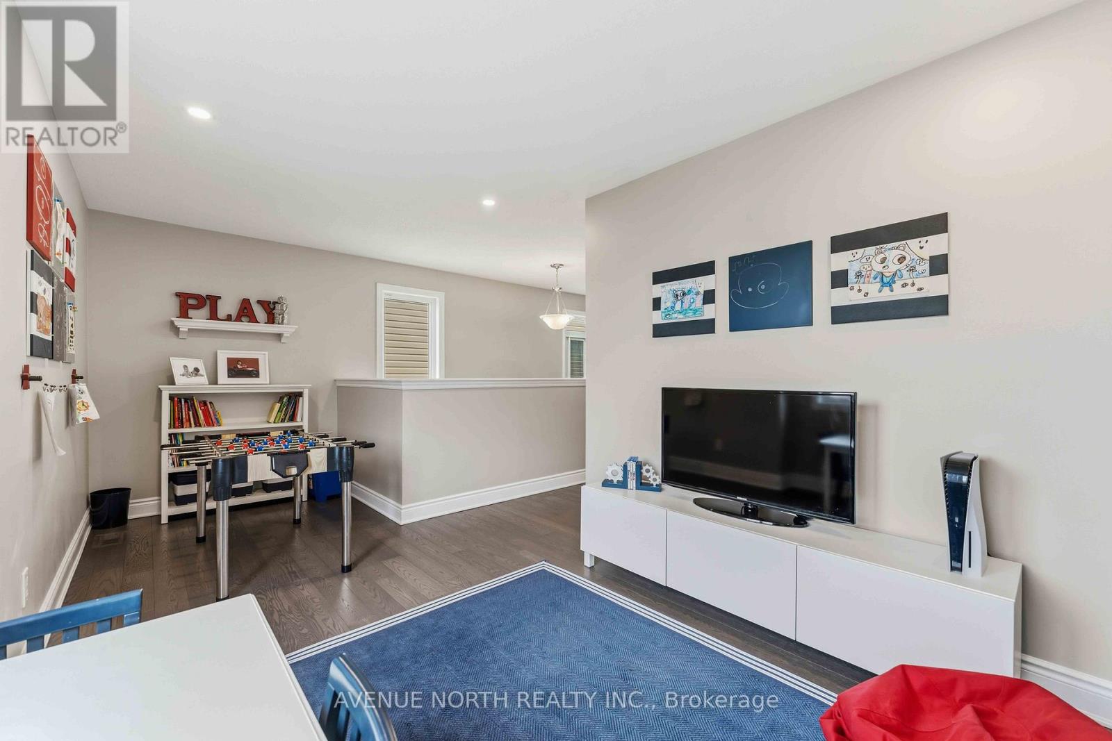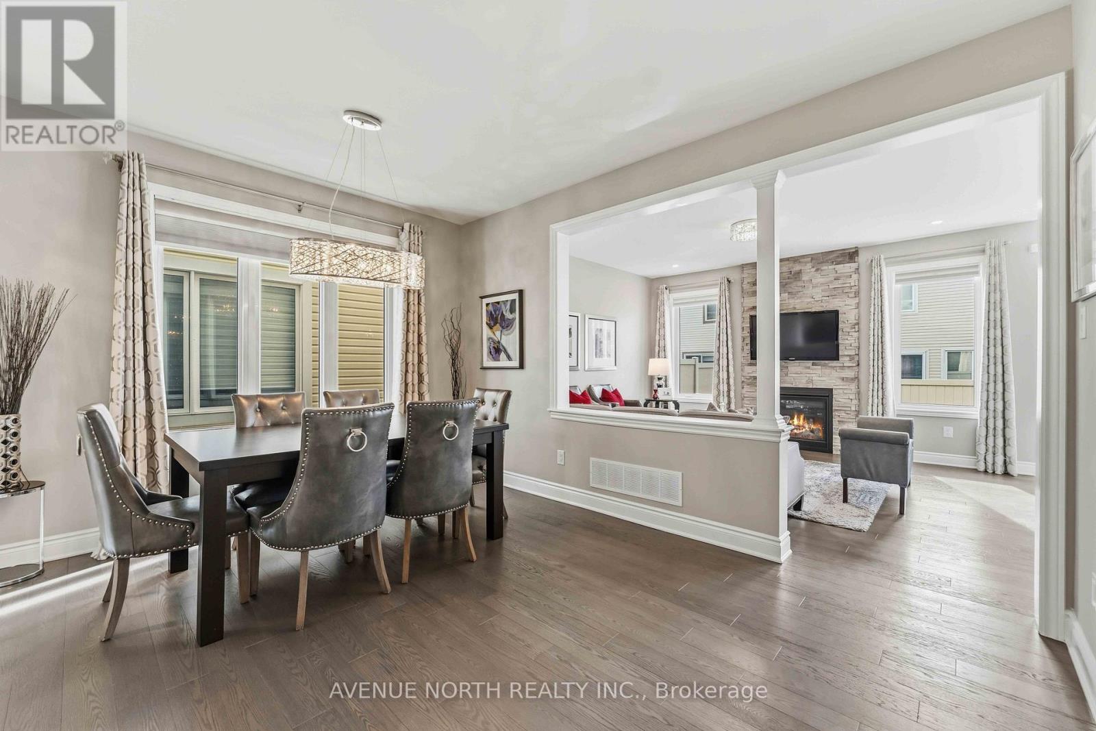 Welcome to this beautifully upgraded and well-maintained family home offering a perfect blend of style, functionality, and modern comfort. With great curb appeal, a double-car garage, and a thoughtfully designed layout, this home is move-in ready. Step inside to a bright and inviting foyer featuring a striking curved staircase and 9-foot ceilings on the main level. The open-concept layout showcases hardwood flooring and welldefined living spaces, including a formal dining area and a comfortable living room highlighted by a custom stone feature wall and cozy gas fireplace. Large windows throughout bring in an abundance of natural light. The kitchen is both stylish and functional, featuring white cabinetry, quartz countertops, stainless steel appliances, a modern backsplash, and a centre island with seating-ideal for everyday living and entertaining. The adjacent breakfast area overlooks the backyard. Upstairs, you'll find four bedrooms plus a versatile playroom, offering flexible space for family living, a media area, or a kids' zone. The primary bedroom provides a comfortable retreat, while the bathrooms are thoughtfully designed with quartz countertops and double vanities, offering both style and convenience. The main floor also includes a private office, perfect for working from home or quiet study. The unfinished basement offers excellent potential to customize additional living space to suit your needs. Located in a desirable, family-friendly neighborhood close to schools, parks, and amenities, this home offers a great balance of space, upgrades, and everyday practicality. ** This is a linked property.** (id:44758)