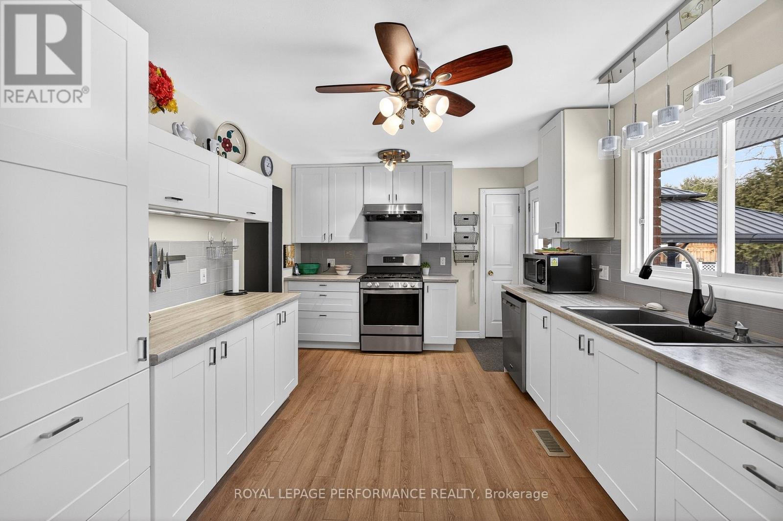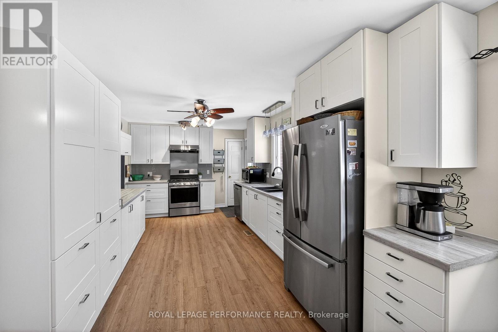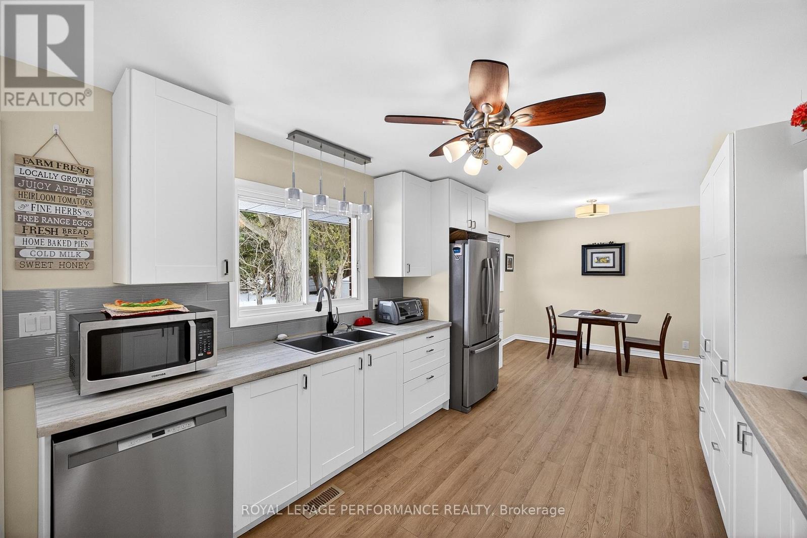 Situated in the village of Carp, boasting a spacious living rm w/cove ceilings & stunning moulding & trim, large gourmet kitchen w/energy saving dual fuel stove & ample storage space & work counters & integrated dining area. Hallway leads to full bathroom, 2 large bdrms and 1 medium sized bdrm, perfect for a child or use as an office. The full basement has a recently partially remodeled area awaiting your finishing touches, a lovely new 2-Pc powder rm, workshop & storage area, laundry area, gas furnace, new owned gas water heater & new water softener. Outside you will find maintenance free decking at the front entrance and 20' x 16' deck in the back. The deck includes a permanently installed 12' x 12' hard top gazebo w/premium grade mosquito netting for your summer outdoor relaxation & entertainment. The garden has 2 large perennial flower beds w/a mix of native and ornamental flowers that bring a plethora of birds & pollinators. There is also a vegetable garden w/12 raised beds of various sizes. There are 2 storage sheds & a 3 bin compost area. The property has a 4 car recently paved driveway, a two car garage with a new cement floor, new insulated garage door, new Chamberlain direct drive garage door opener w/battery back up to operate in a power outage. In the front yard there is a gorgeous crab apple tree that is a showstopper when in bloom in the spring, small shade flower bed & a full sun drenched bed that runs along the front of the house. The village has an outstanding medical clinic, that houses a lab, a physio facility and dental facility. There is another dentist in town as well as an excellent vet clinic for your pets. The town has several eateries, coffee shops, 2 bakeries, a nail salon, hair salons, a small Rona, a yard equipment store, two barbershops, an LCBO & other small businesses. It is a 10 minute drive to Kanata's high tech area as well as shopping & Stittsville for more amenities. Home to the Diefenbunker, elementary school, museum & library. (id:44758)