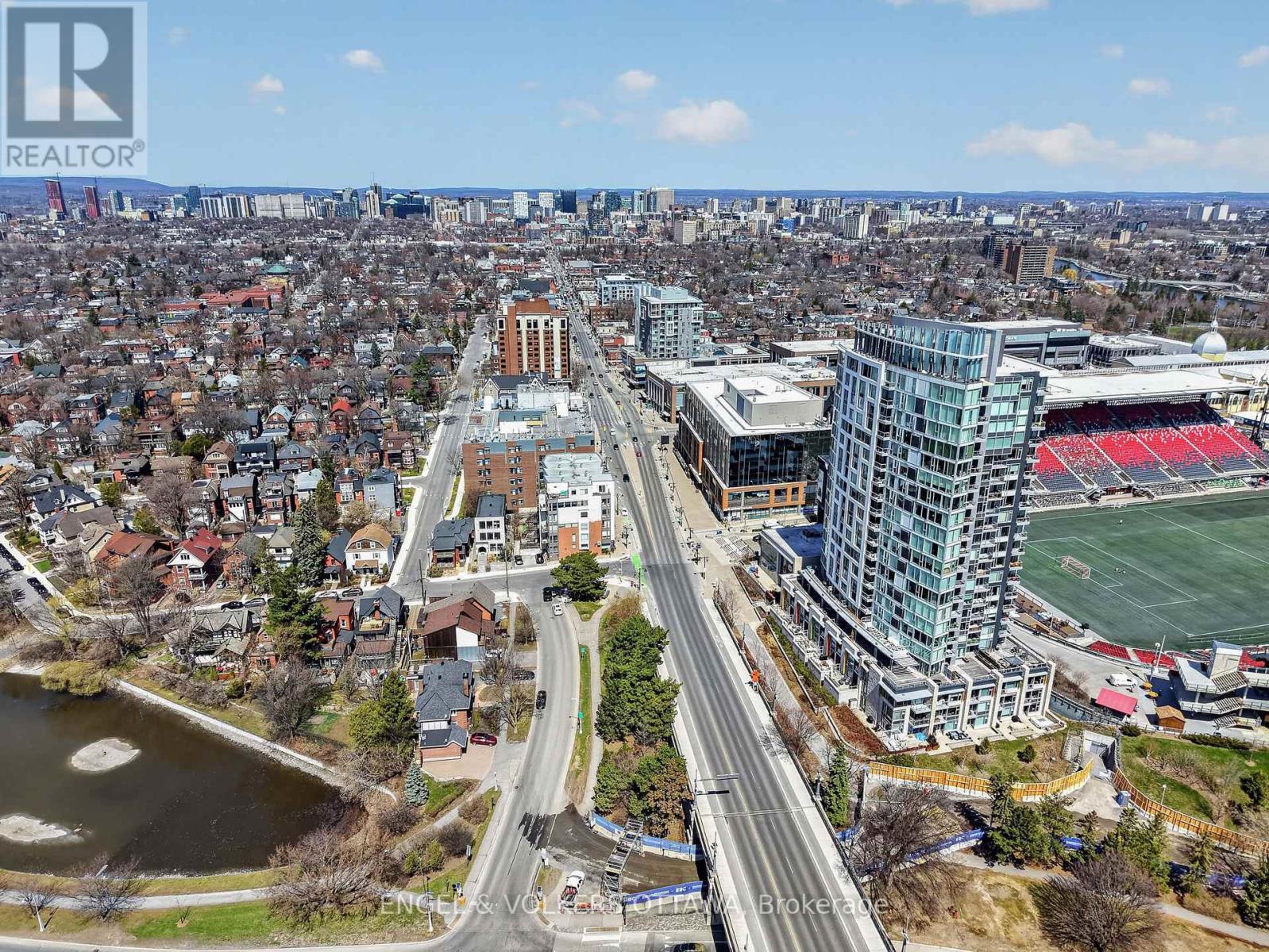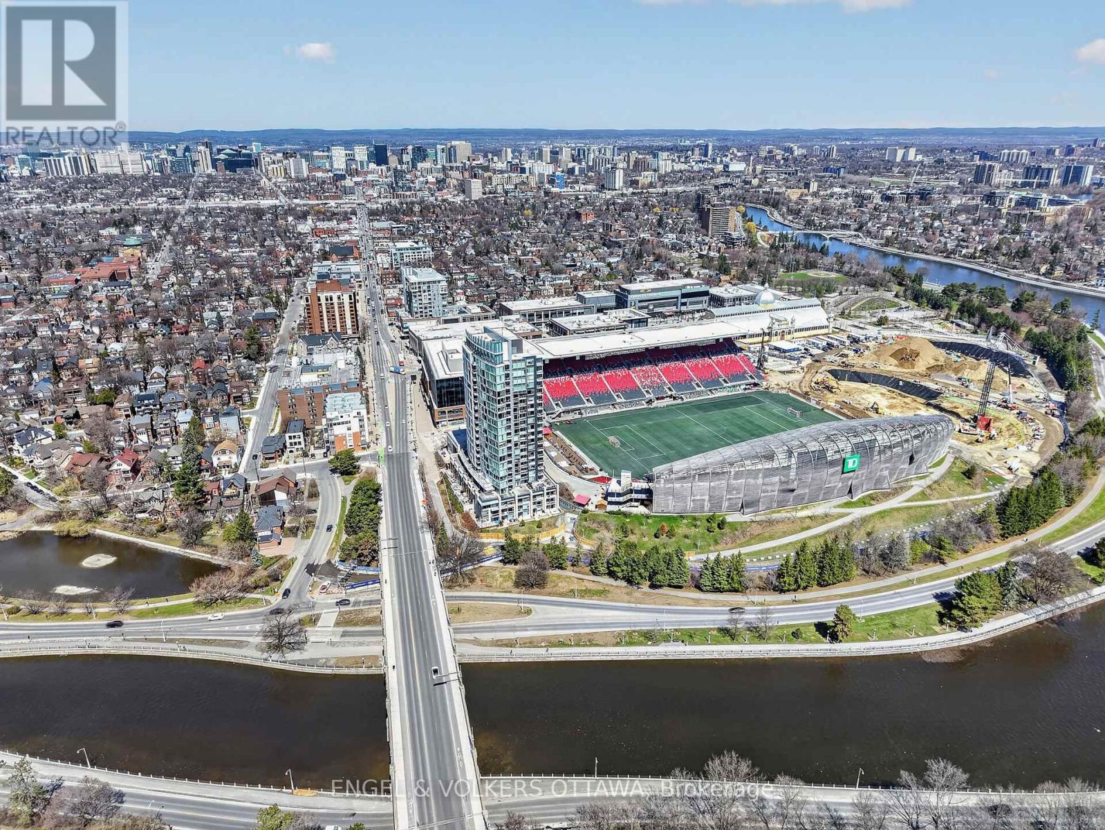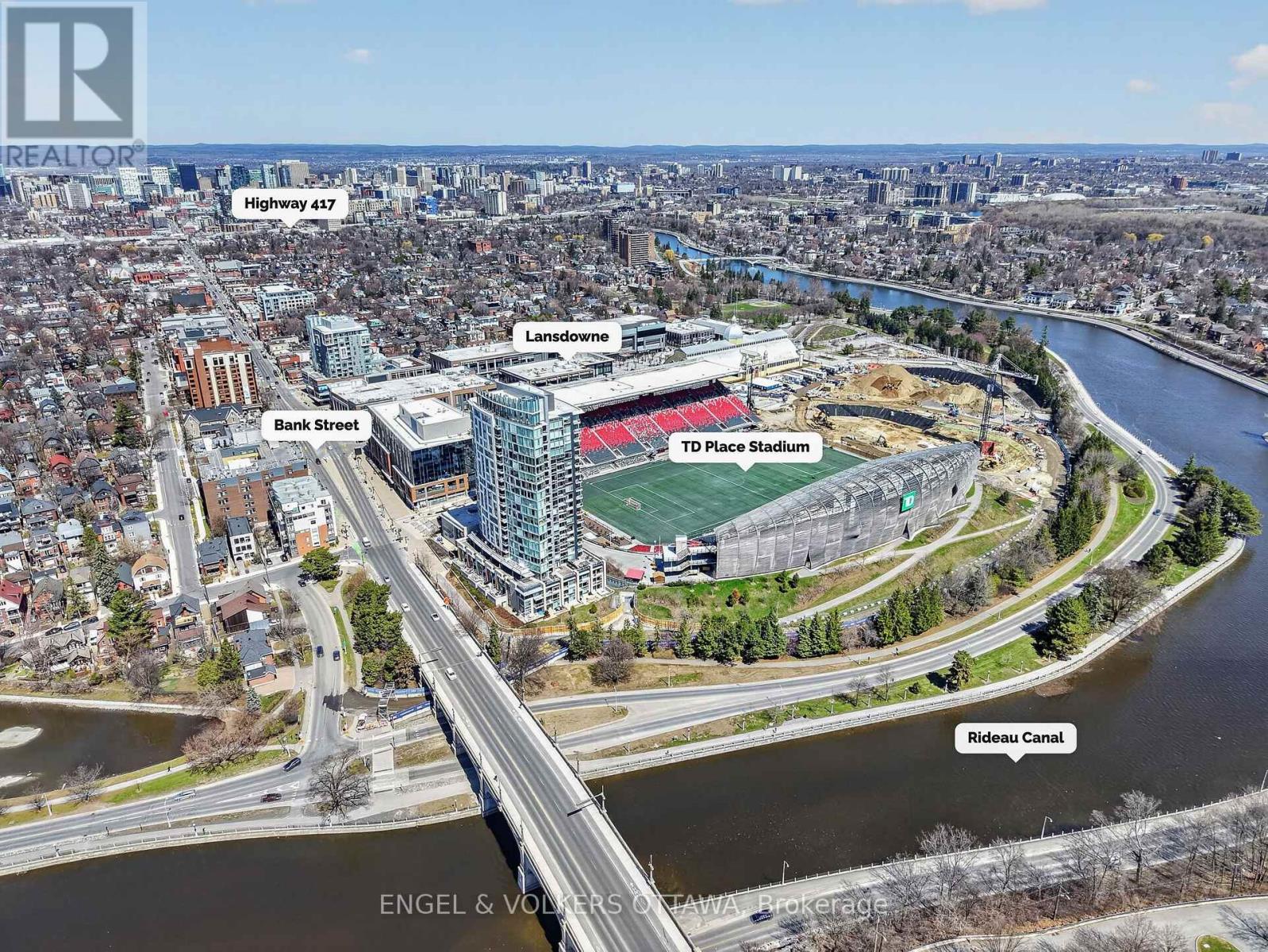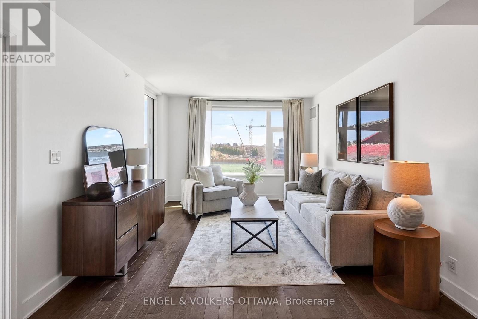 1035 Bank Street #406 is a well-designed 2-bedroom, 2-bath condo set in one of the Glebe's most dynamic locations, overlooking the field at TD Place. With a split-bedroom layout that positions each room on opposite sides, the floor plan offers both privacy and flow, ideal for everyday living or hosting guests. Floor-to-ceiling windows flood the space with natural light, while the east-facing exposure delivers sunrise views over the stadium. The kitchen is finished with quartz countertops and stainless steel appliances, opening seamlessly into the living area, perfect for entertaining before a game or unwinding after. What truly sets this home apart is the lifestyle. Step onto your private balcony and take in live action from the field below, whether it's the Ottawa Redblacks or Atlético Ottawa. Friends over for a game? You're already in the best seat in the city. Prefer to be in the crowd? The stadium is just steps away. Beyond the games, you're surrounded by some of Ottawa's best restaurants, cafés, and shops, with the canal pathways nearby for walking, running, or cycling. It's a neighbourhood that balances energy and ease, attracting a well-established, lifestyle-driven community. Complete with a 4-piece ensuite in the primary bedroom, a second full bath, and access to premium building amenities including a concierge, gym, and resident lounges with panoramic views of the field and canal, this is effortless urban living with a front-row seat. (id:44758)