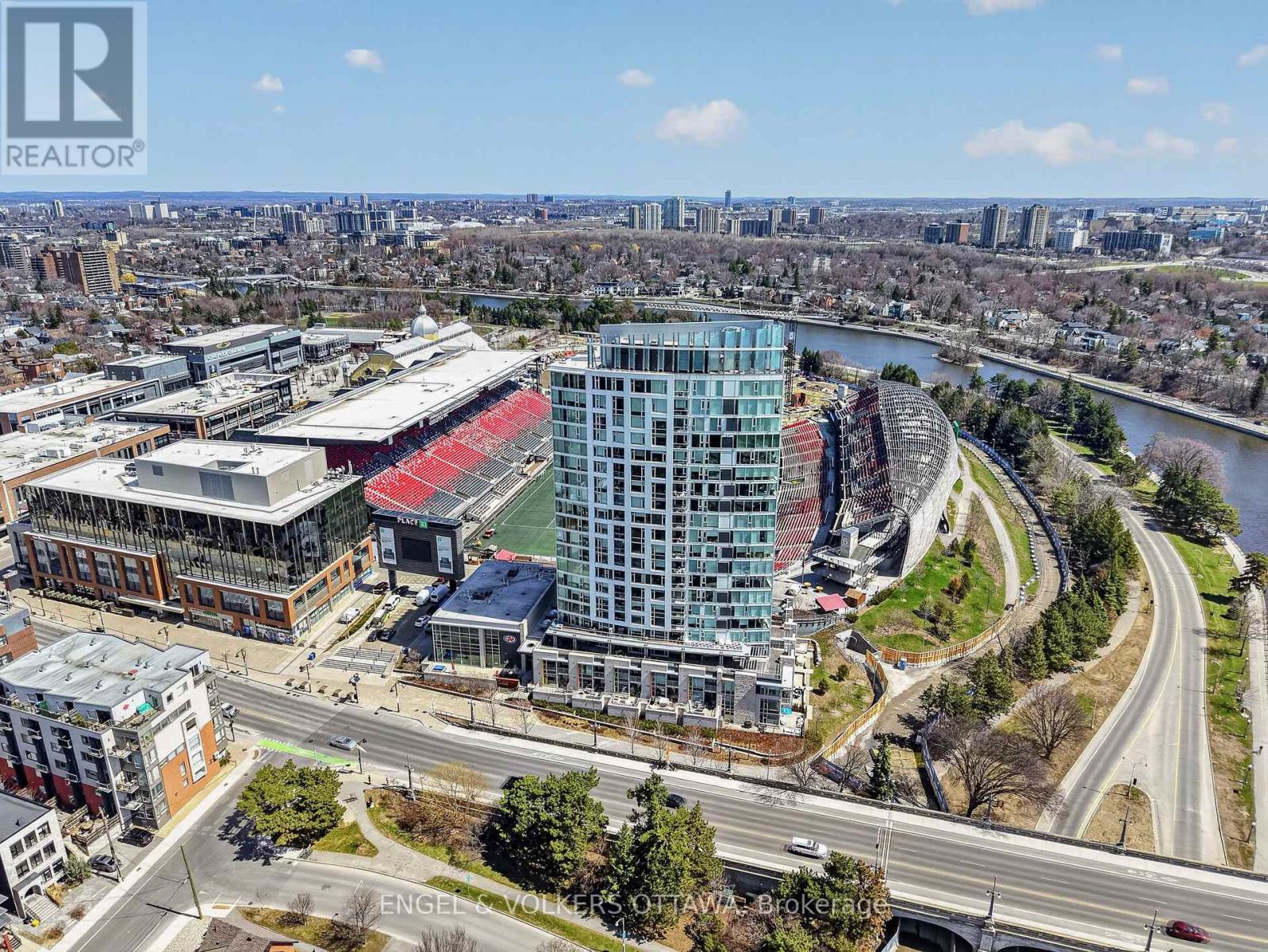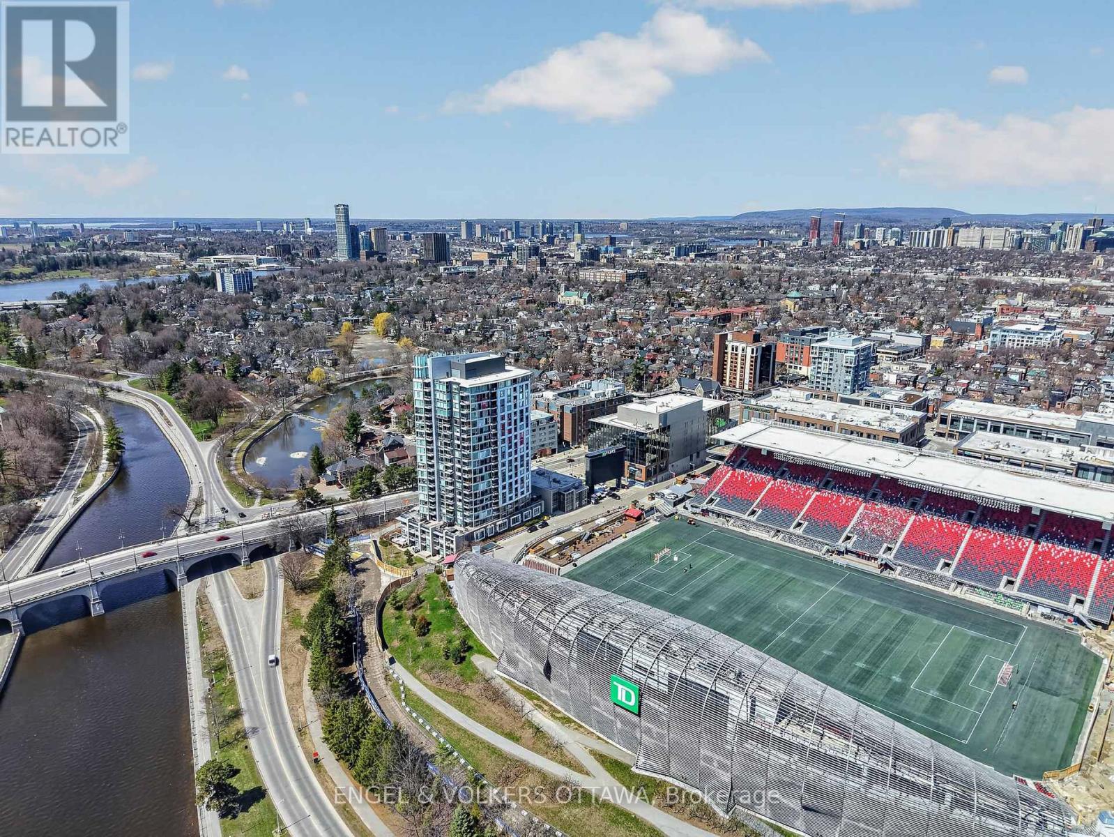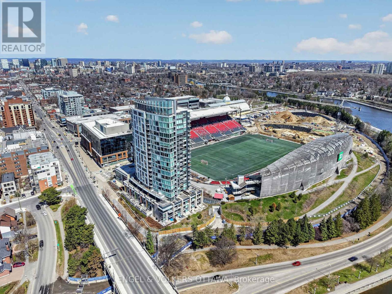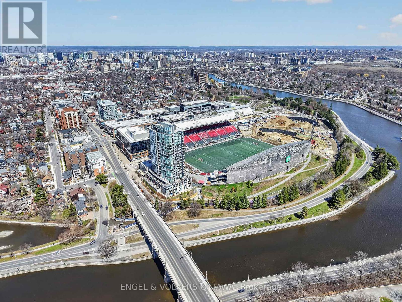 1035 Bank Street #406 is a well-designed 2-bedroom, 2-bath condo set in one of the Glebe's most dynamic locations, overlooking the field at TD Place. With a split-bedroom layout that positions each room on opposite sides, the floor plan offers both privacy and flow, ideal for everyday living or hosting guests. Floor-to-ceiling windows flood the space with natural light, while the east-facing exposure delivers sunrise views over the stadium. The kitchen is finished with quartz countertops and stainless steel appliances, opening seamlessly into the living area, perfect for entertaining before a game or unwinding after. What truly sets this home apart is the lifestyle. Step onto your private balcony and take in live action from the field below, whether it's the Ottawa Redblacks or Atlético Ottawa. Friends over for a game? You're already in the best seat in the city. Prefer to be in the crowd? The stadium is just steps away. Beyond the games, you're surrounded by some of Ottawa's best restaurants, cafés, and shops, with the canal pathways nearby for walking, running, or cycling. It's a neighbourhood that balances energy and ease, attracting a well-established, lifestyle-driven community. Complete with a 4-piece ensuite in the primary bedroom, a second full bath, and access to premium building amenities including a concierge, gym, and resident lounges with panoramic views of the field and canal, this is effortless urban living with a front-row seat. (id:44758)